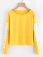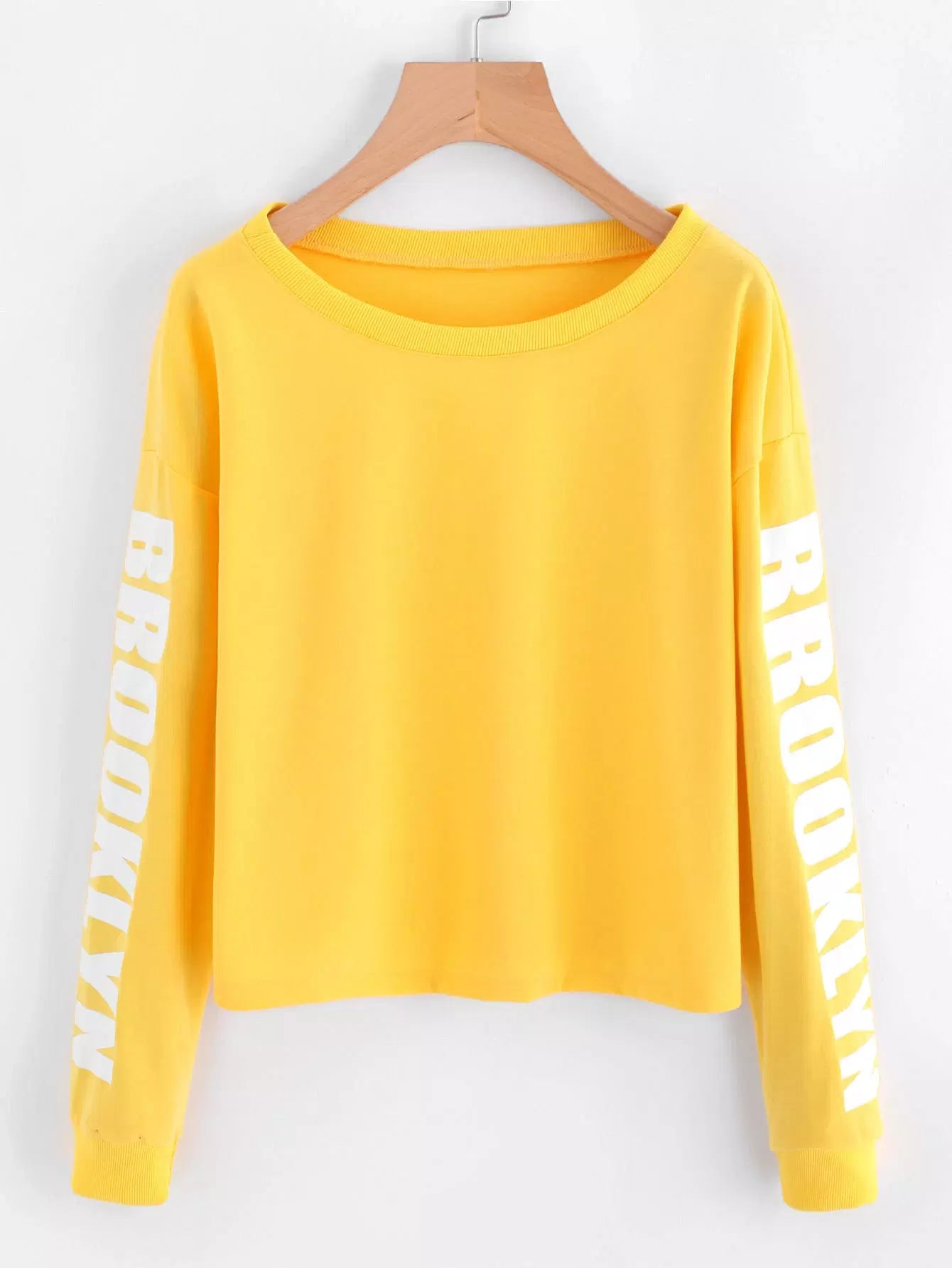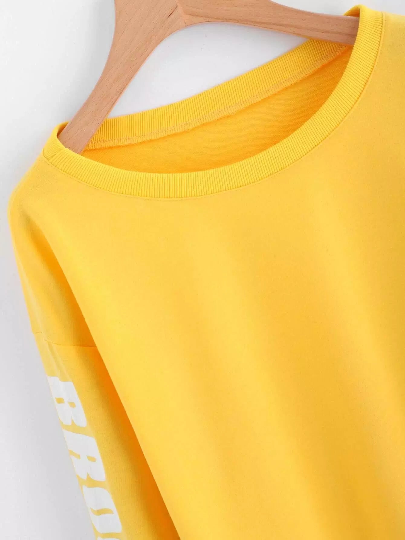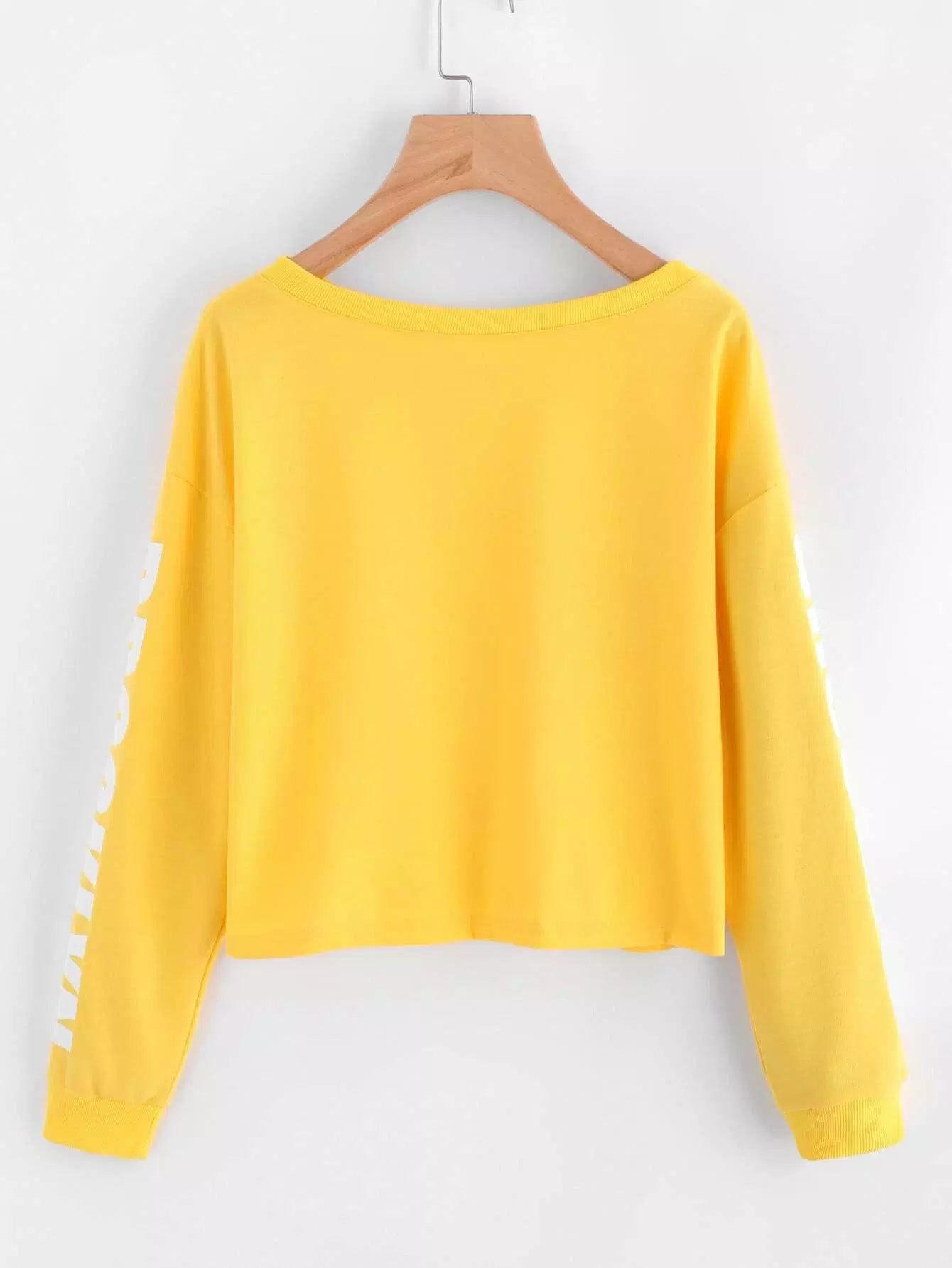 سويت شيرت قصير منسدل الكتفين مطبوع عليه حروف منسدلة