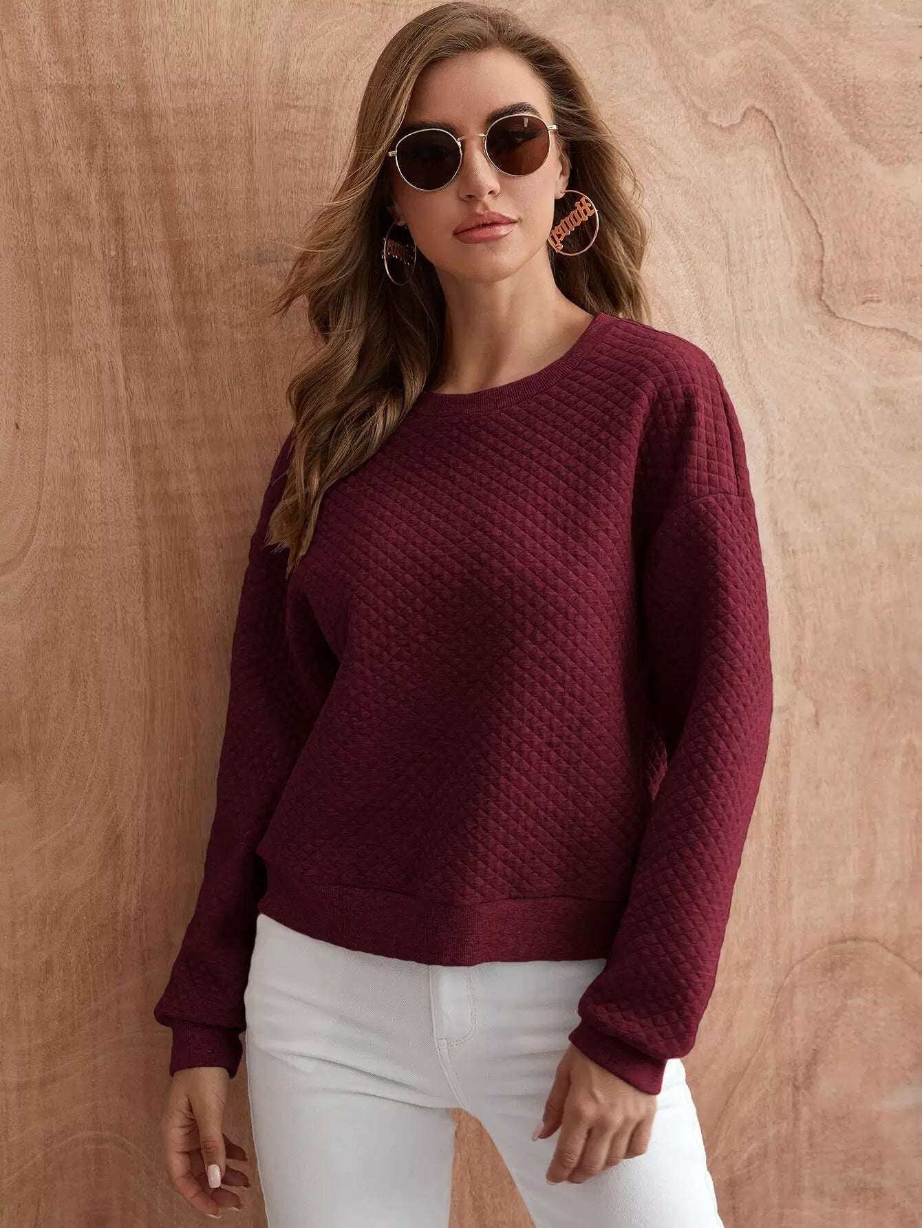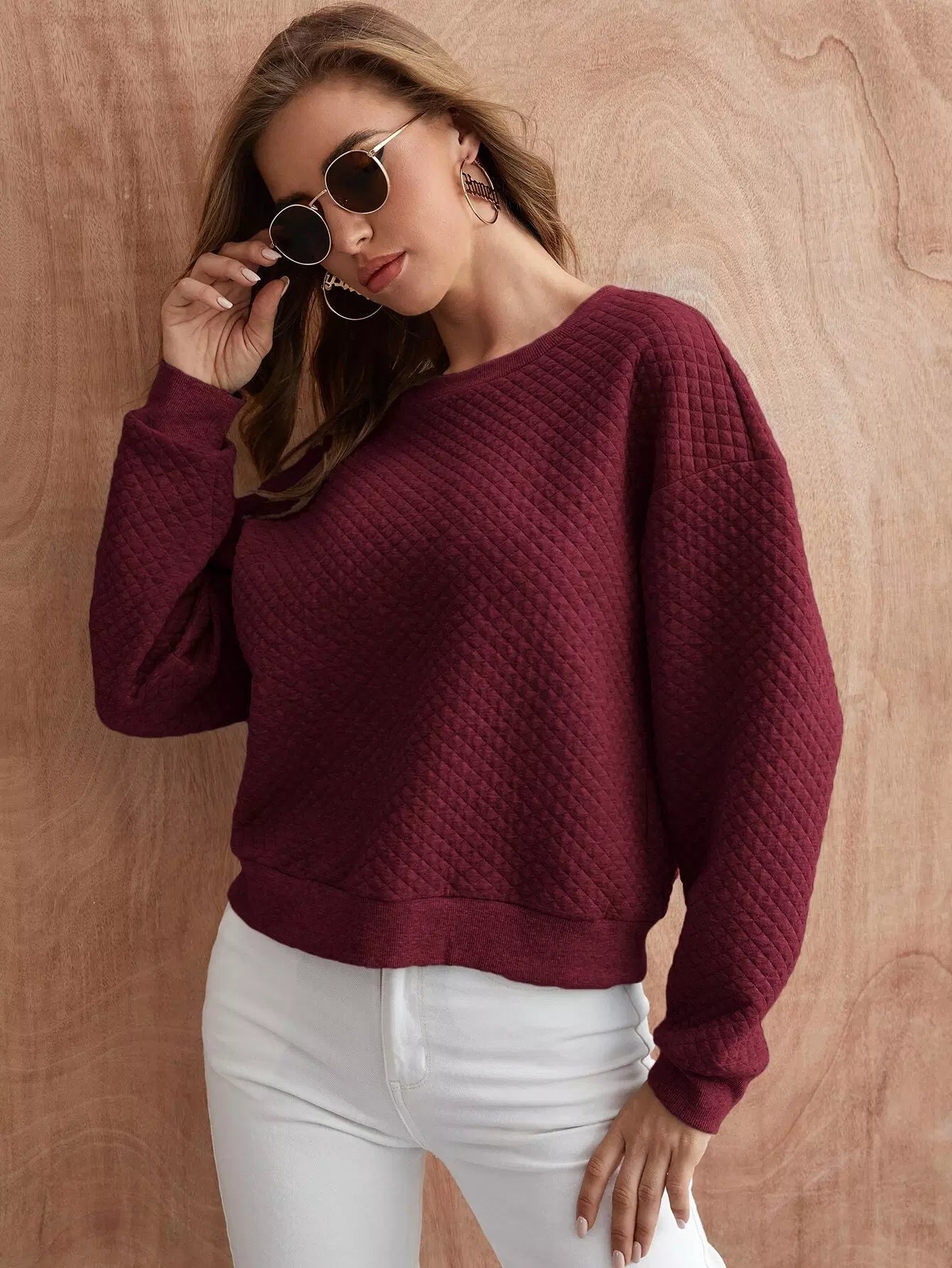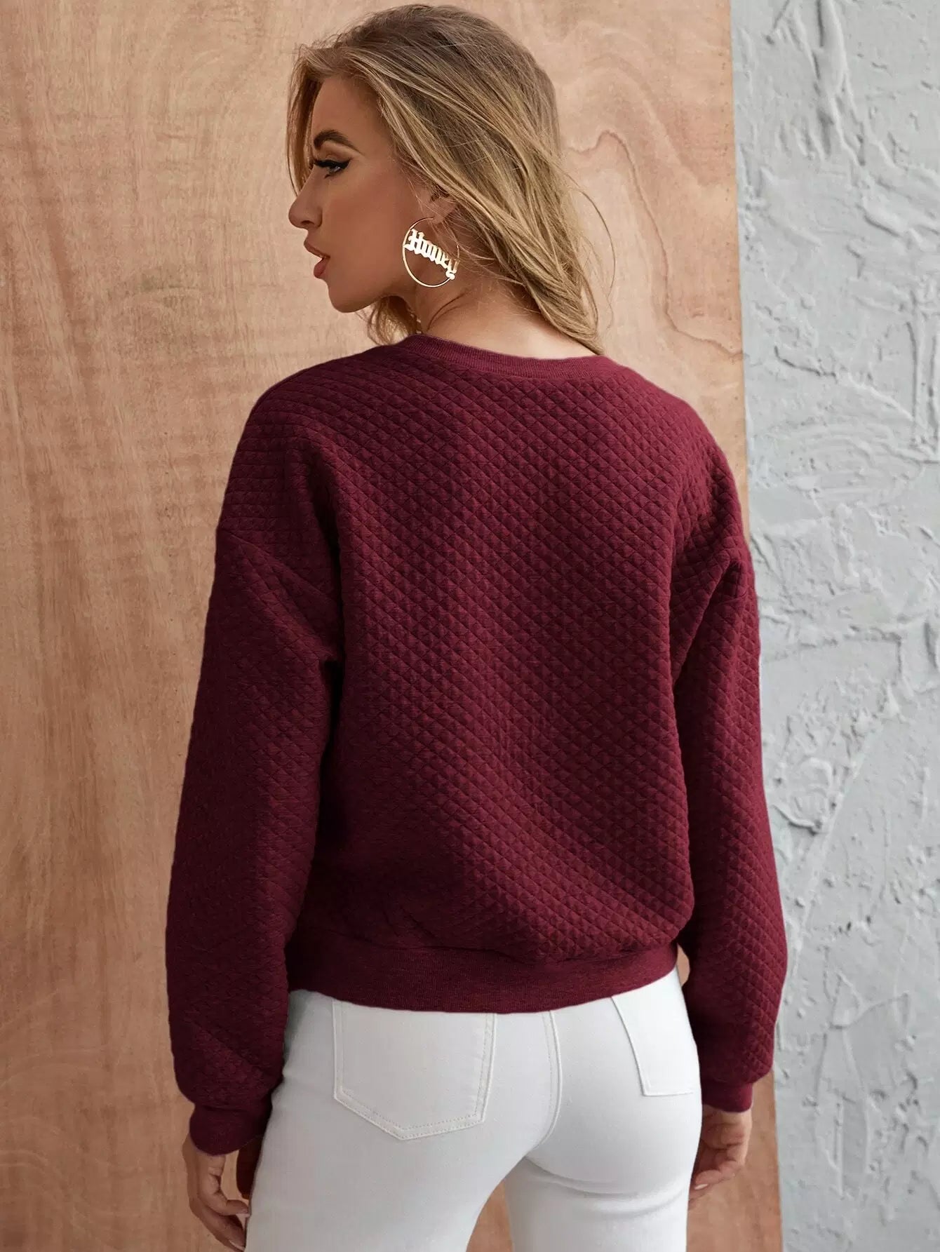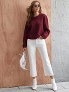 كنزة صوفية سادة مبطنة ذات أكتاف منسدلة