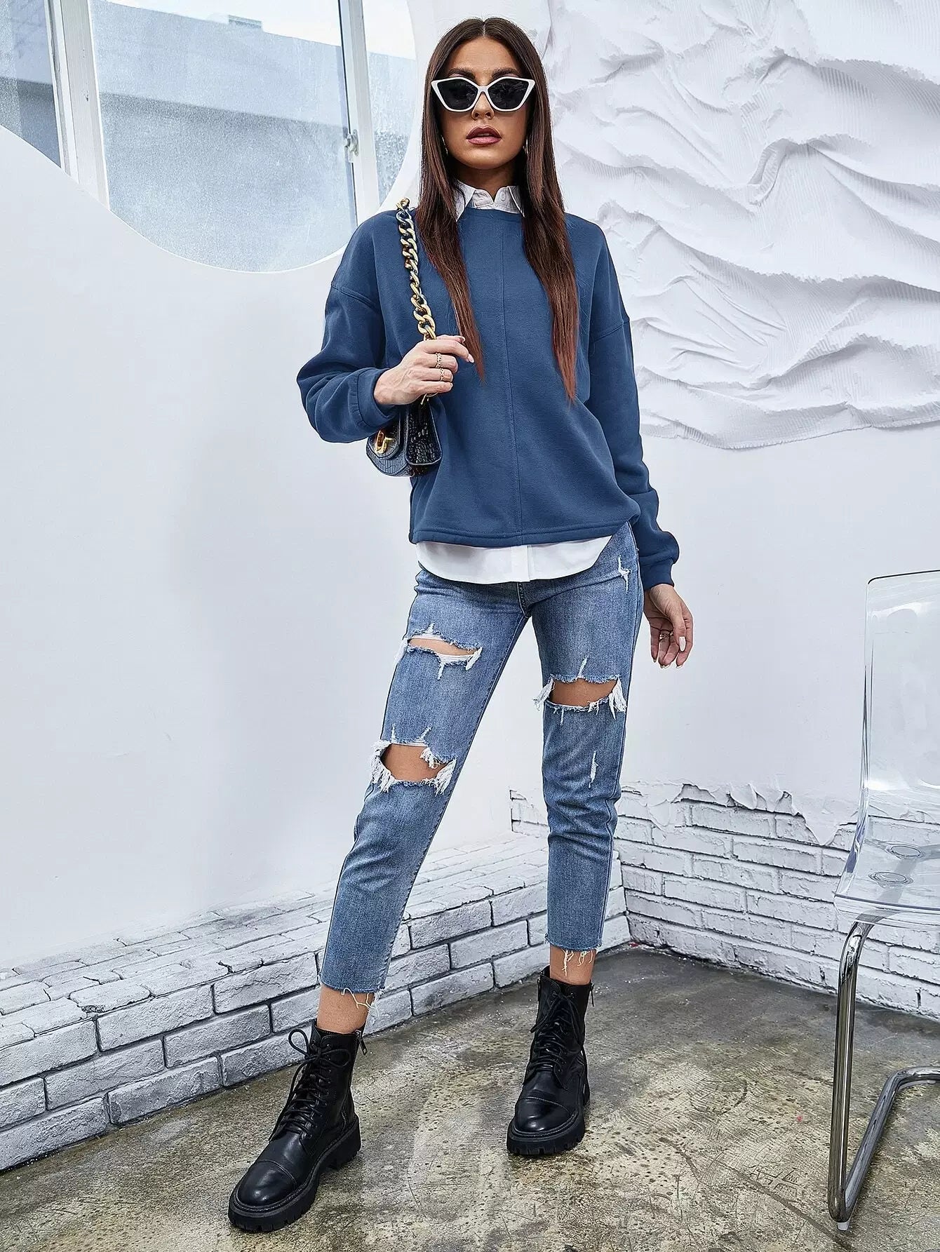 سويت شيرت منسدل الكتفين بدون بلوزة