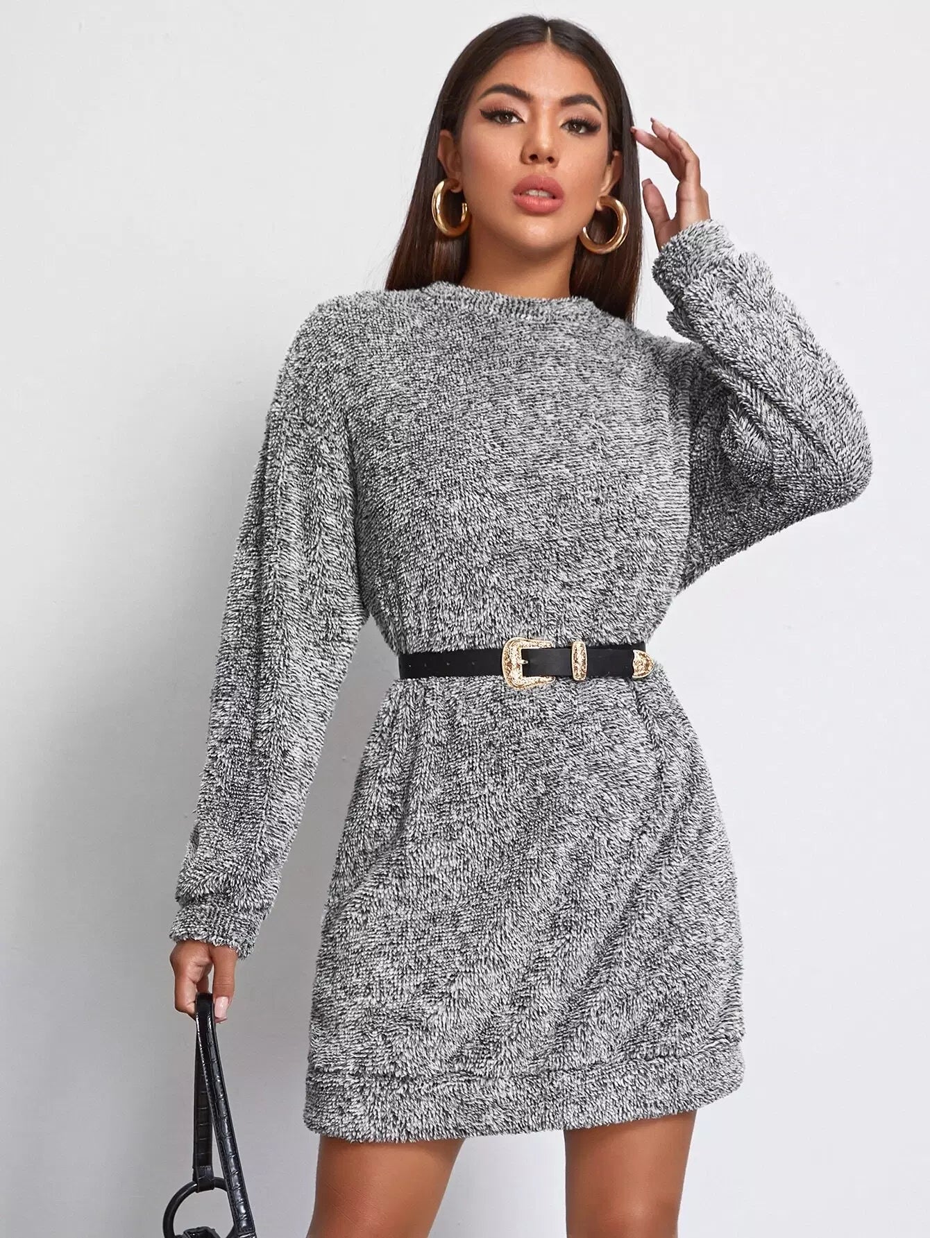 فستان سويت شيرت منسدل الكتفين بدون حزام