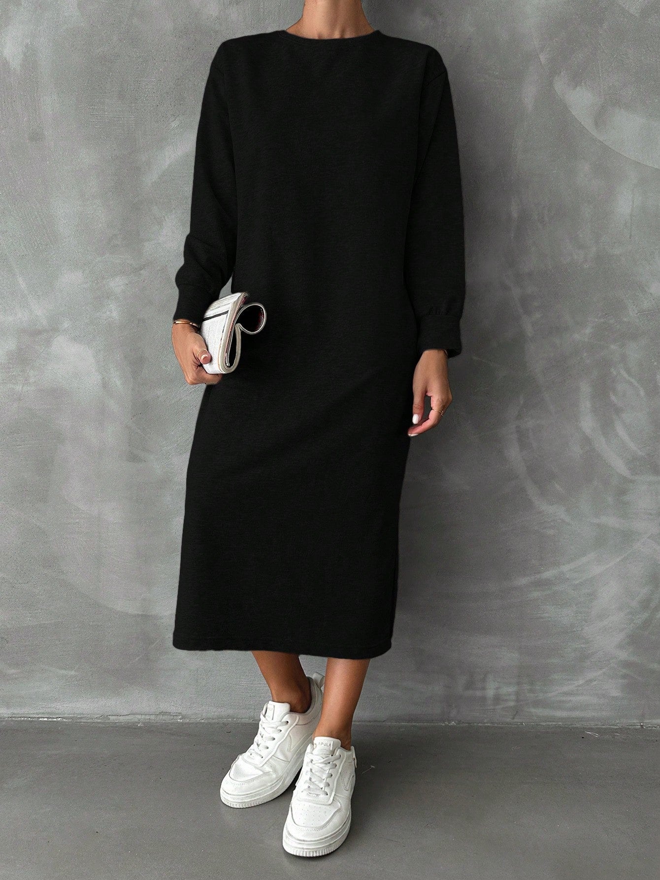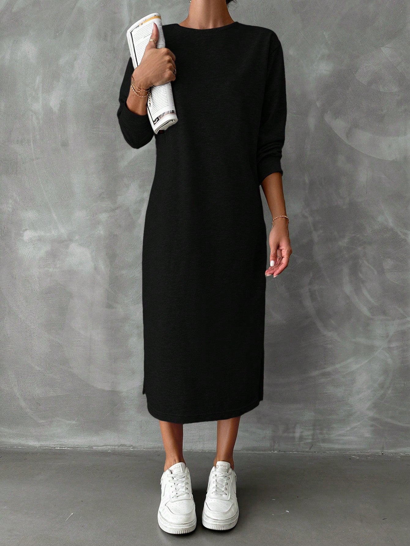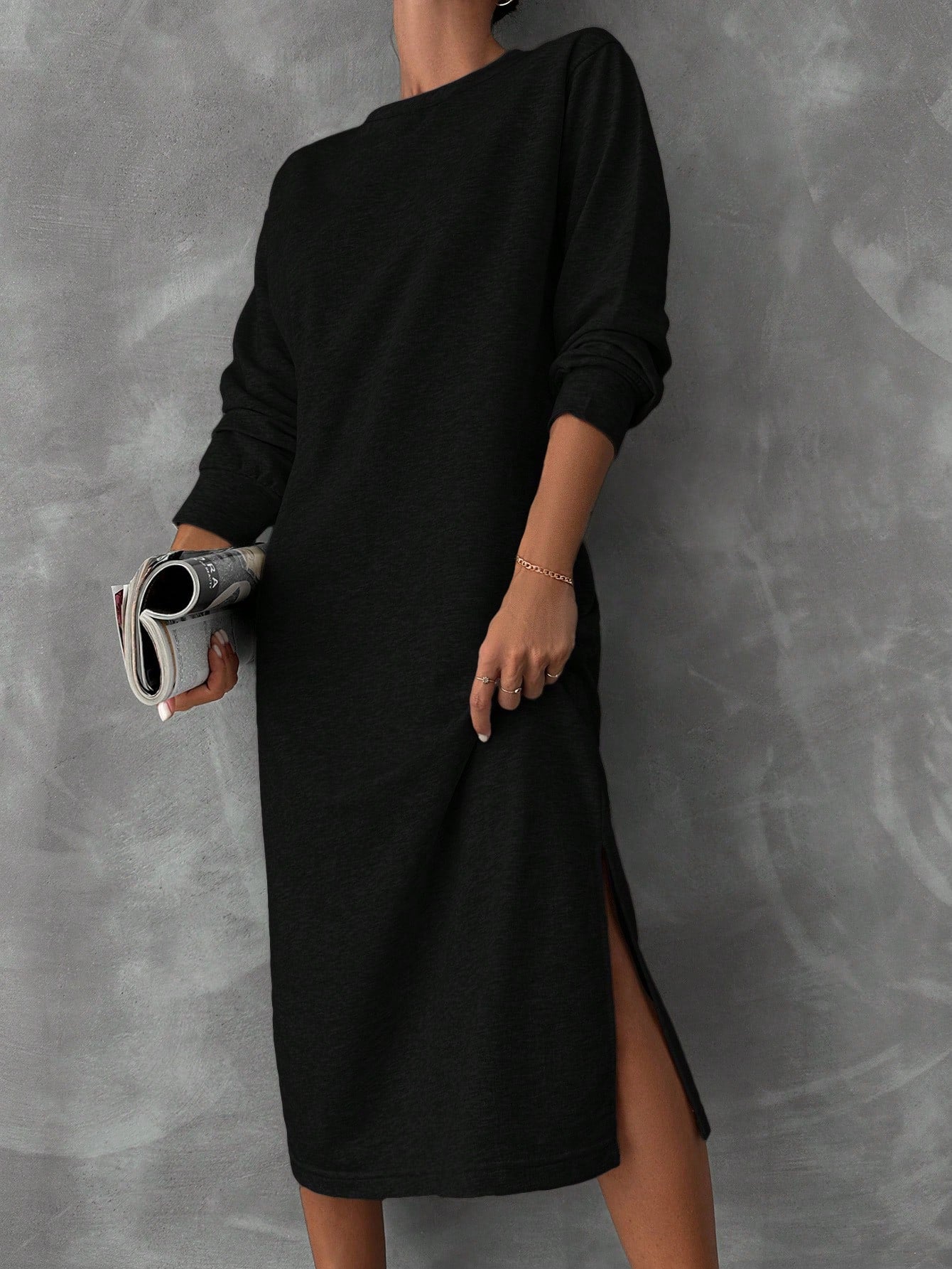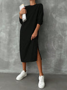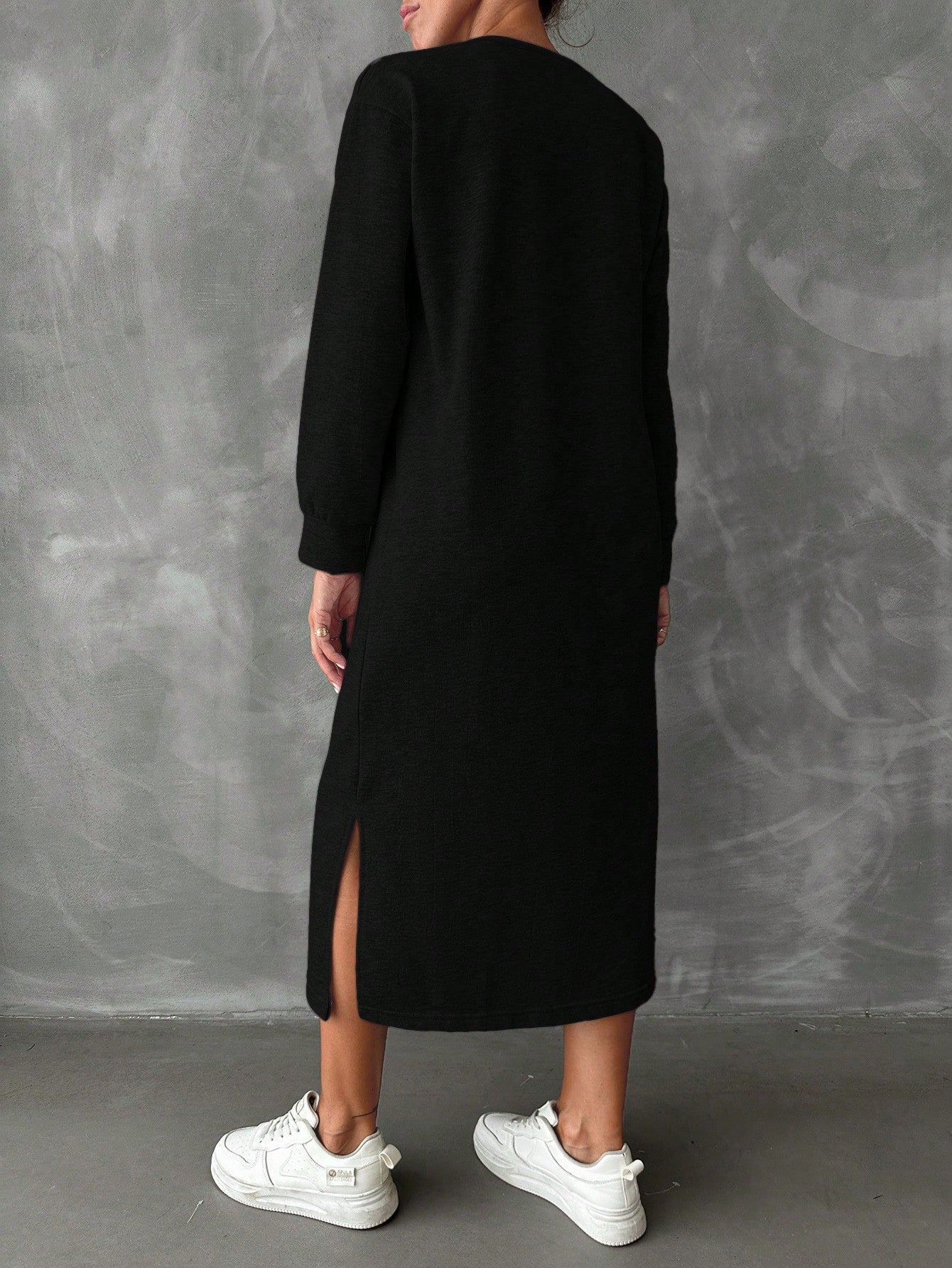 فستان سويت شيرت نسائي من القطن من EURMUSE بكتف منسدل وحافة مشقوقة