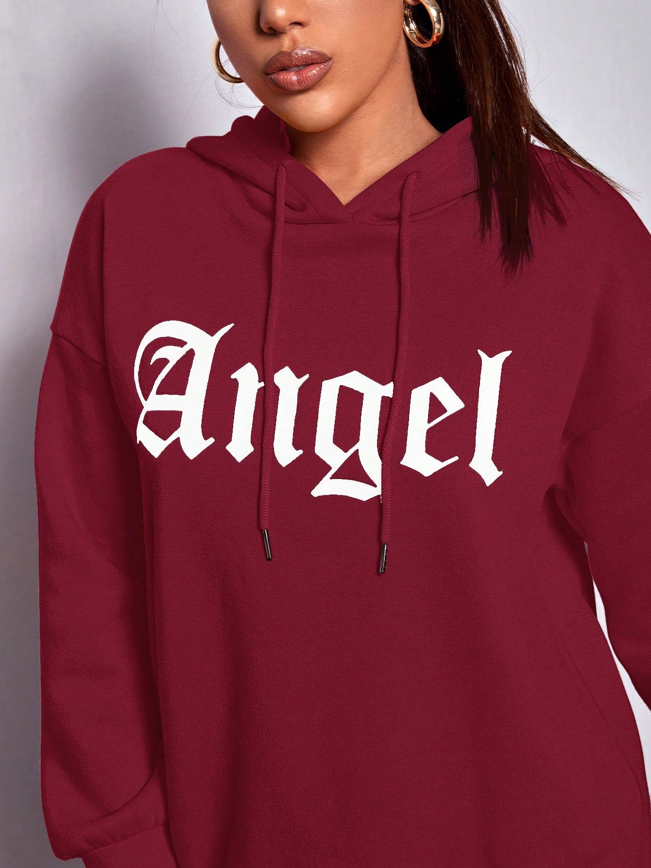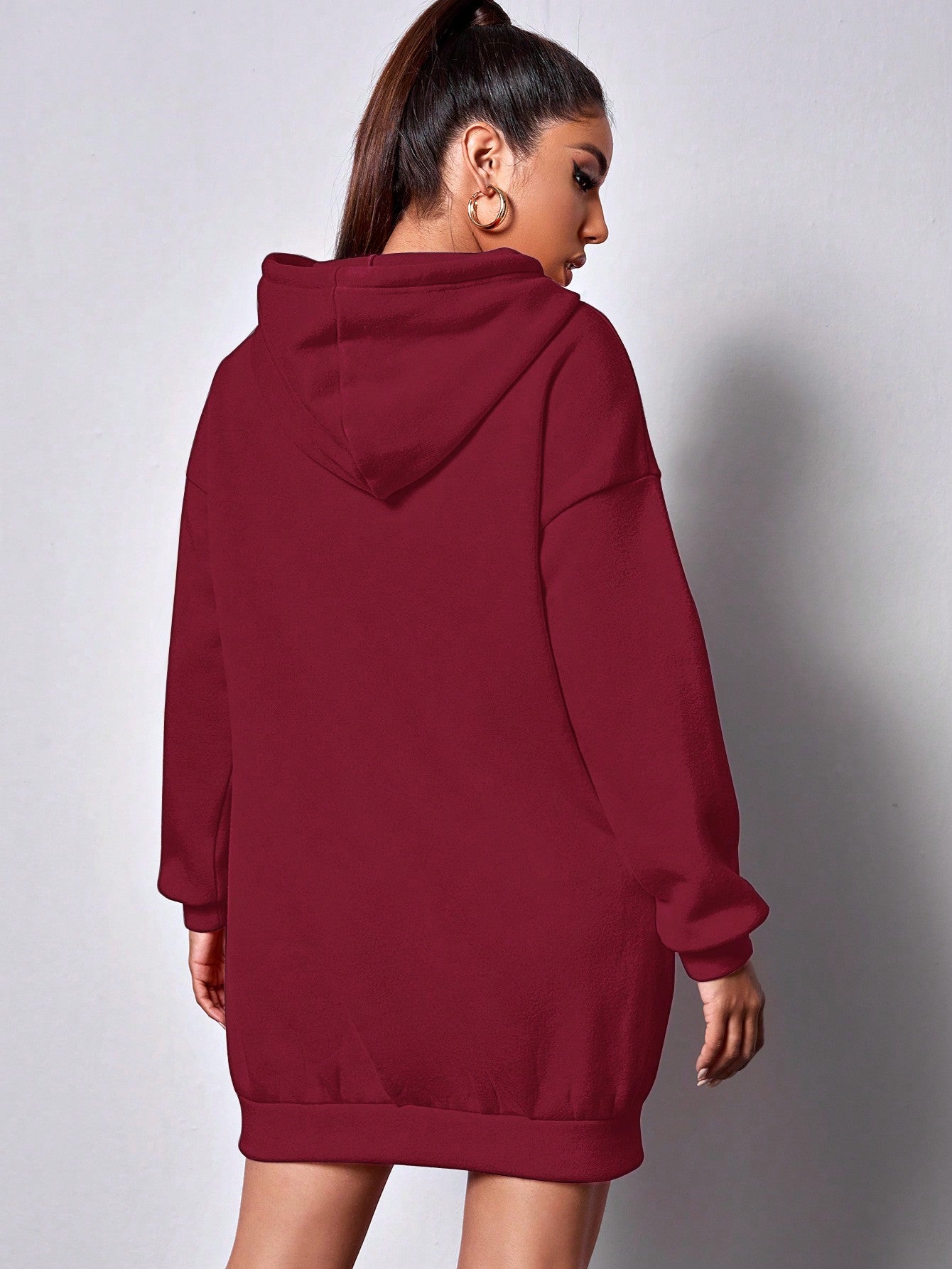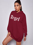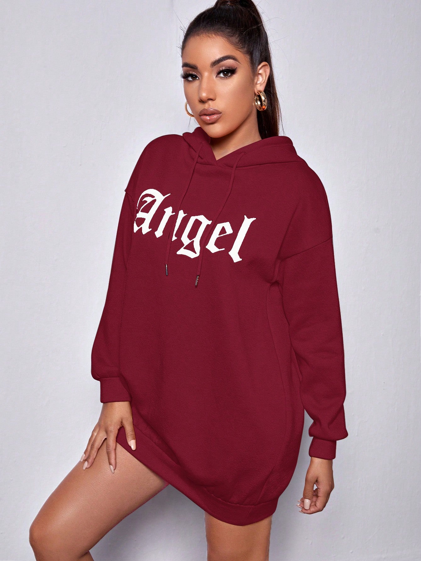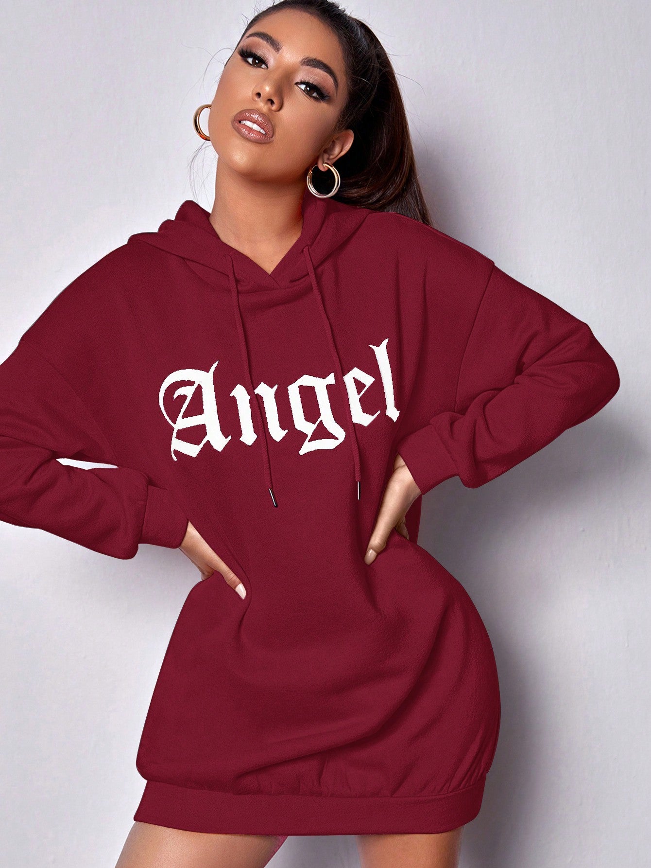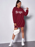 فستان سويت شيرت بغطاء رأس برباط مزين برسومات حروف من EURMUSE
