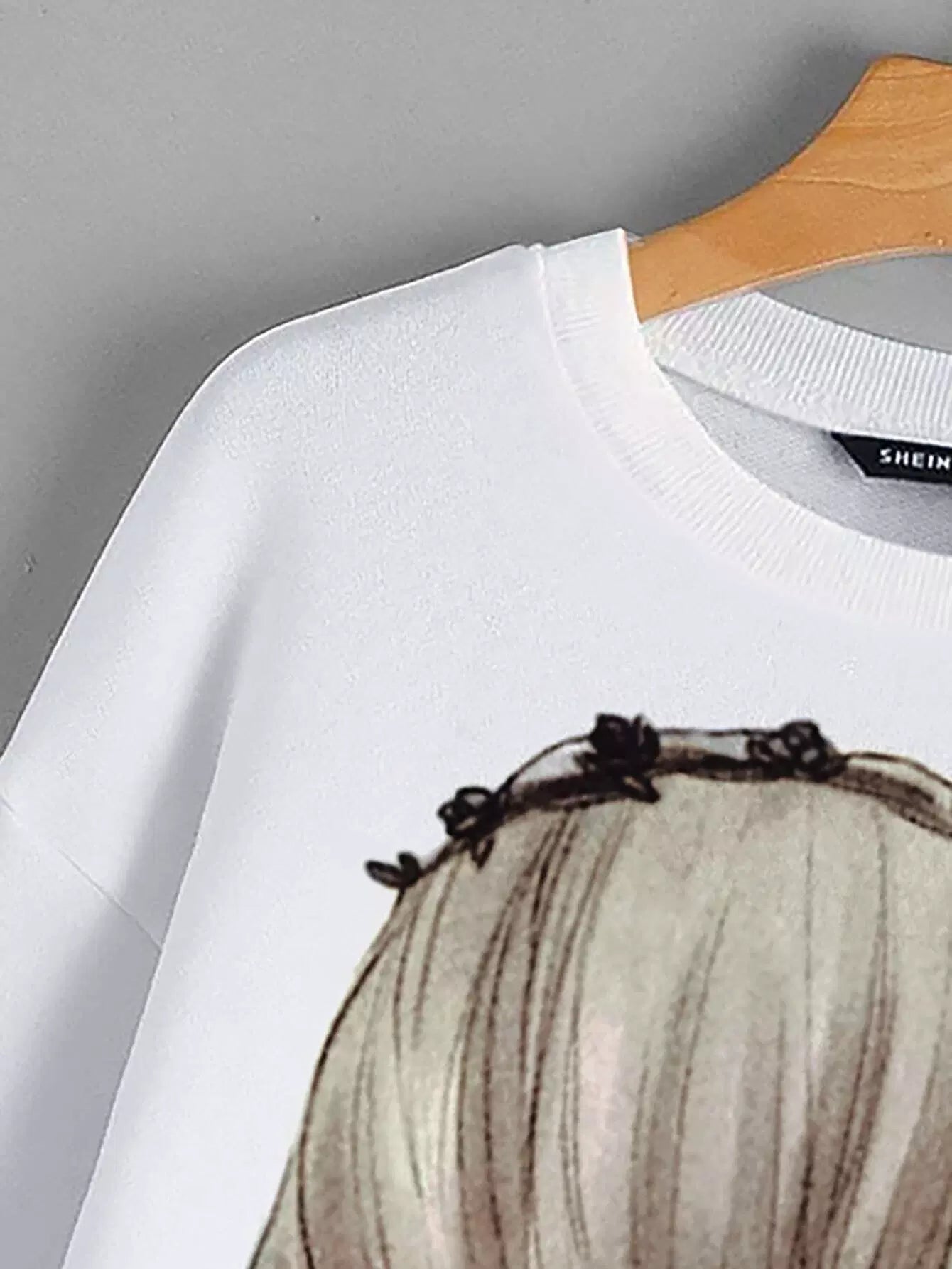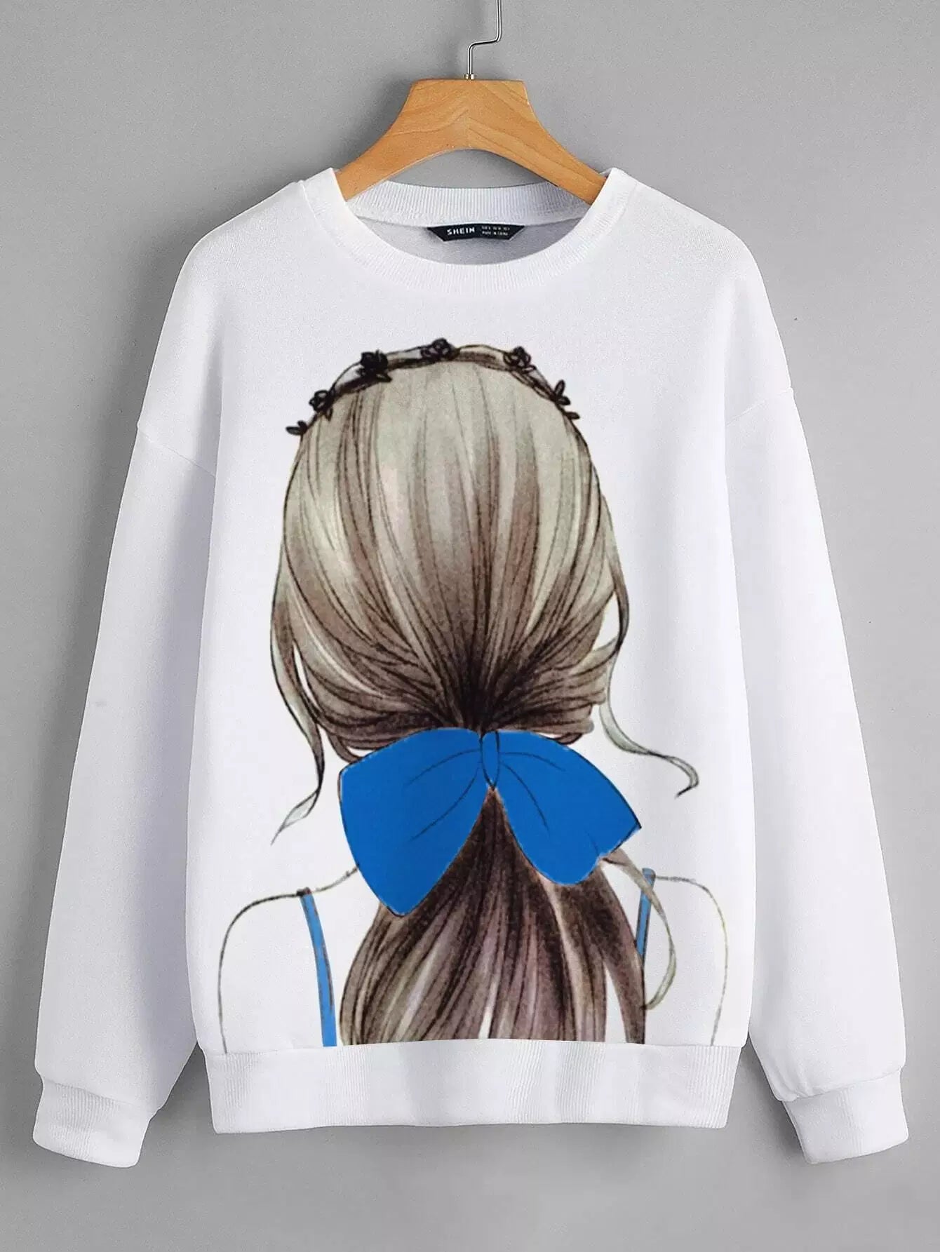 كنزة صوفية منسدلة الكتفين على شكل جرافيك