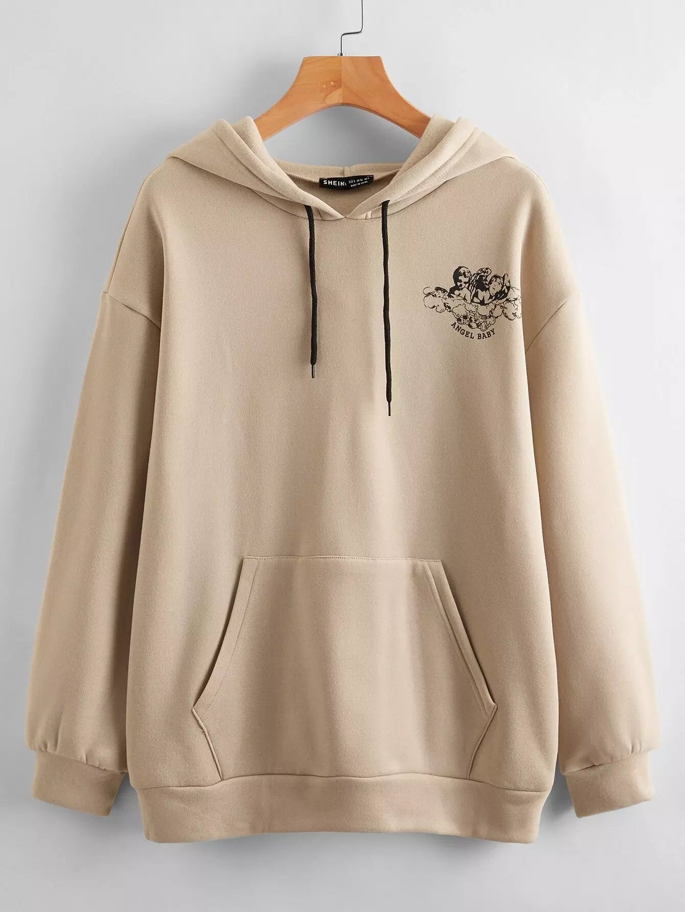 هودي بجيب كانجارو برسومات على شكل وحروف بجيب برباط رباط