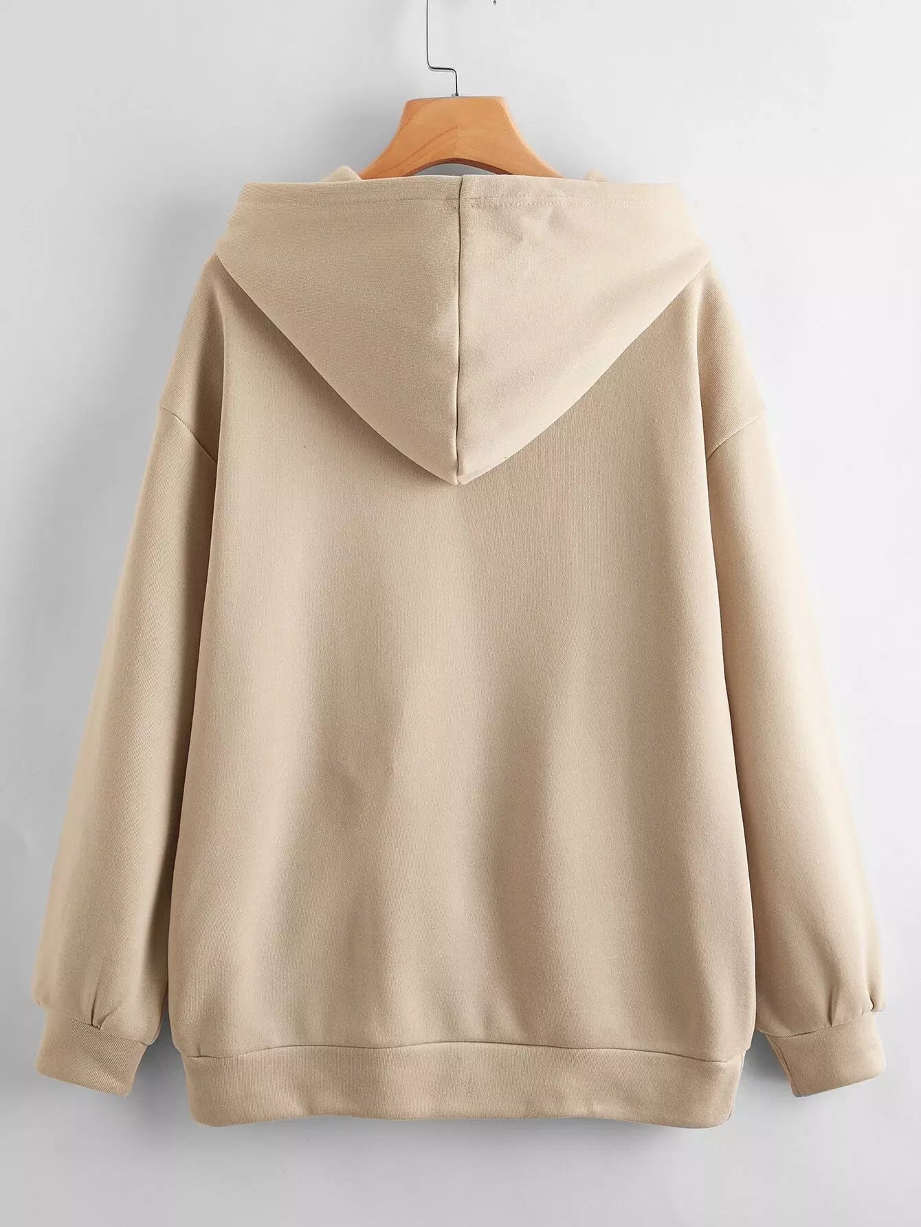 للنساء - سترة بغطاء للرأس برباط وجيب الكنغر برسومات الشكل والحروف