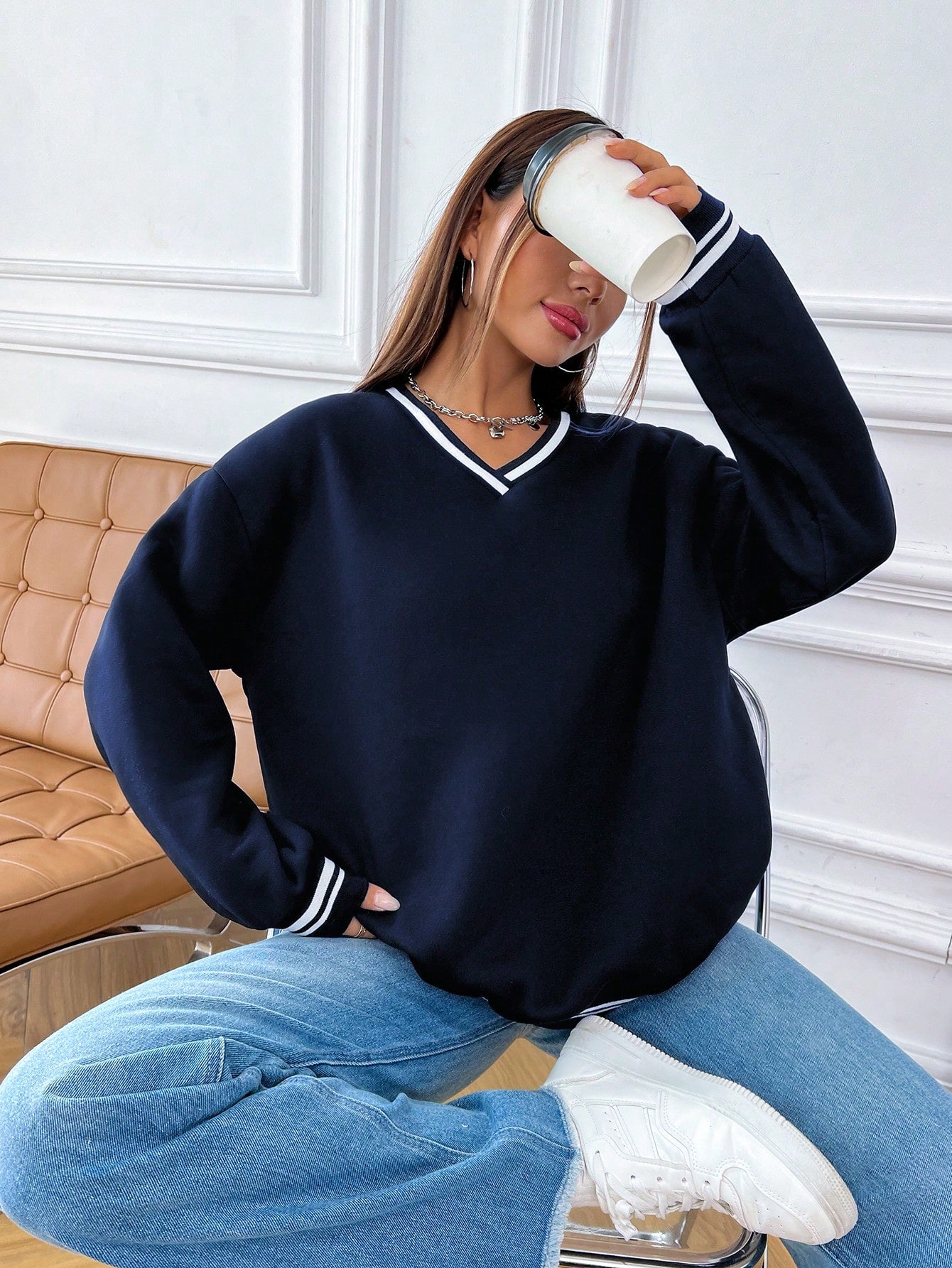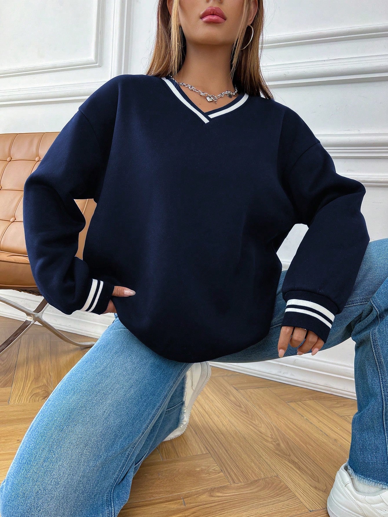 سويت شيرت Flirla مخطط بحواف منسدلة الكتف - قميص بأكمام طويلة للتخرج