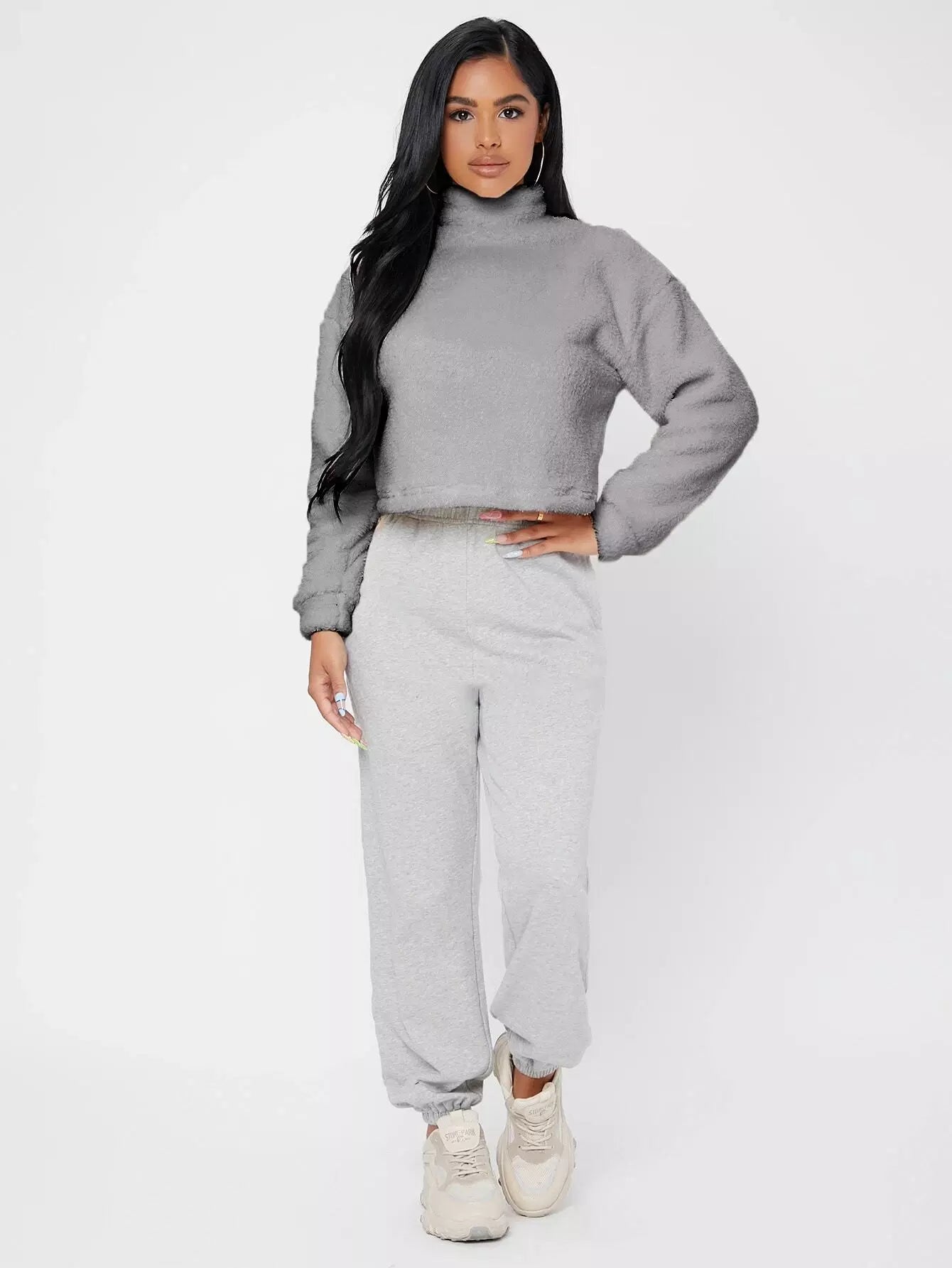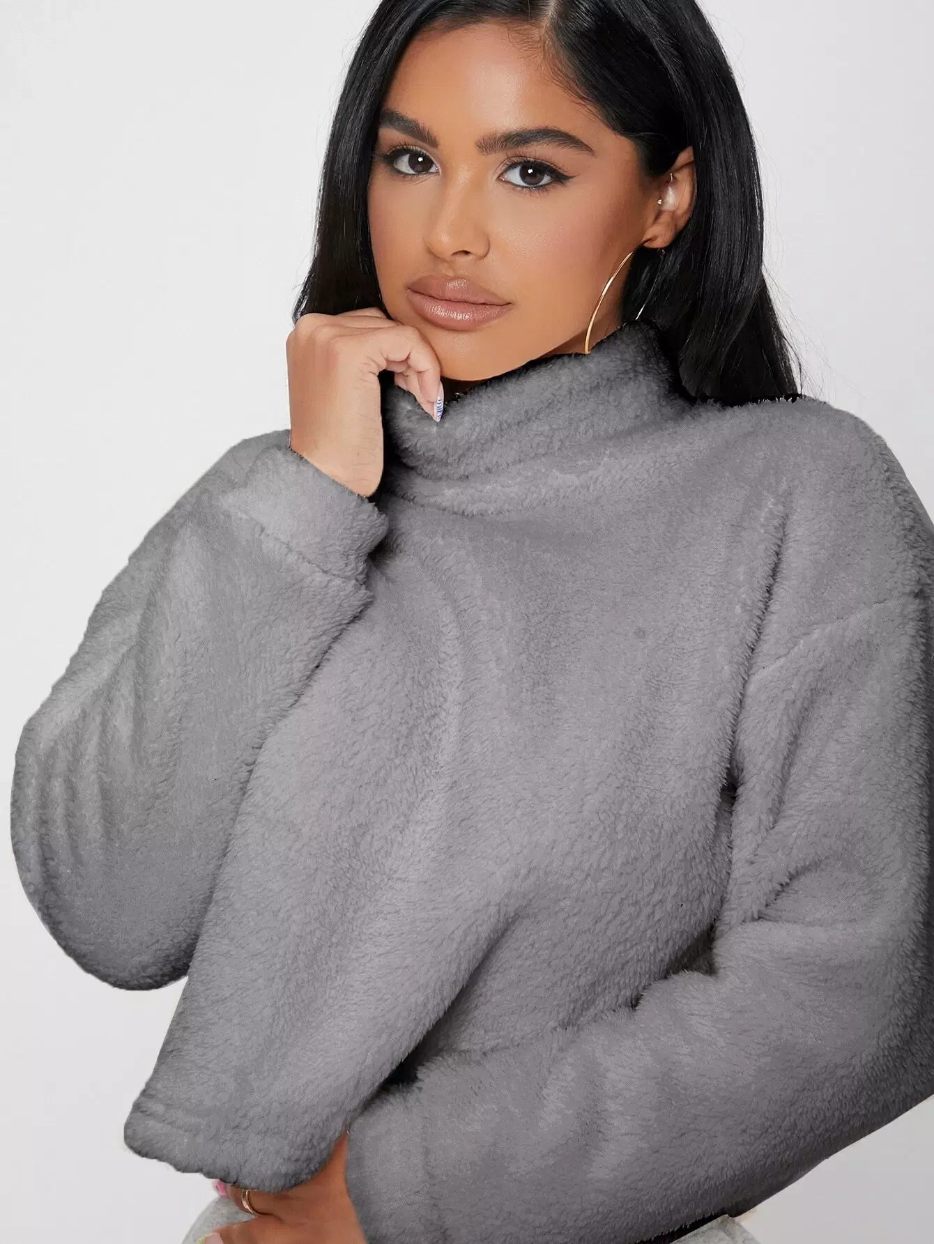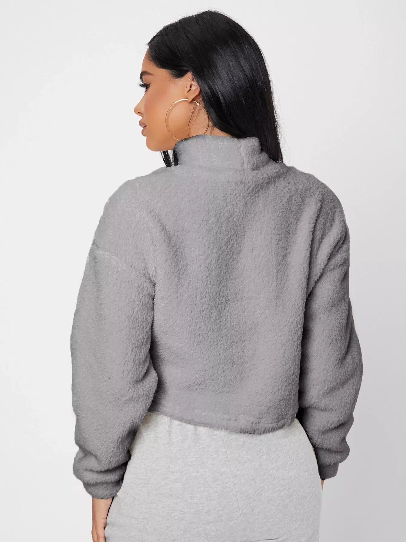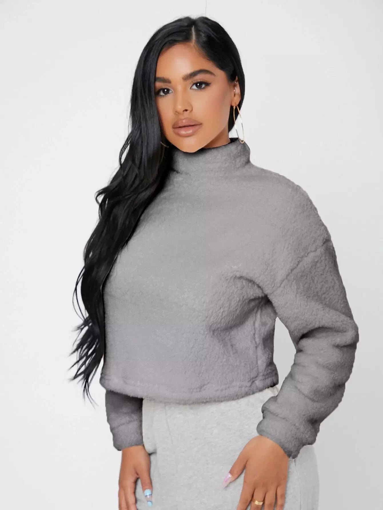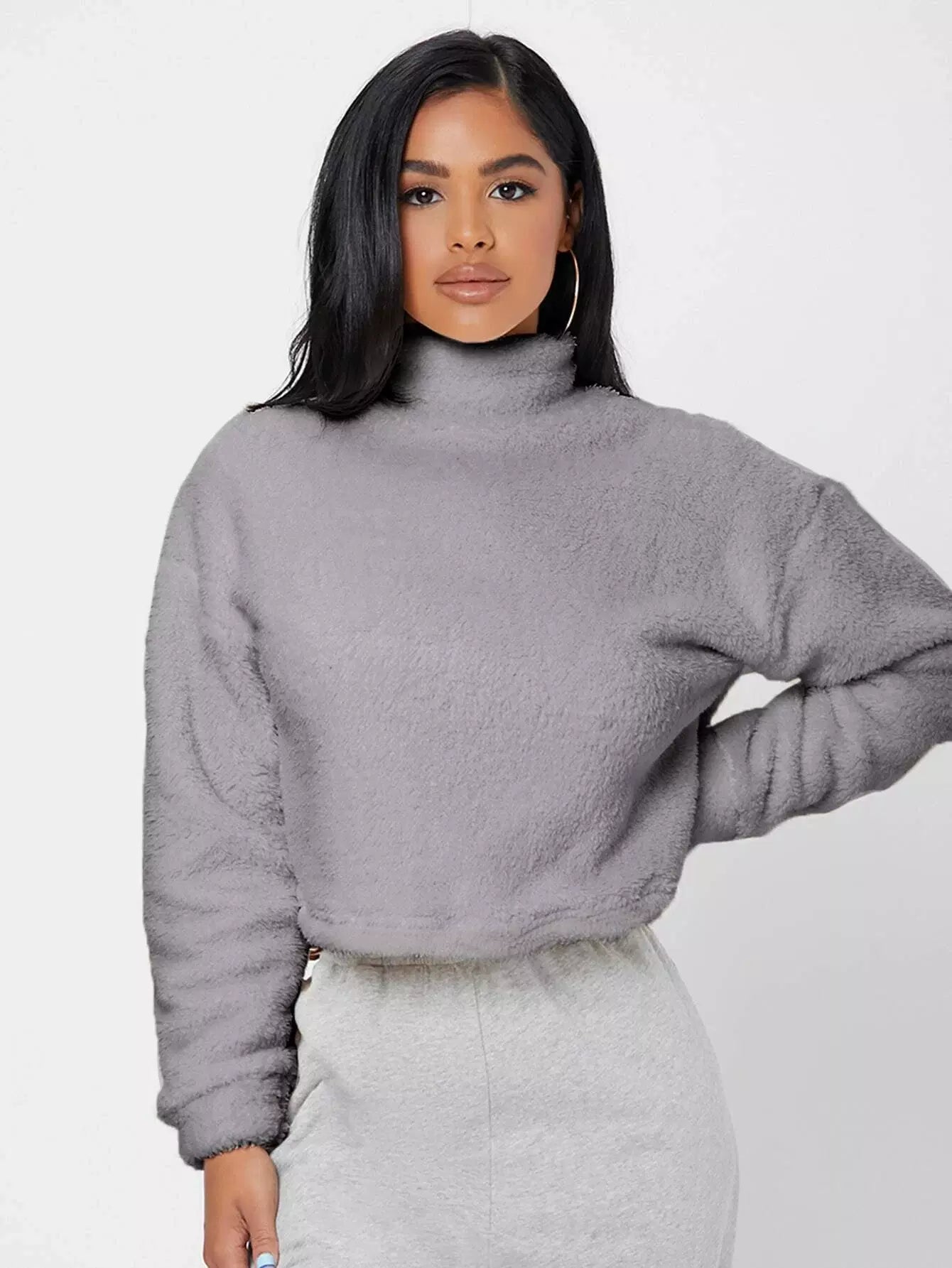 سويت شيرت برقبة قمعية منسدلة الكتفين منسدلة الكتفين