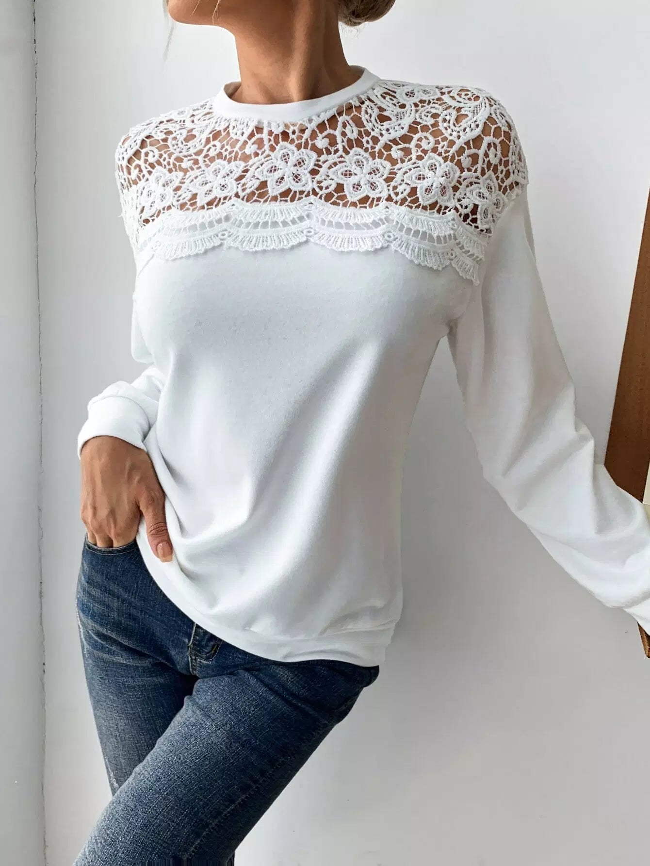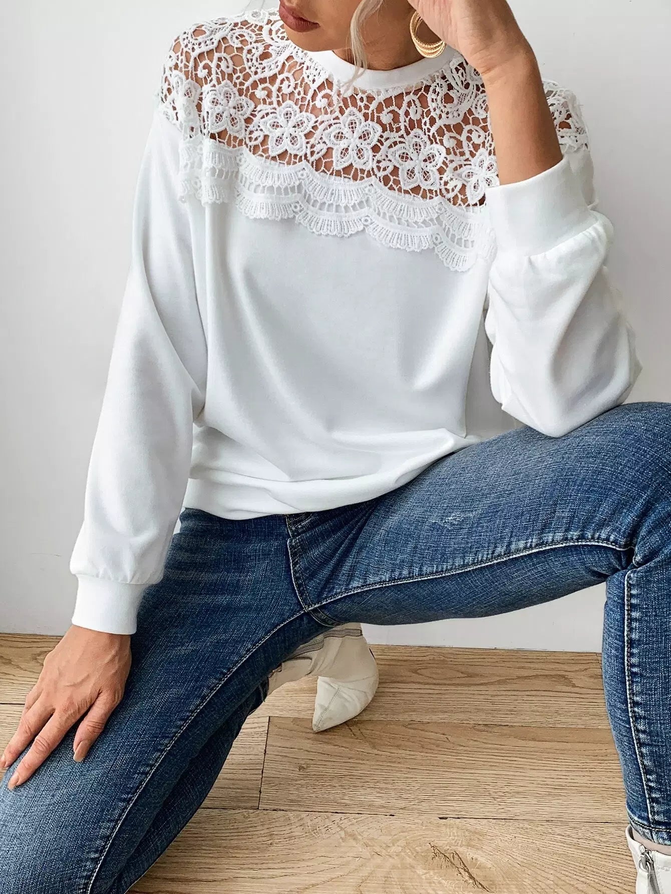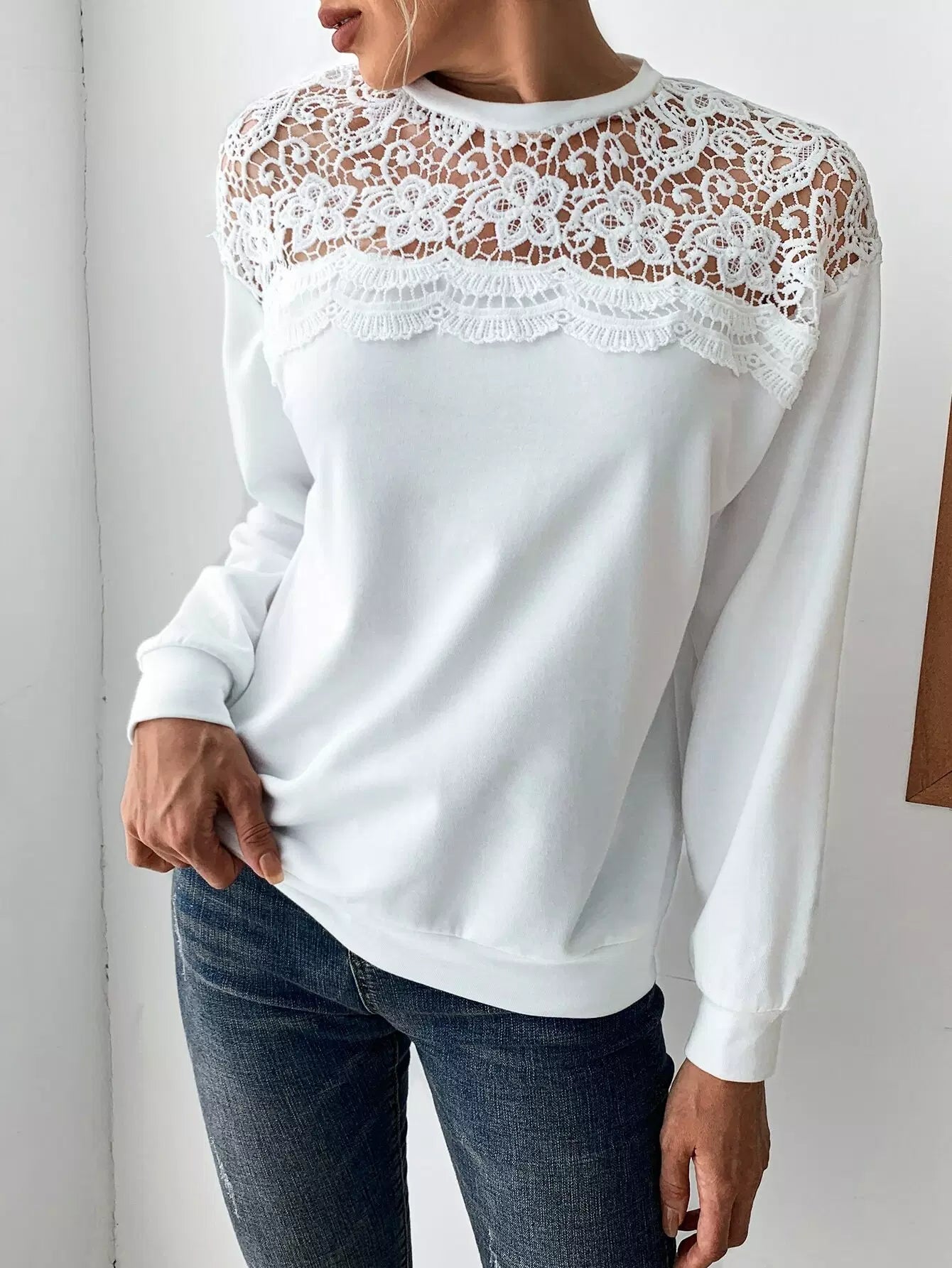 سويت شيرت منسدل الأكتاف من الدانتيل المخرم