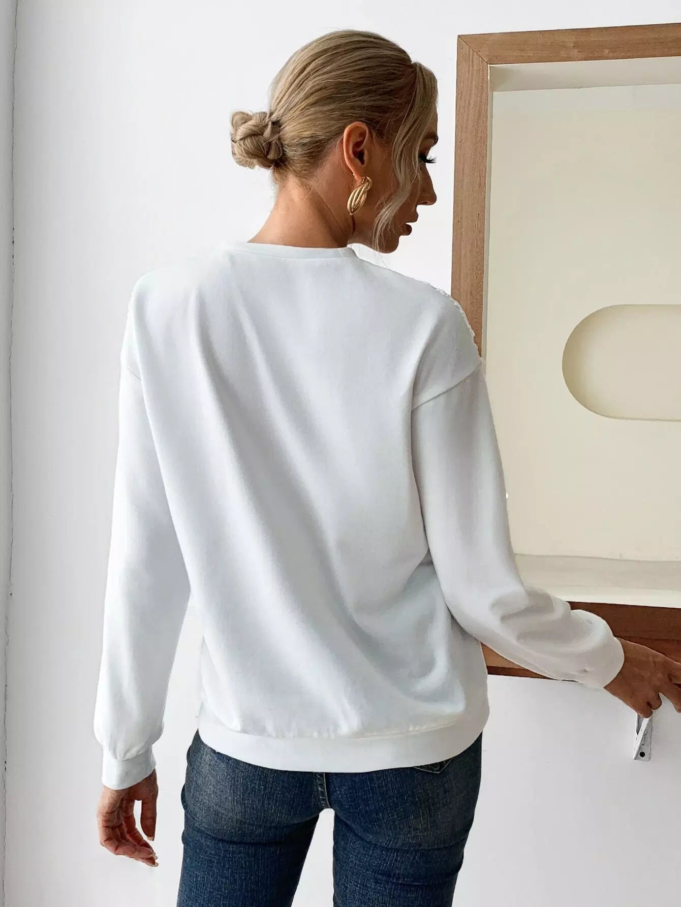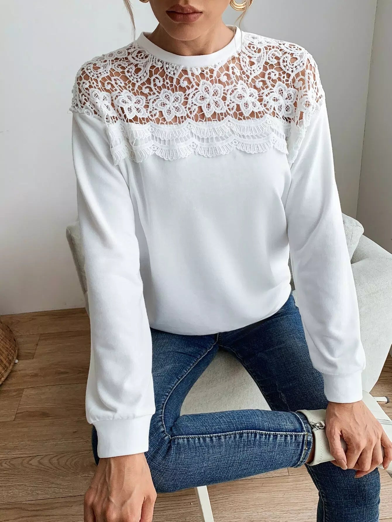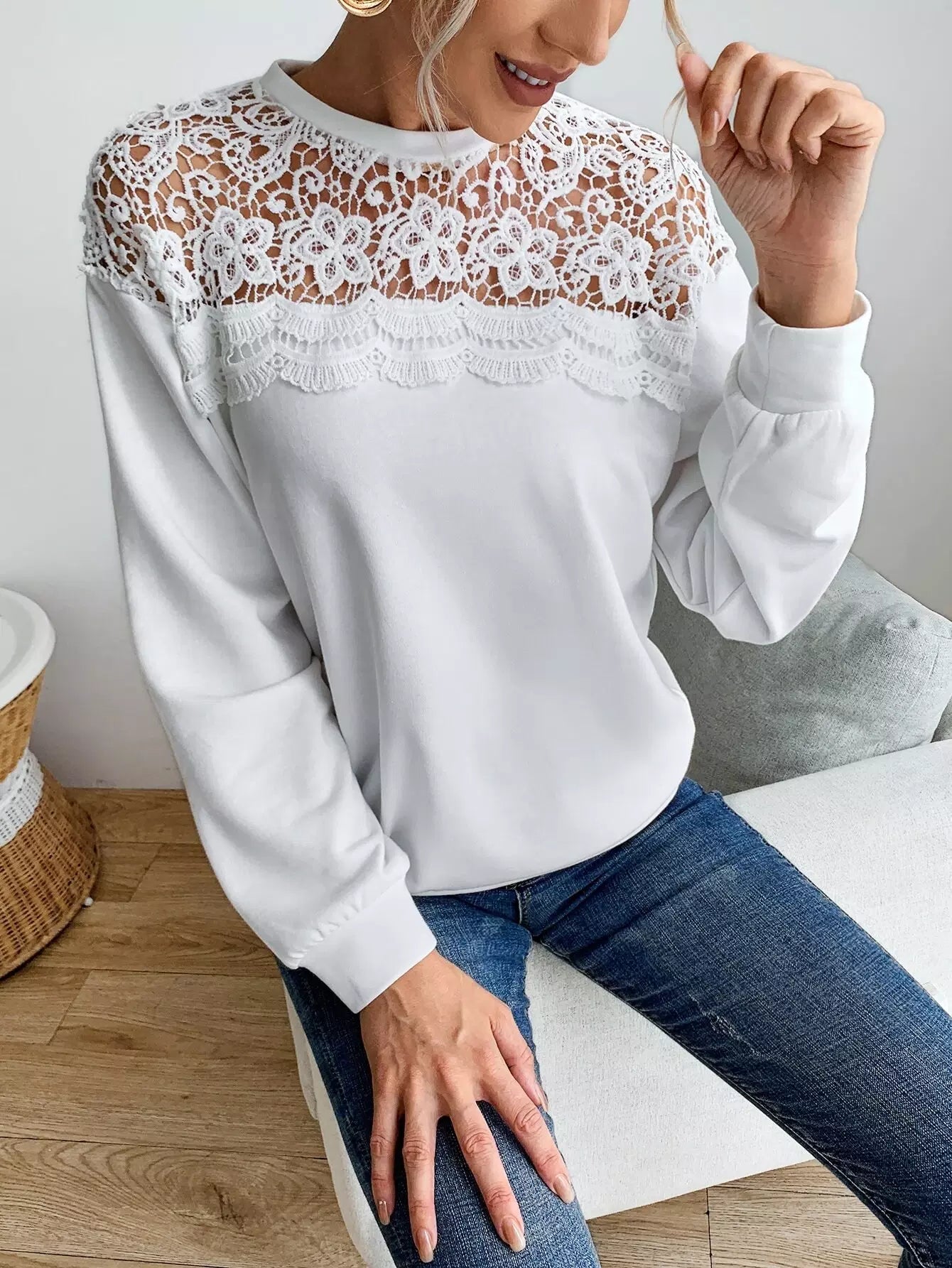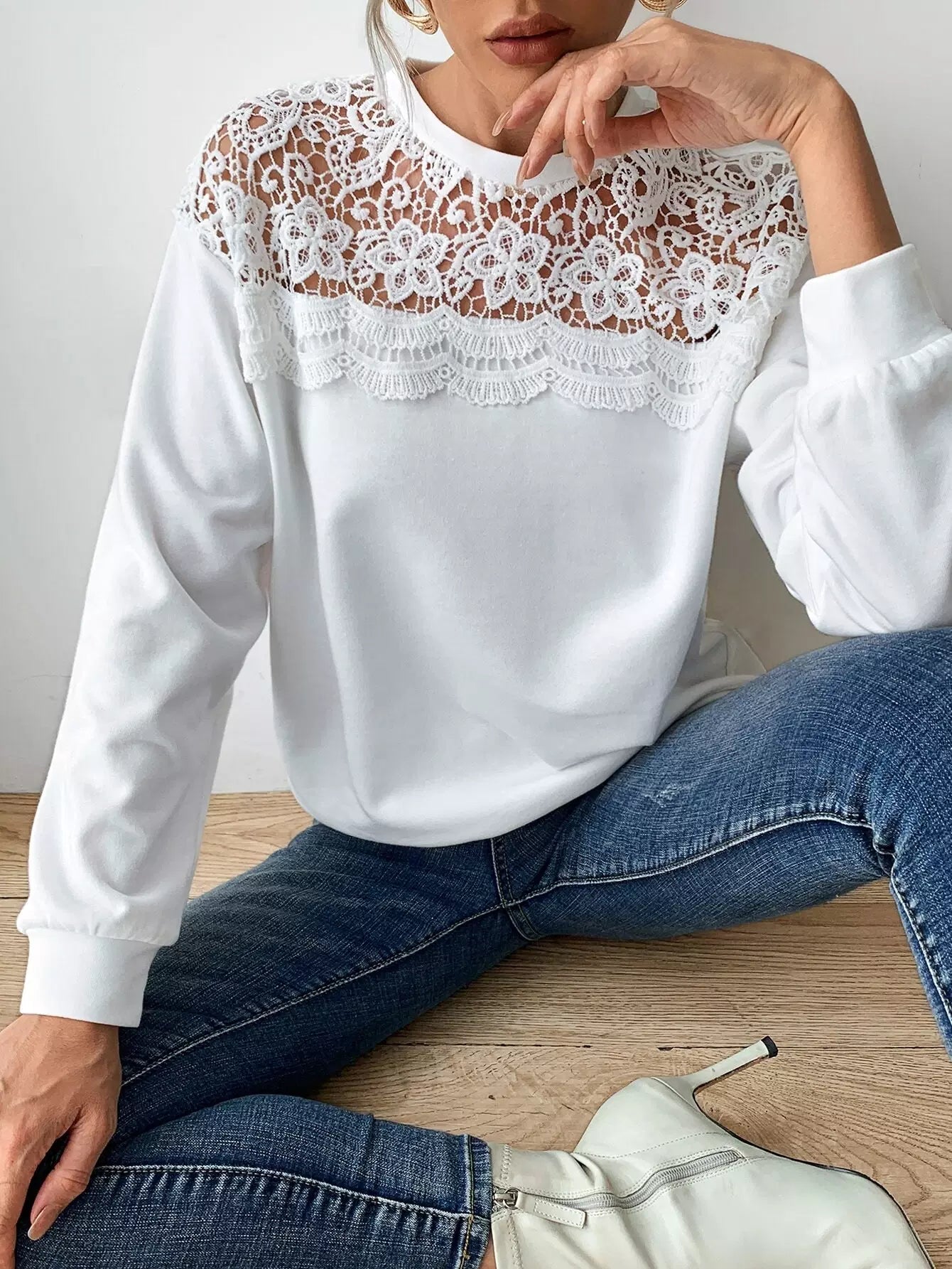 سويت شيرت منسدل الأكتاف من الدانتيل المخرم