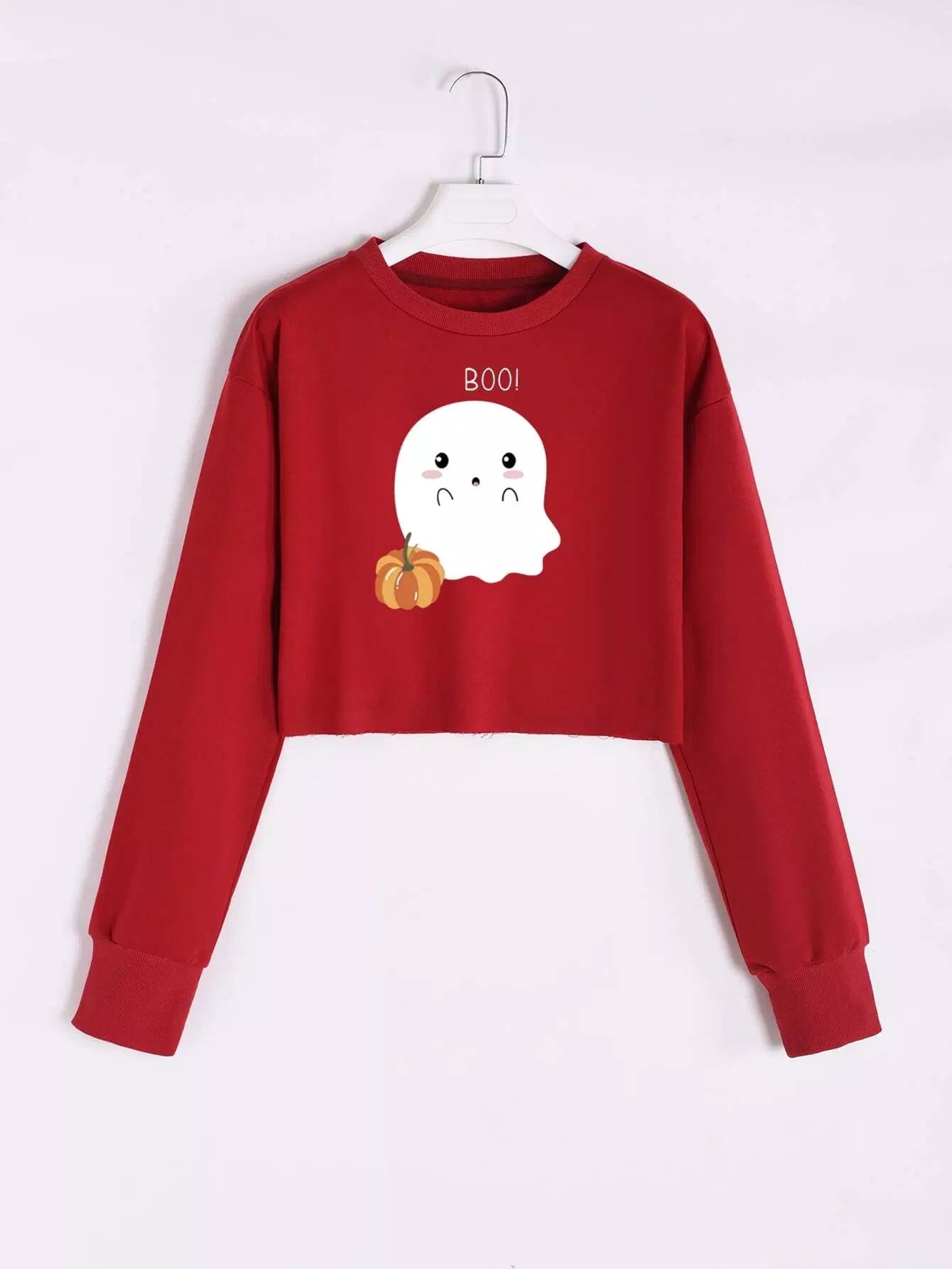 سويت شيرت منسدل الكتف مطبوع عليه حروف الهالوين