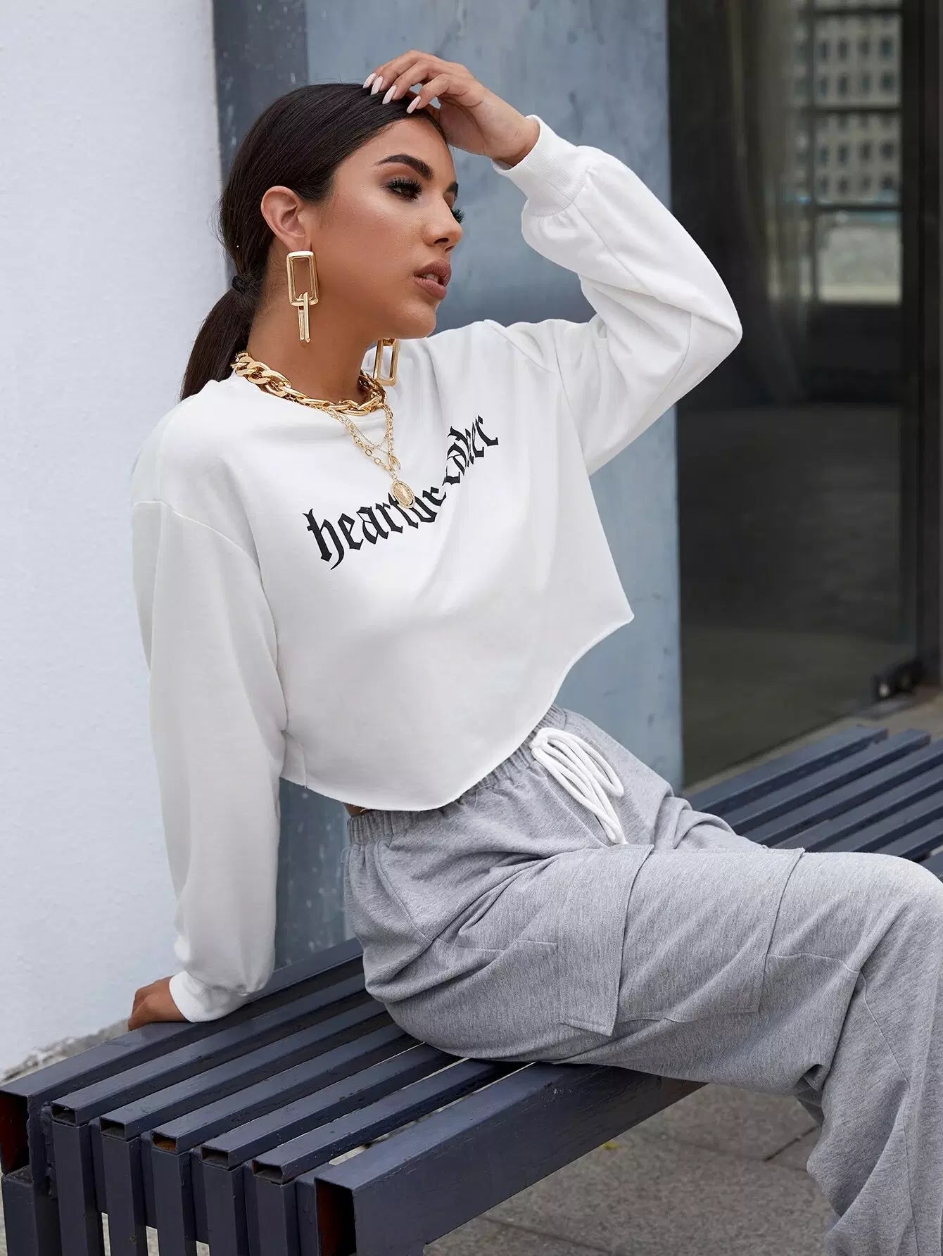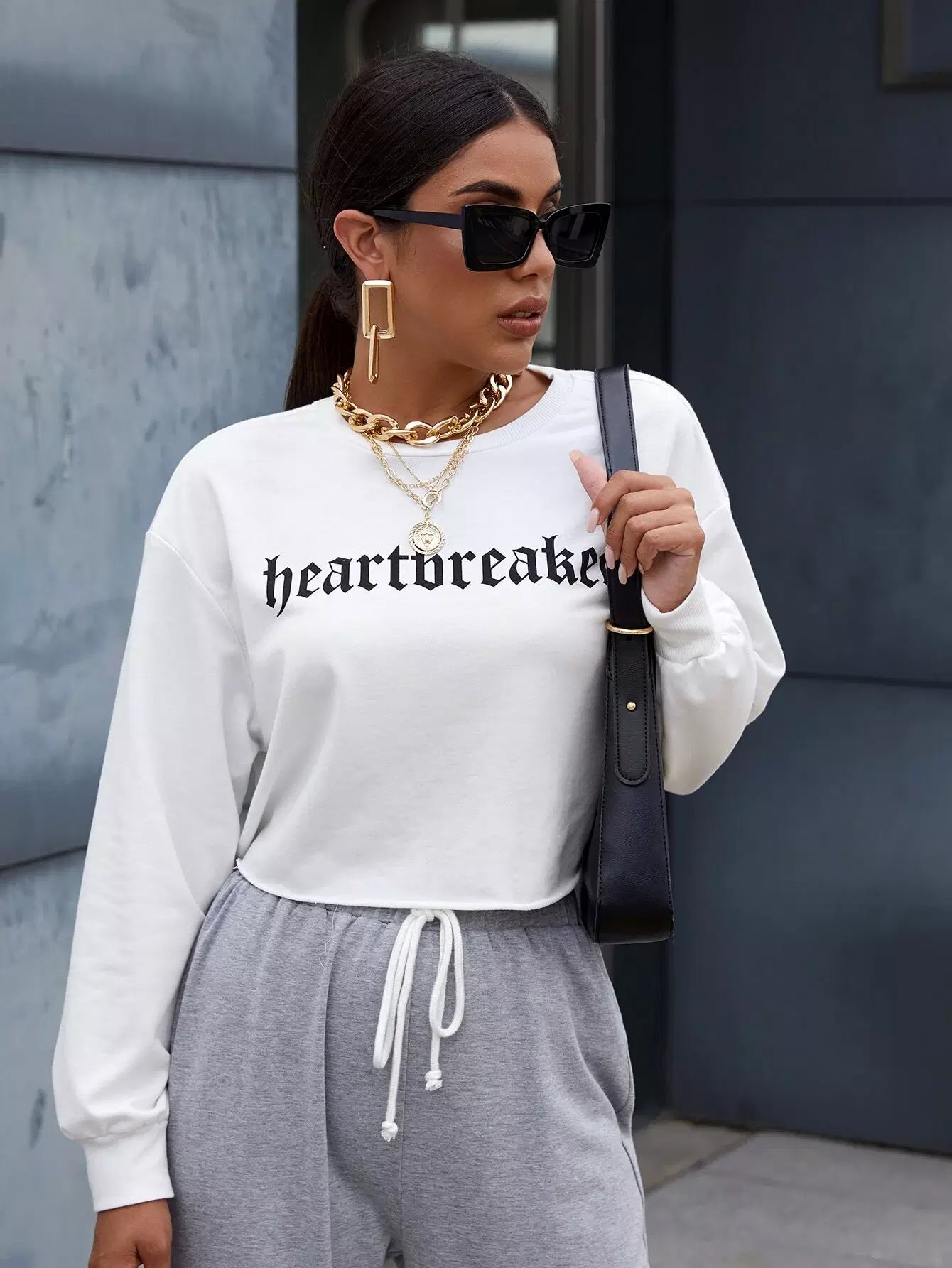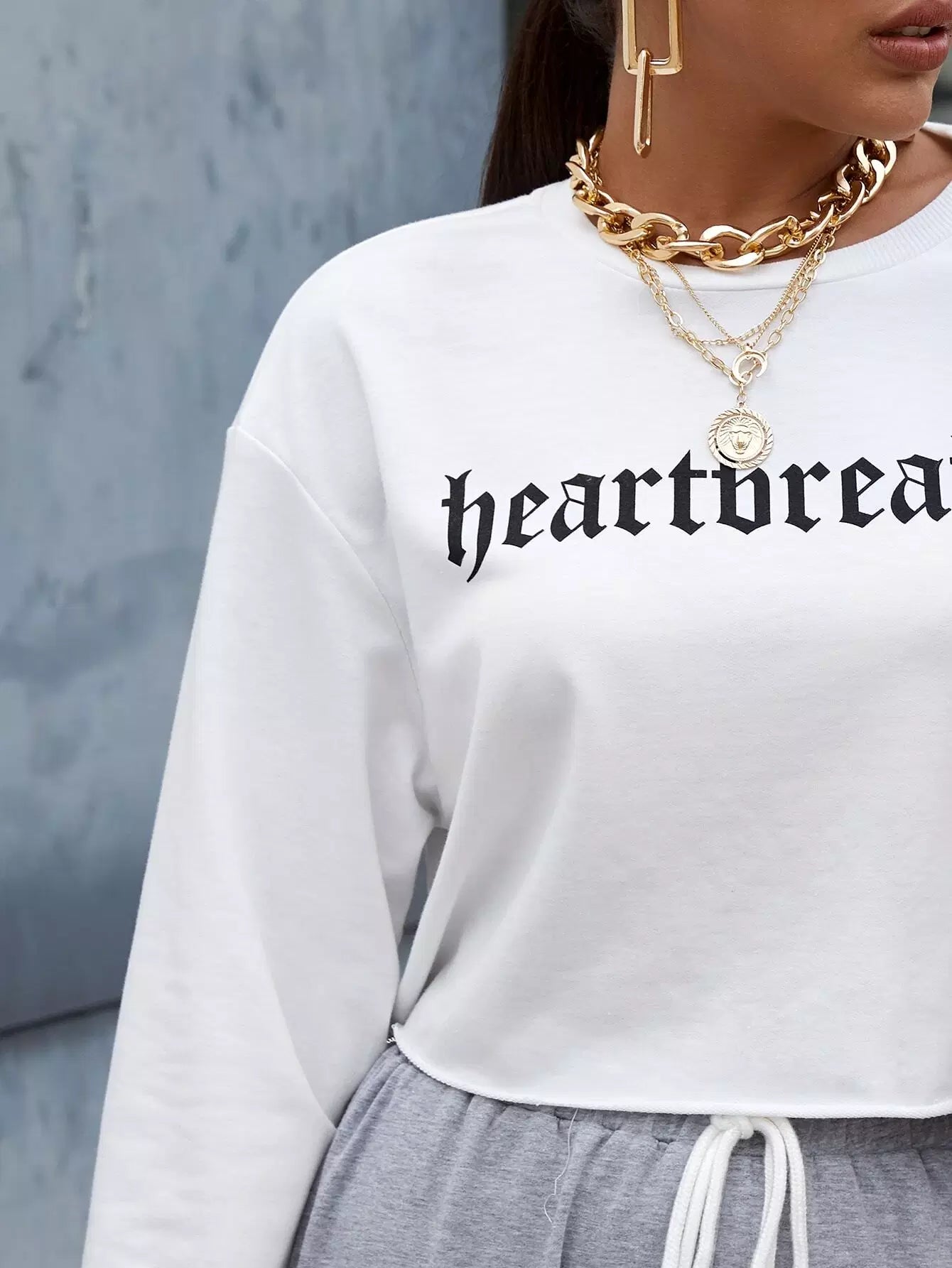 تي شيرت منسدل الكتفين برسمة قلب محطم للقلب
