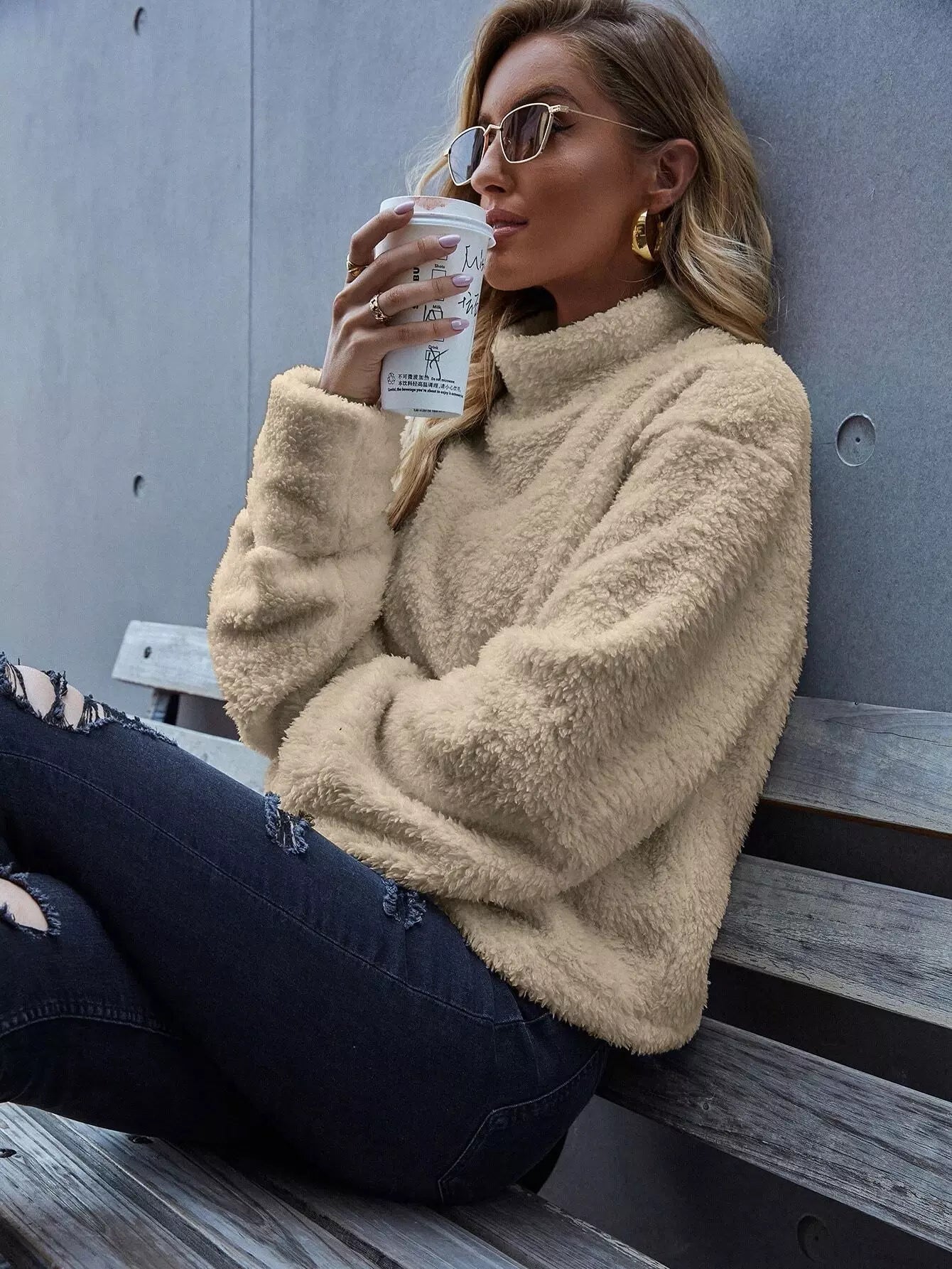 سويت شيرت برقبة عالية منسدلة الكتفين برقبة عالية