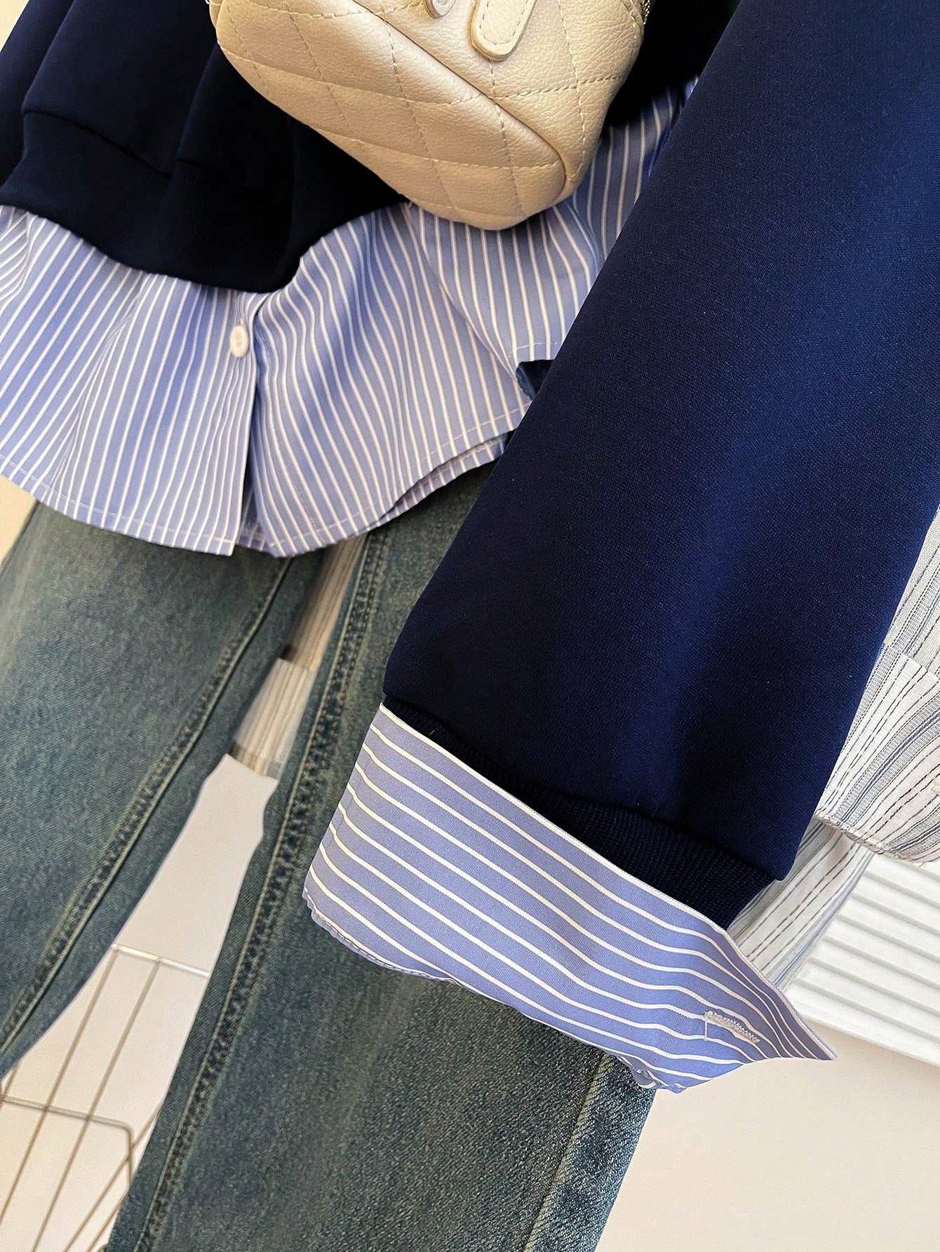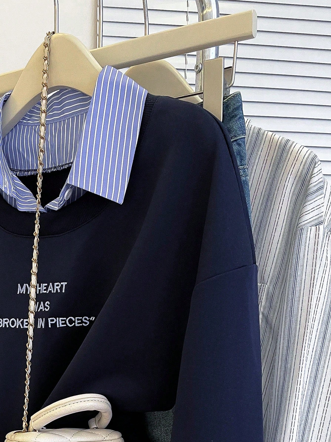 سويت شيرت نسائي أنيق وعصري من INAWLY، قطعتان في قطعة واحدة، بياقة وأكمام طويلة، مناسب لفصل الخريف