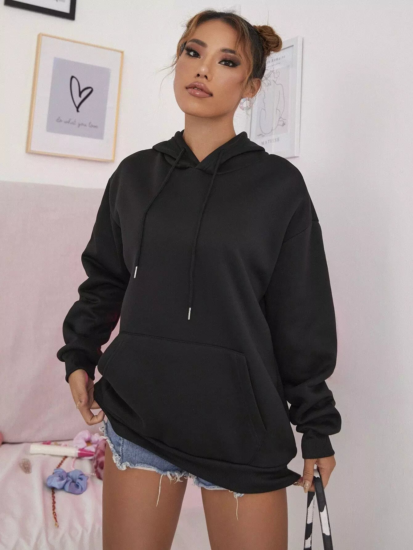 كنغر هودي حراري بجيب منسدل على الكتف برباط منسدل