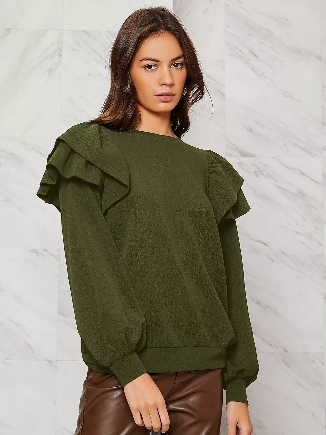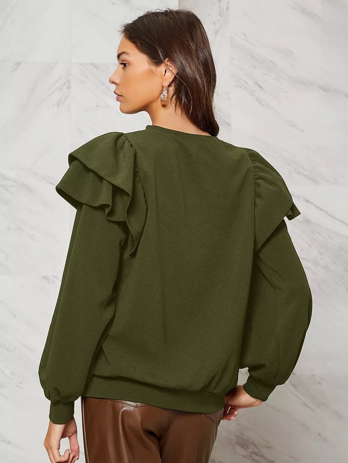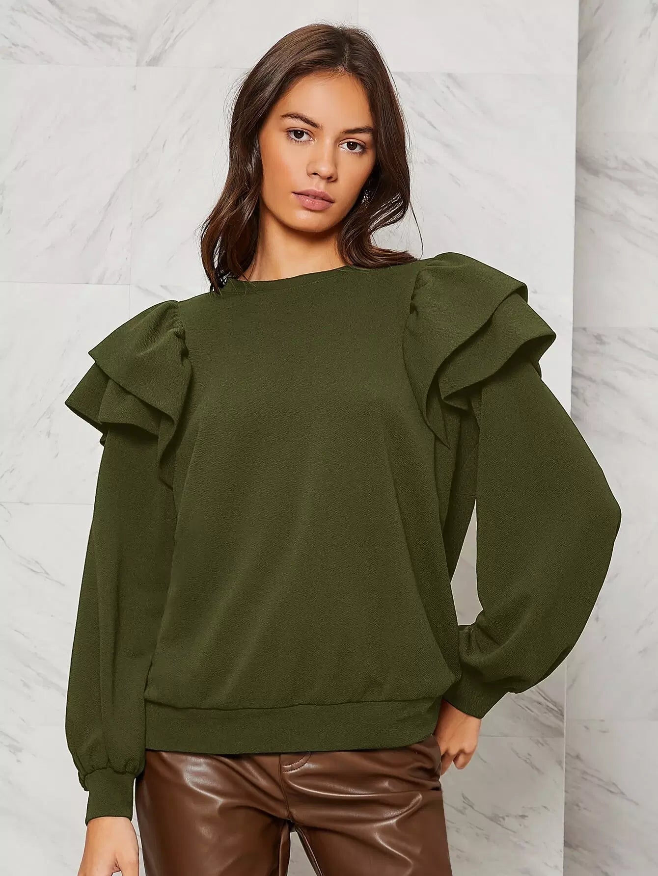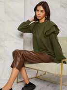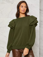 كنزة صوفية سادة ذات طبقات من الكشكشة ذات حواف مكشكشة