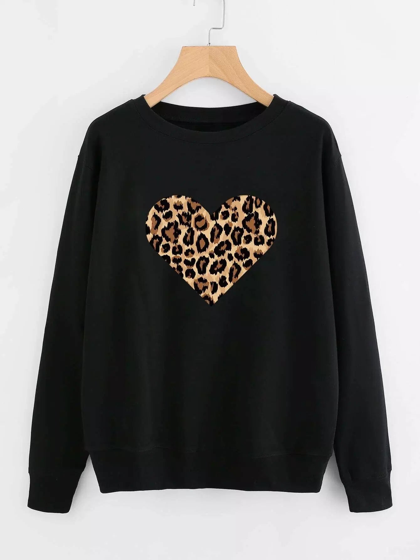 سويت شيرت منسدل الكتفين مطبوع عليه قلب نمر