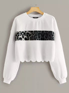 سويت شيرت بحاشية صدفية بطبعة جلد النمر