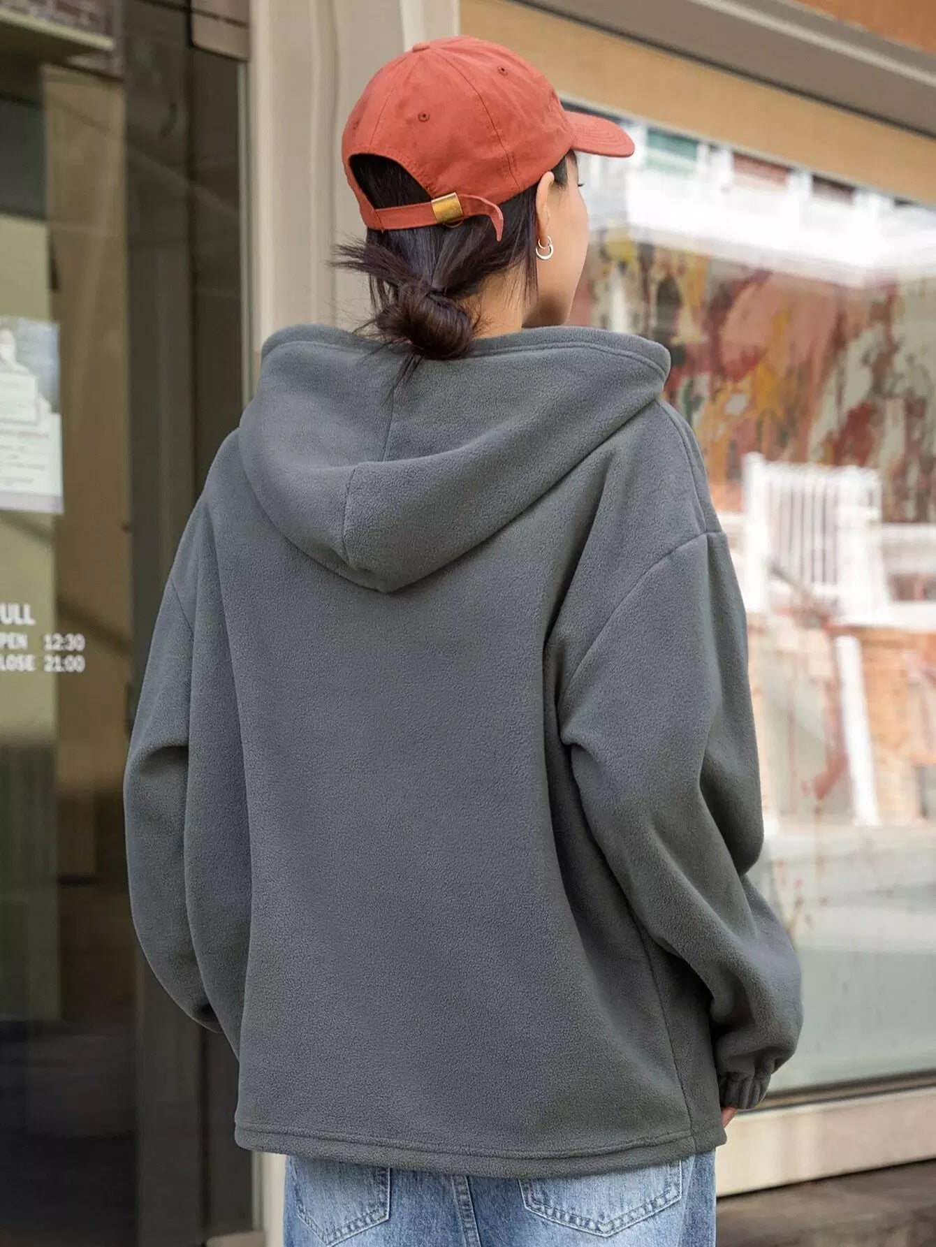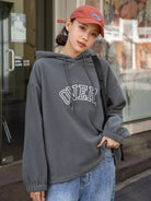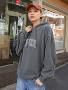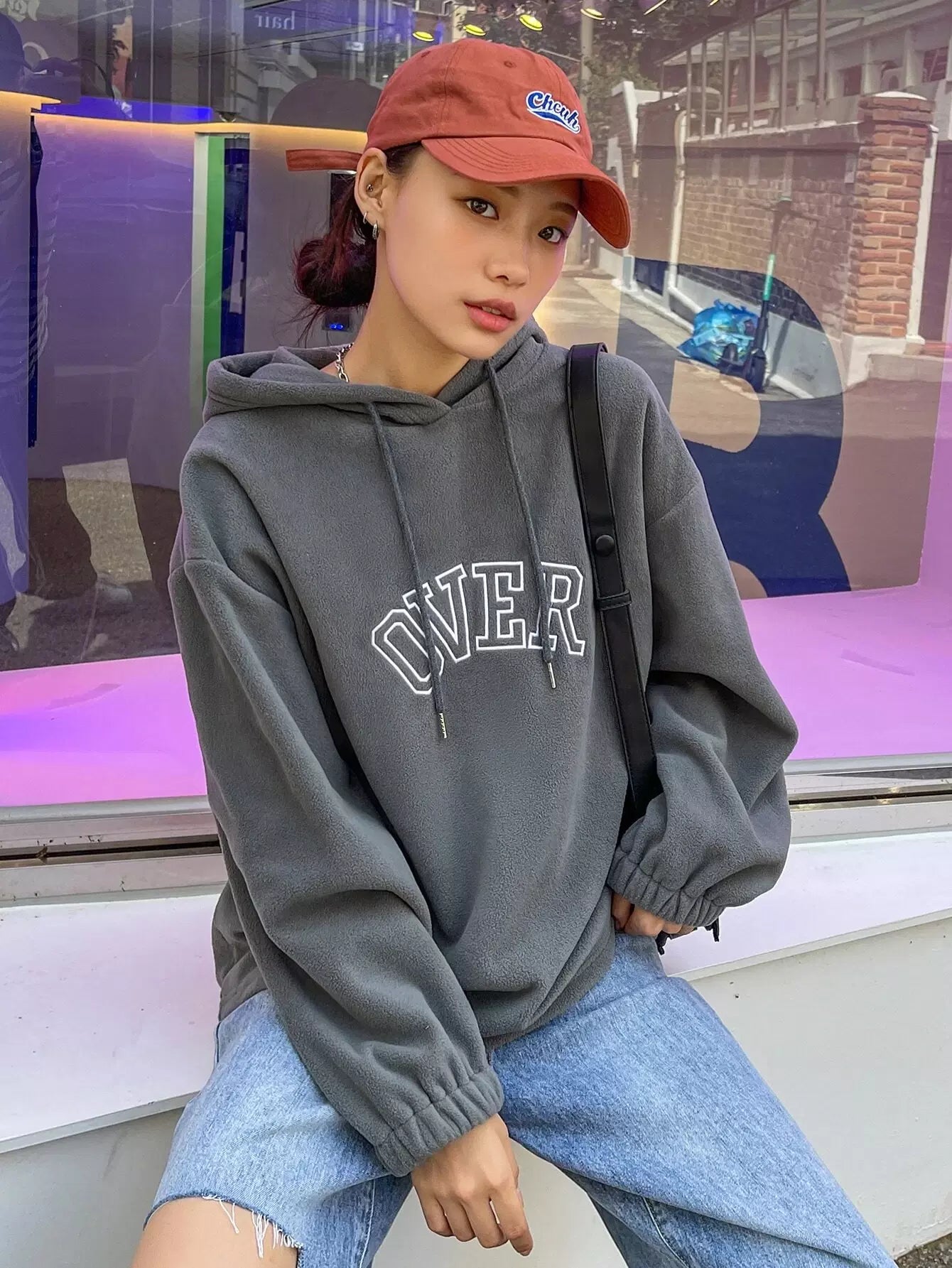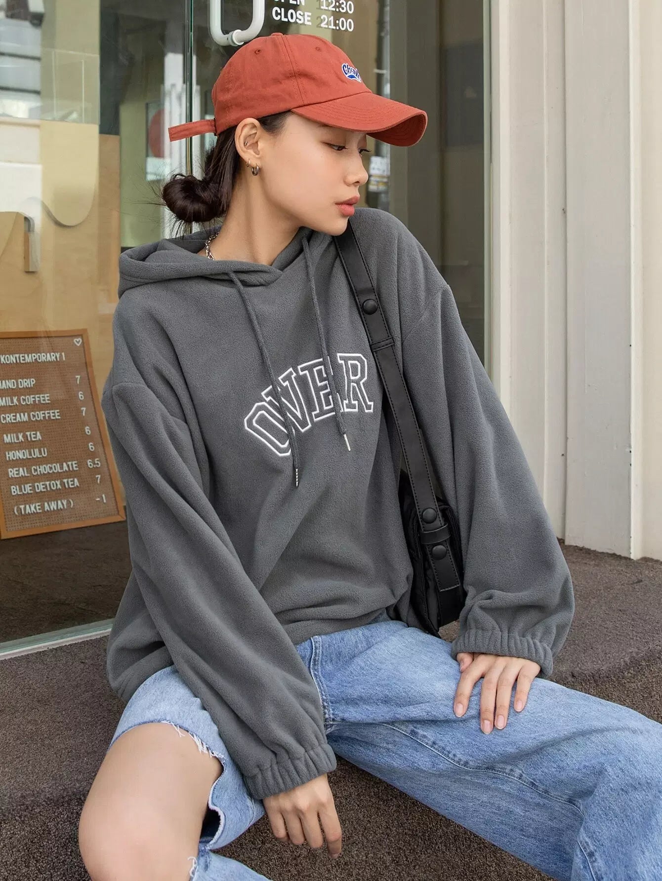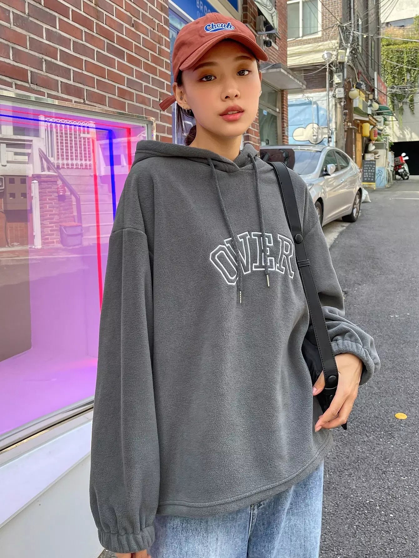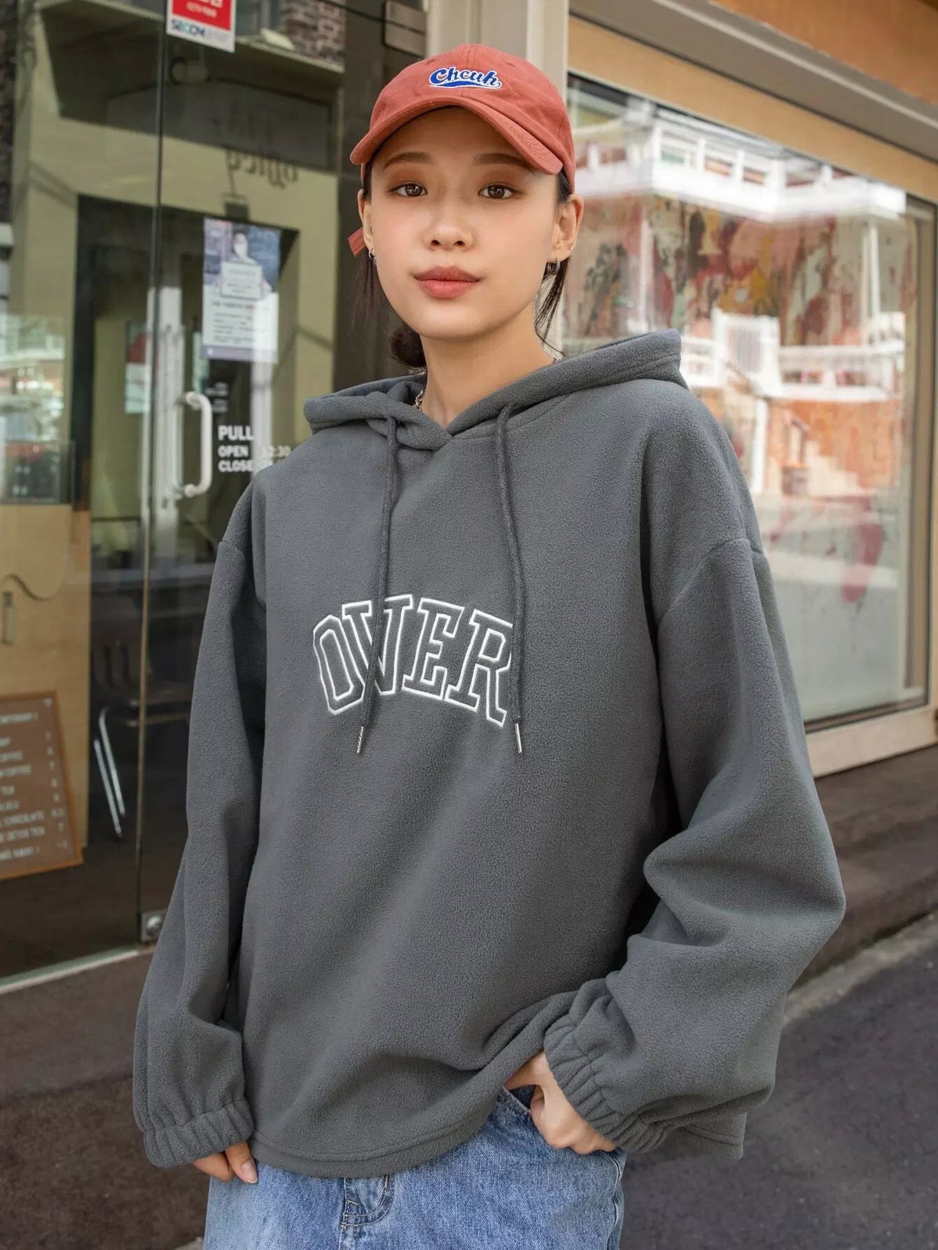 هودي صوف مطرز بحروف منسدلة على الكتف برباط منسدل