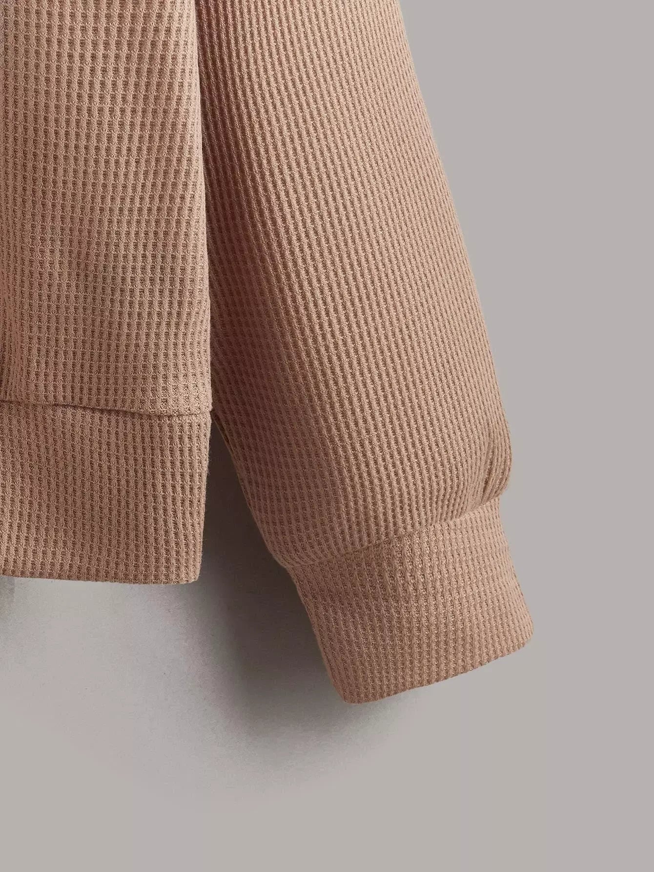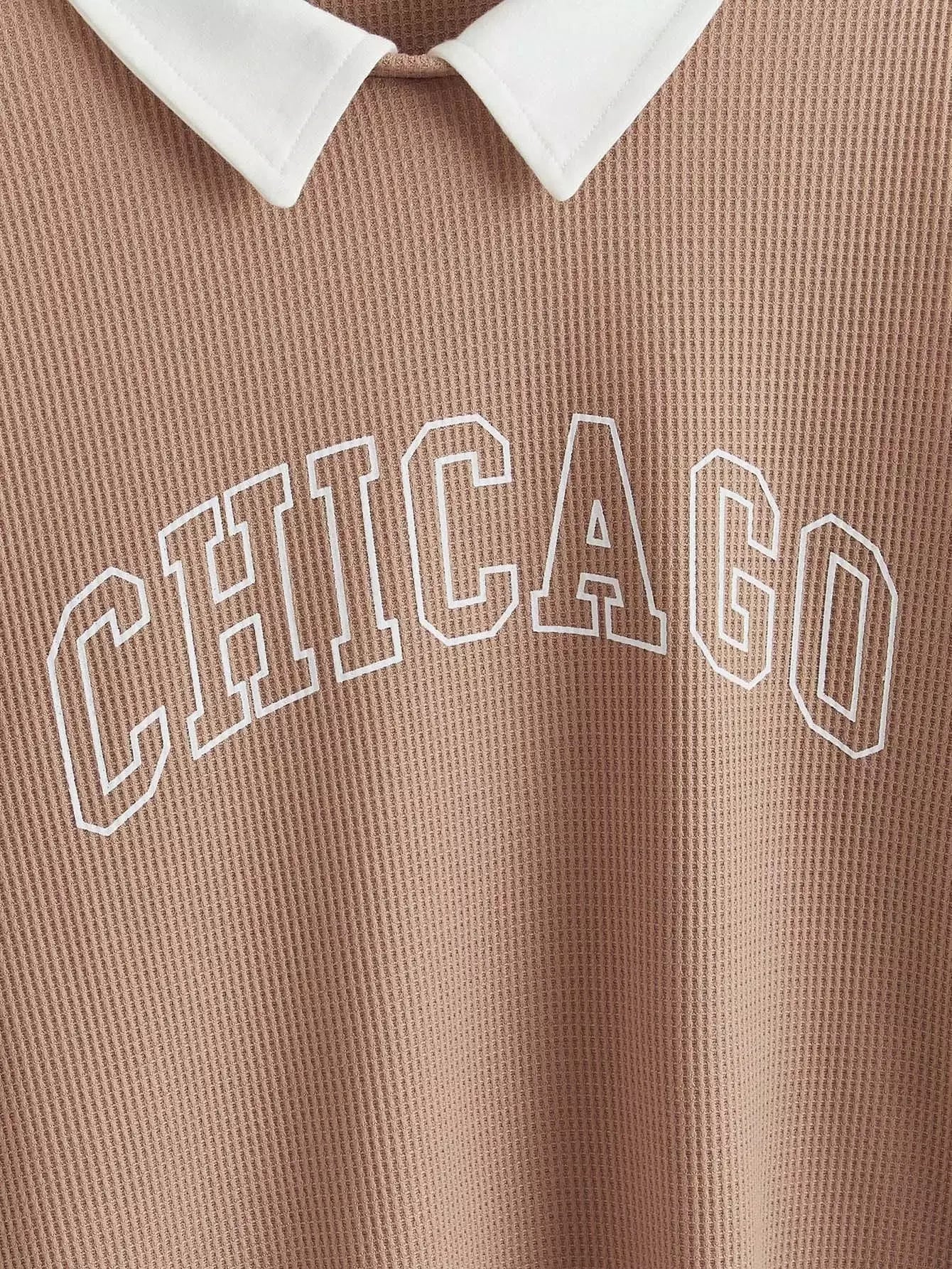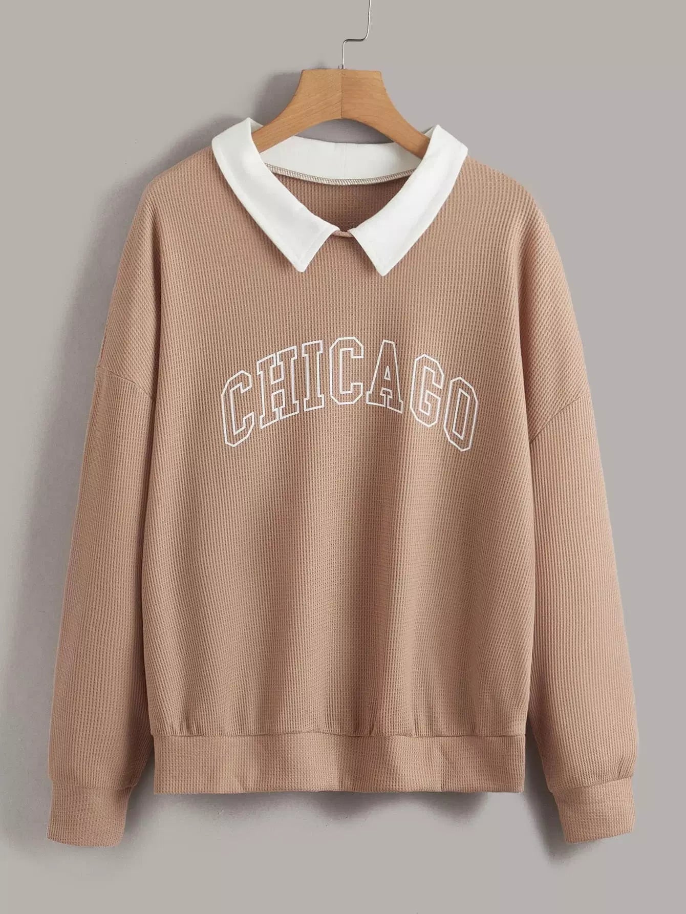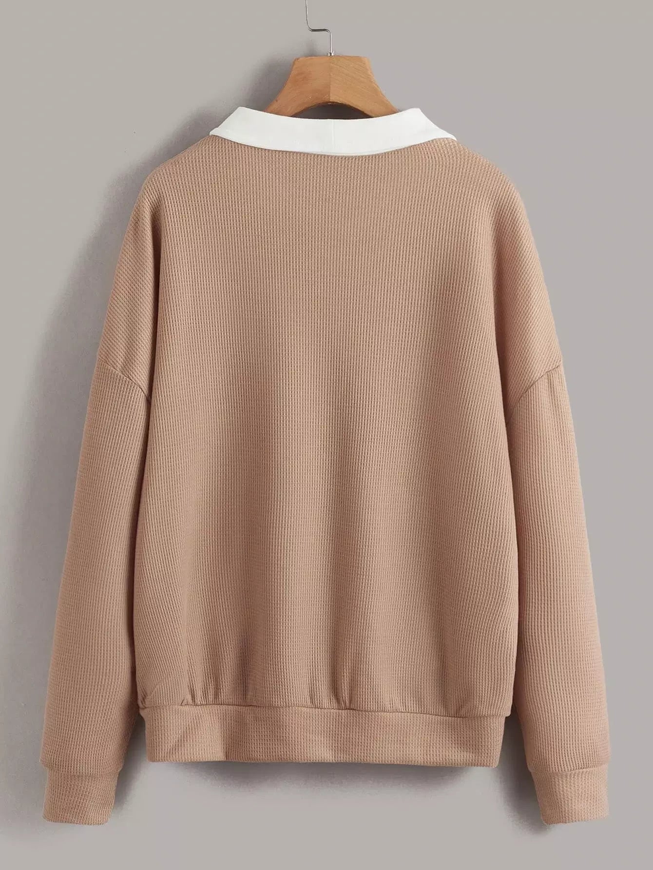 سويت شيرت بياقة منسدلة على الكتف برسمة حرف منسدل بياقة متباينة