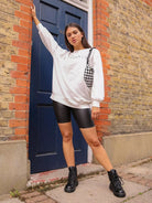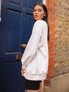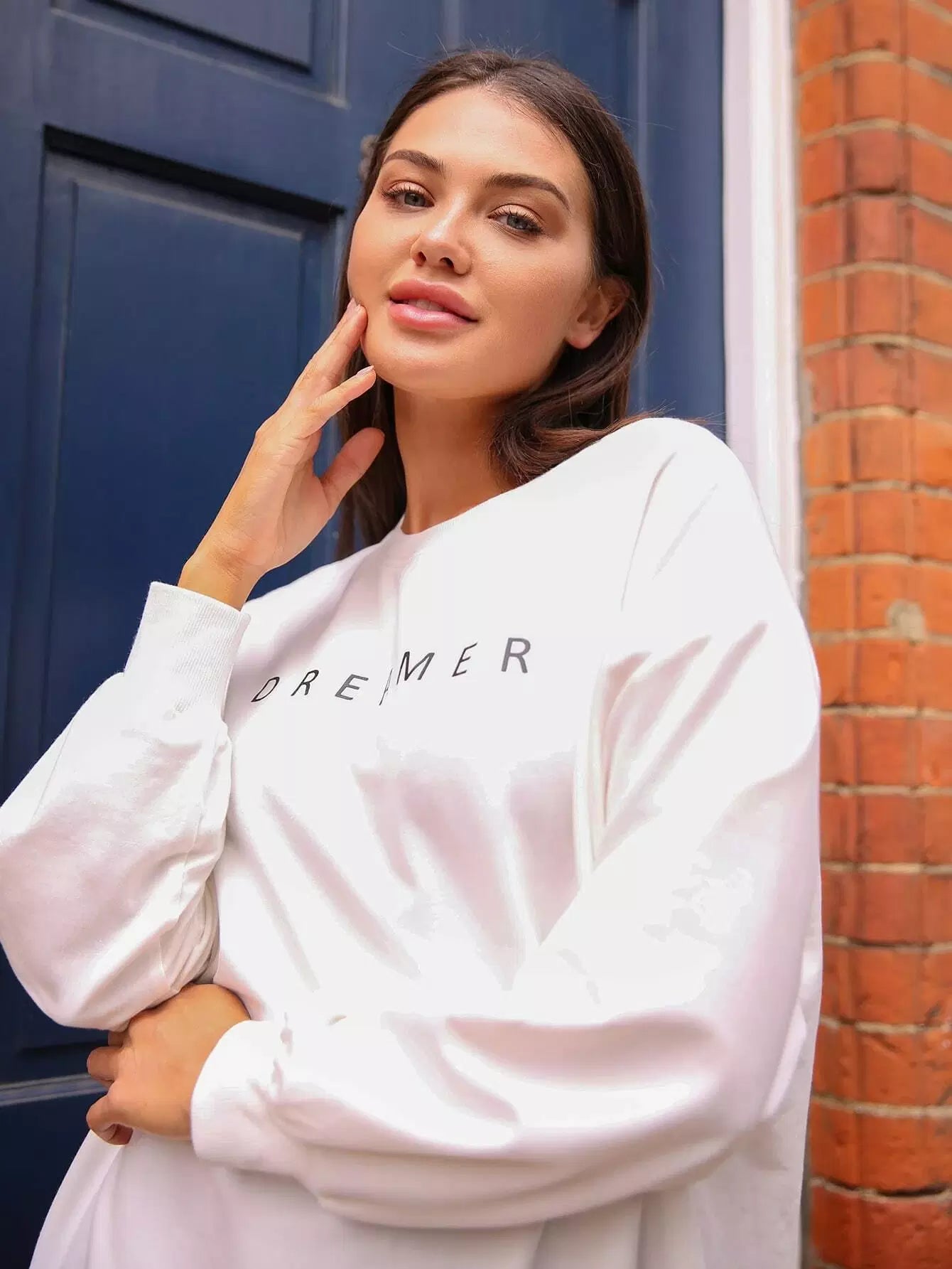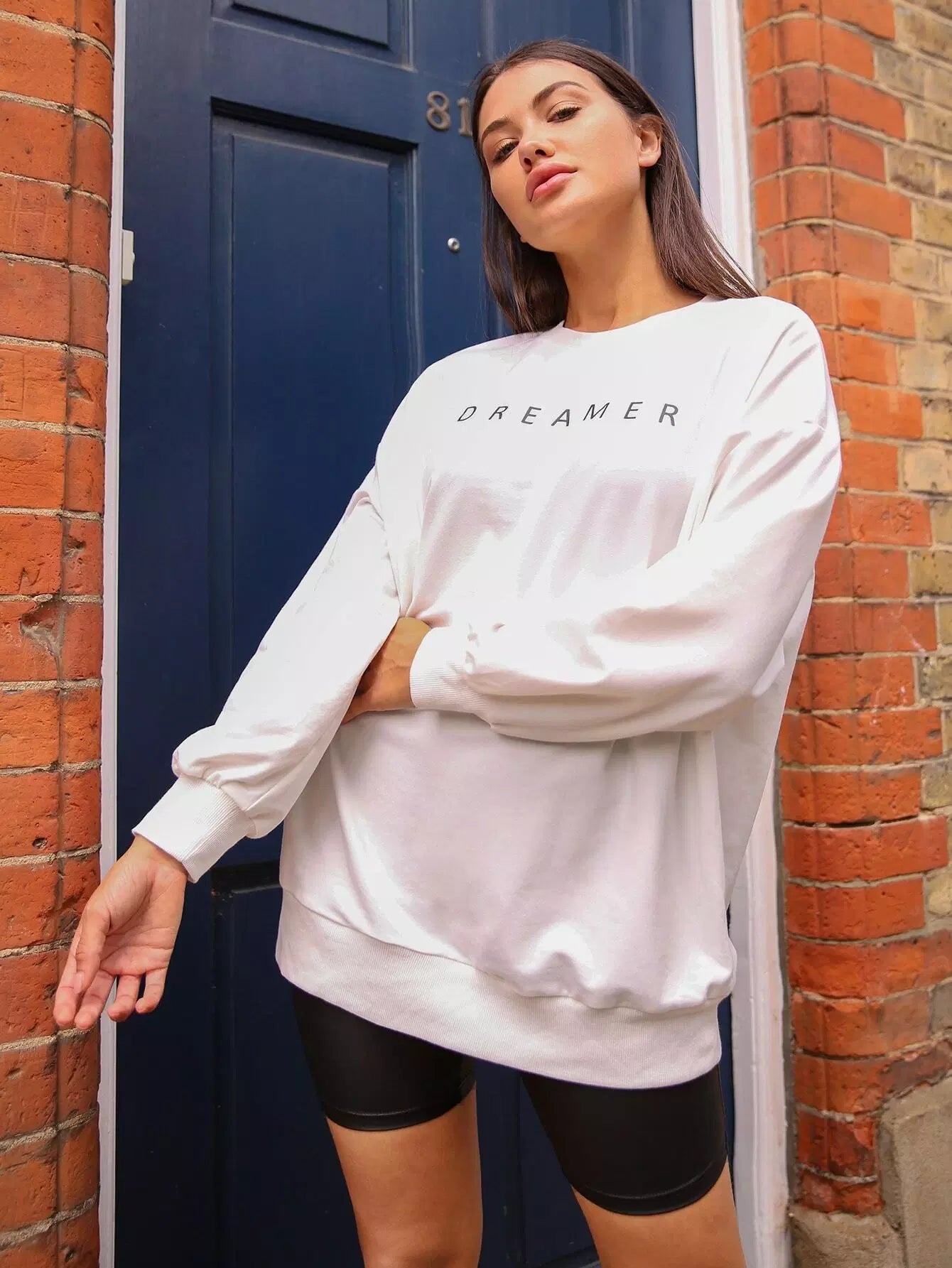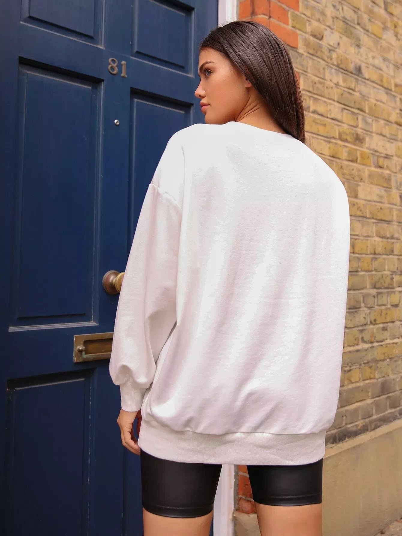 بلوفر كبير الحجم بكتف منسدل ورسومات أحرف