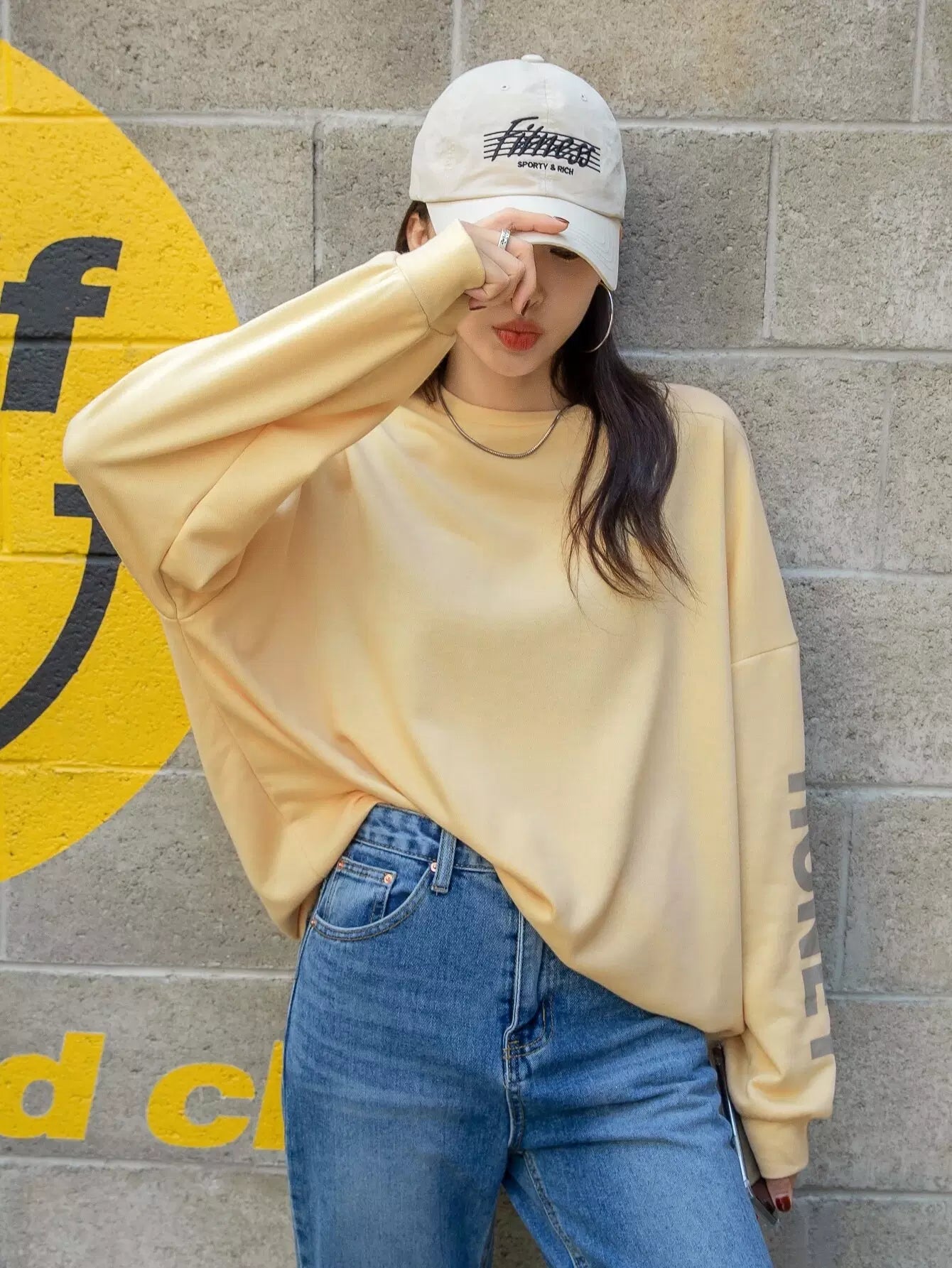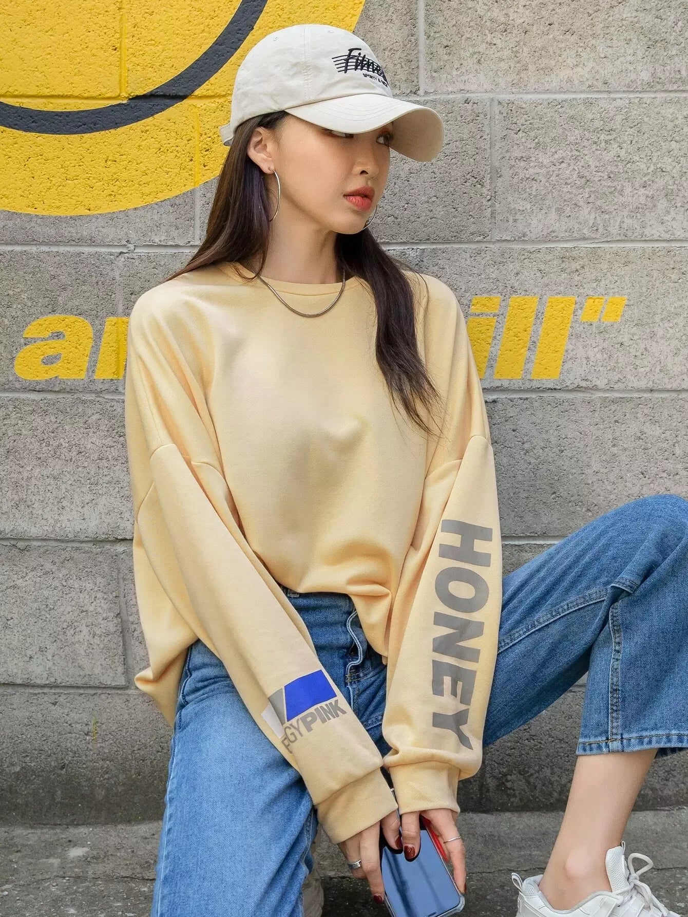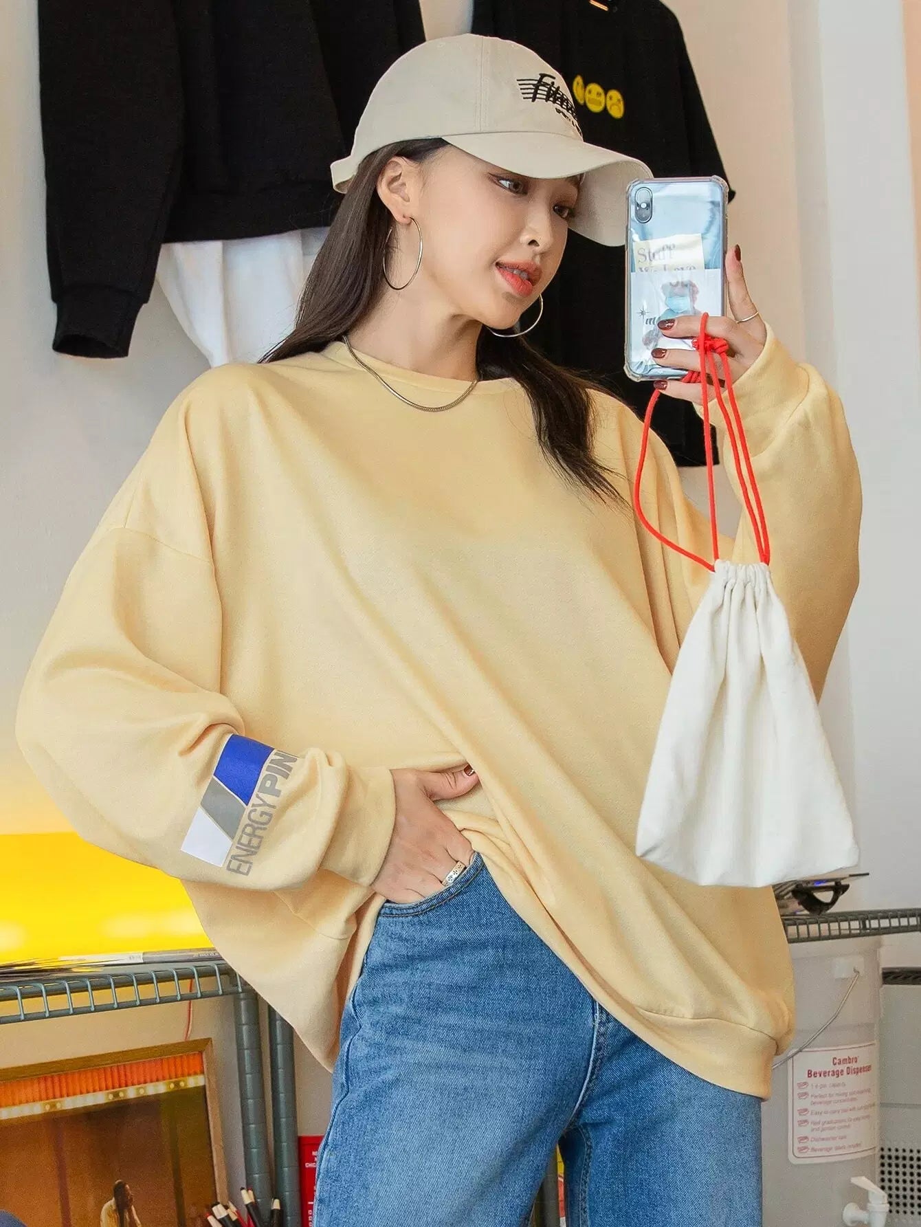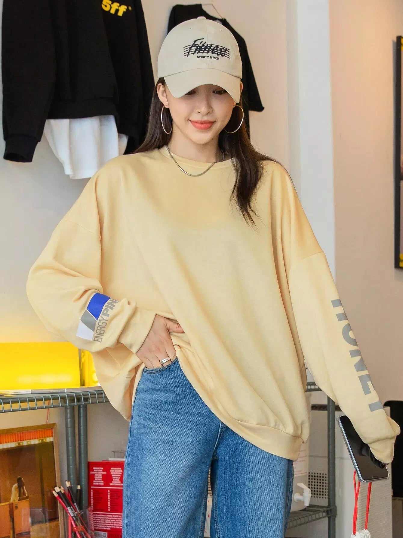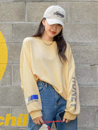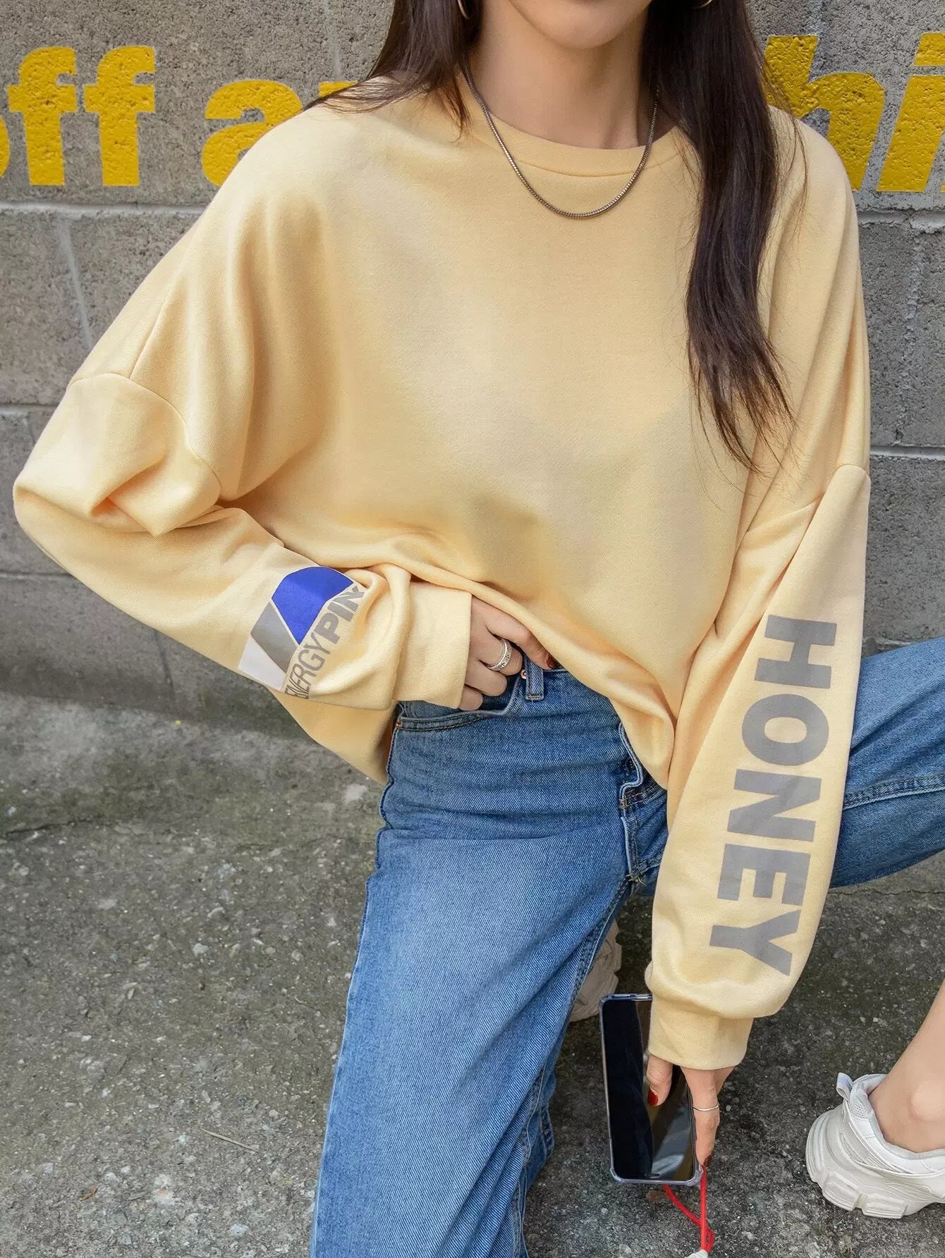 كنزة صوفية منسدلة الكتف برسومات على شكل حرف