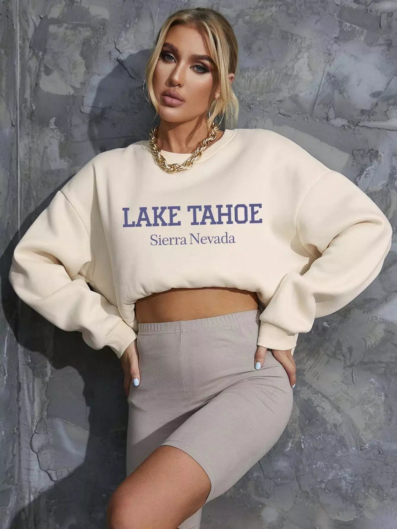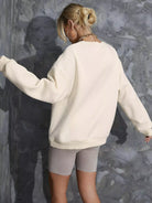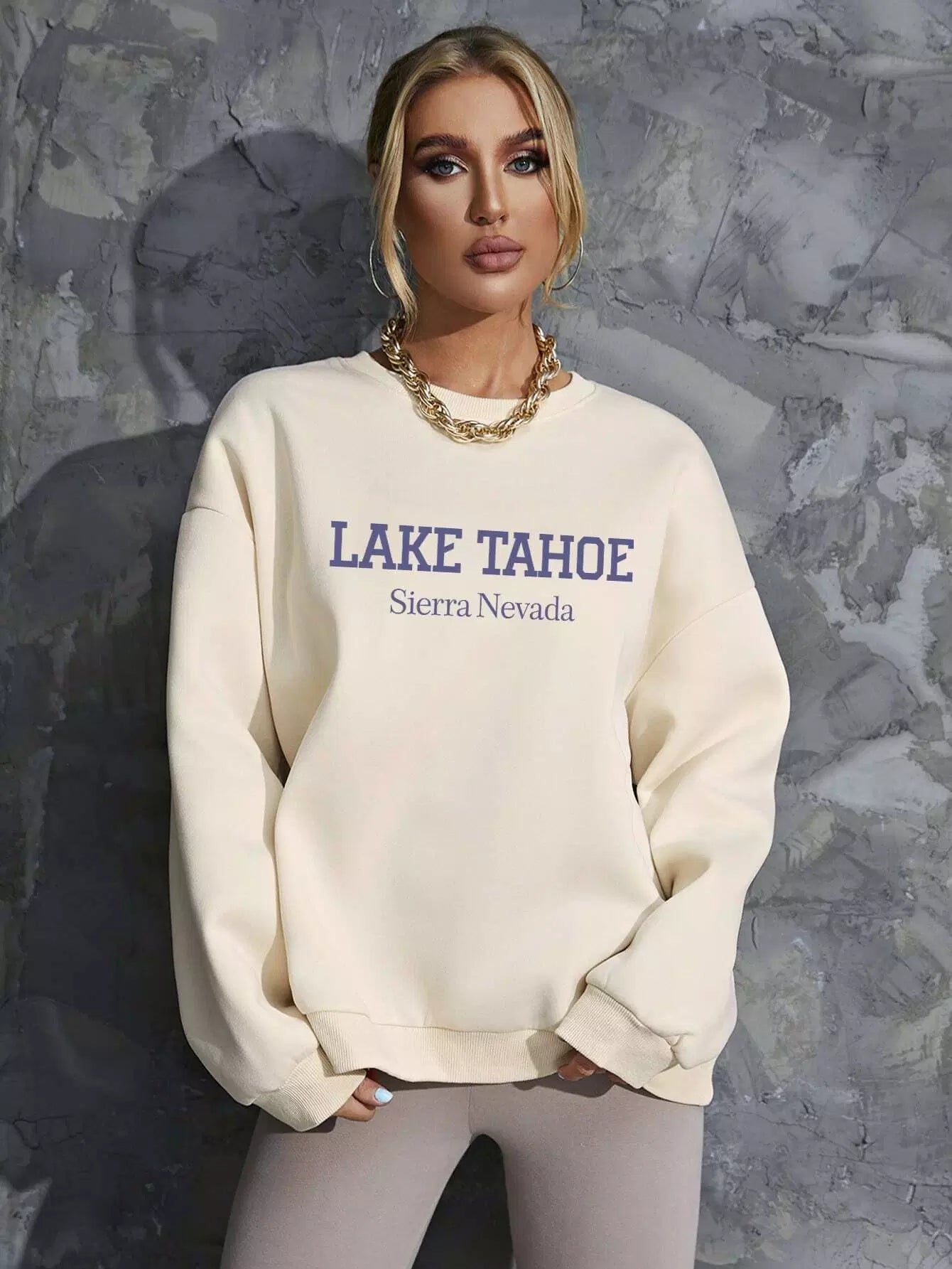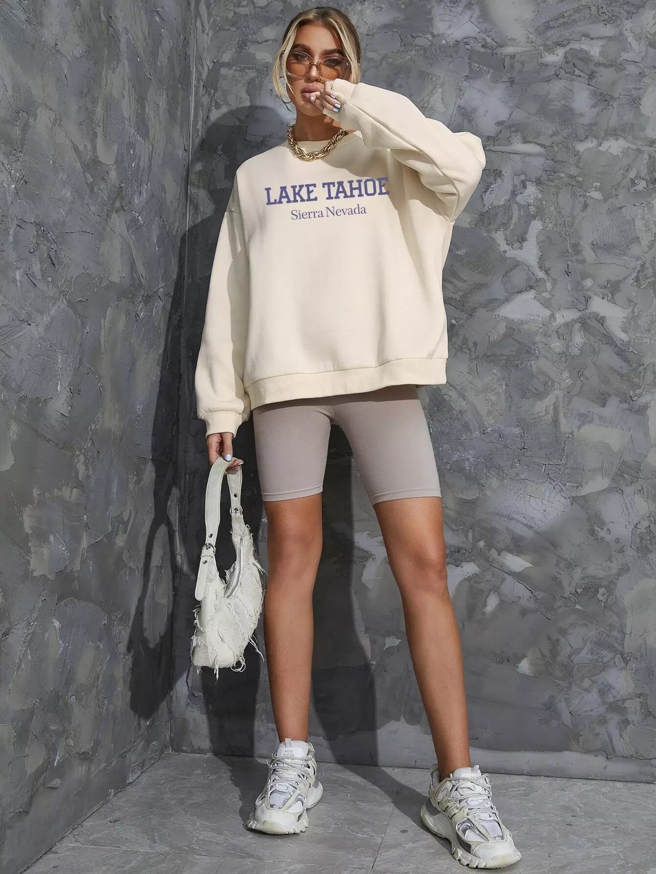 المرأة - بلوفر ذو كتف منسدل برسومات الحروف
