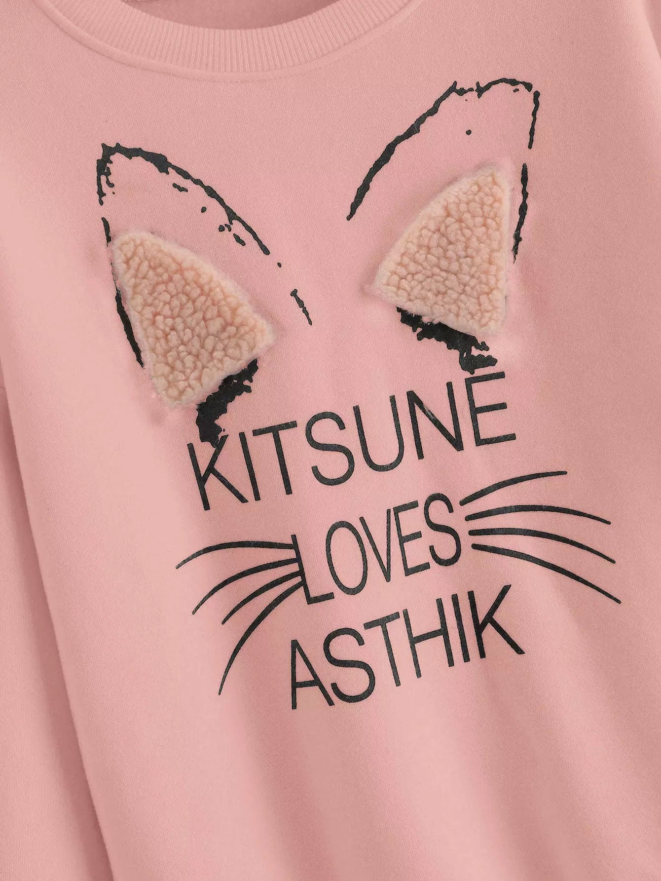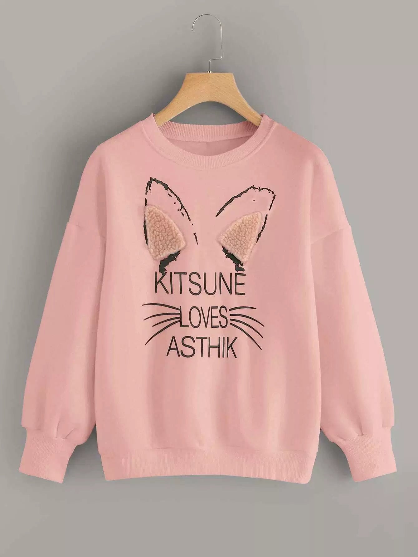 سويت شيرت ذو أكتاف منسدلة برسومات على شكل حرف