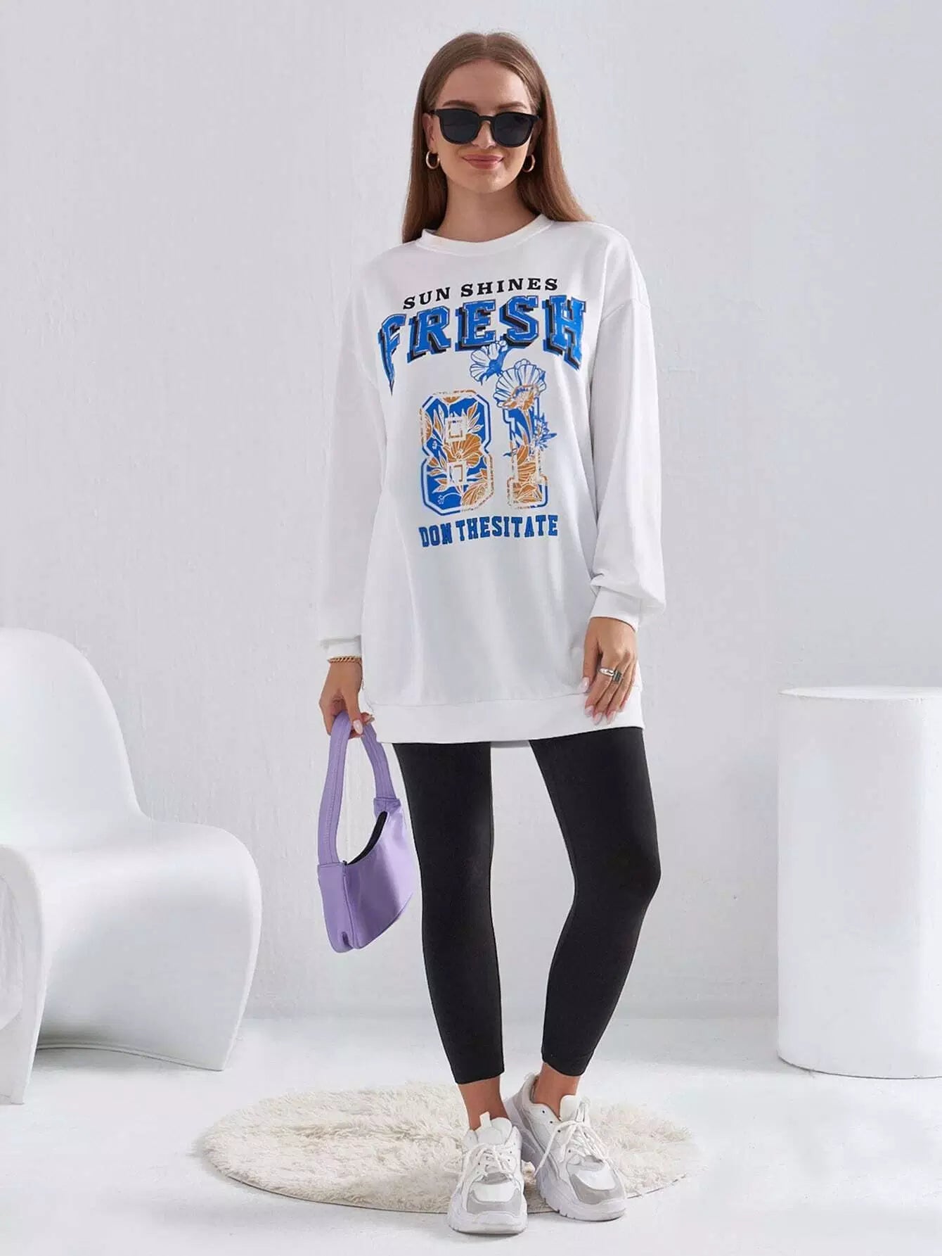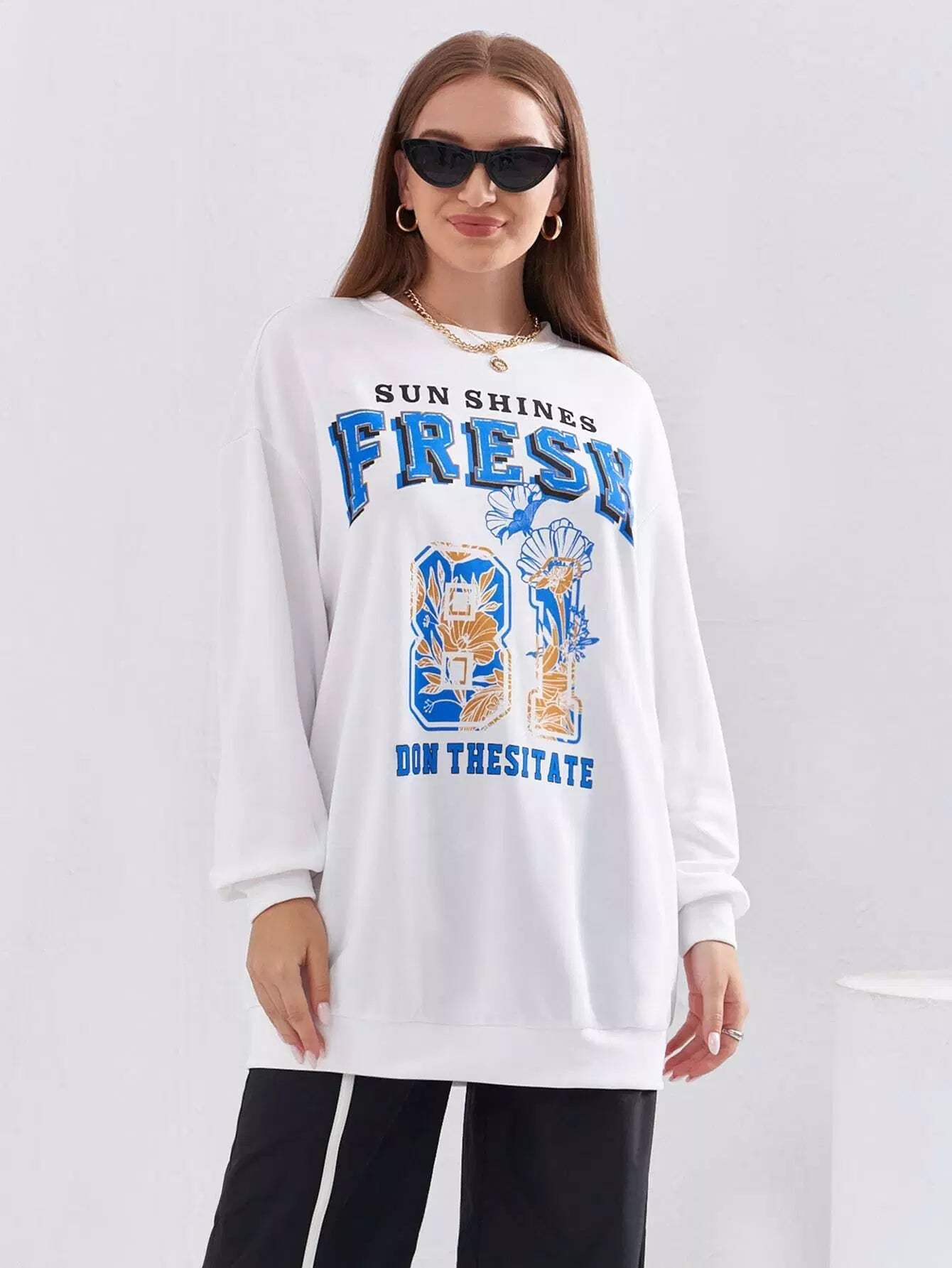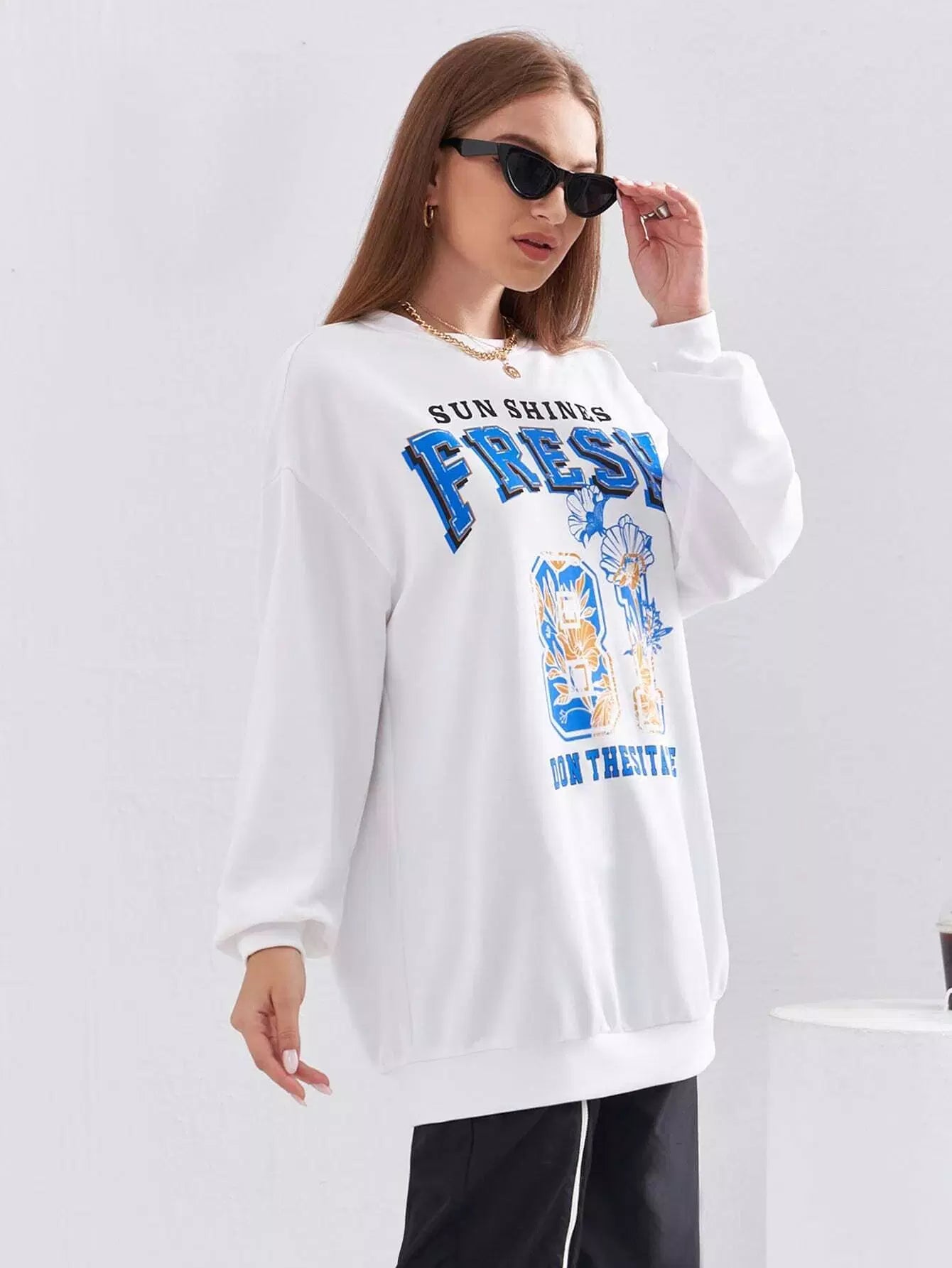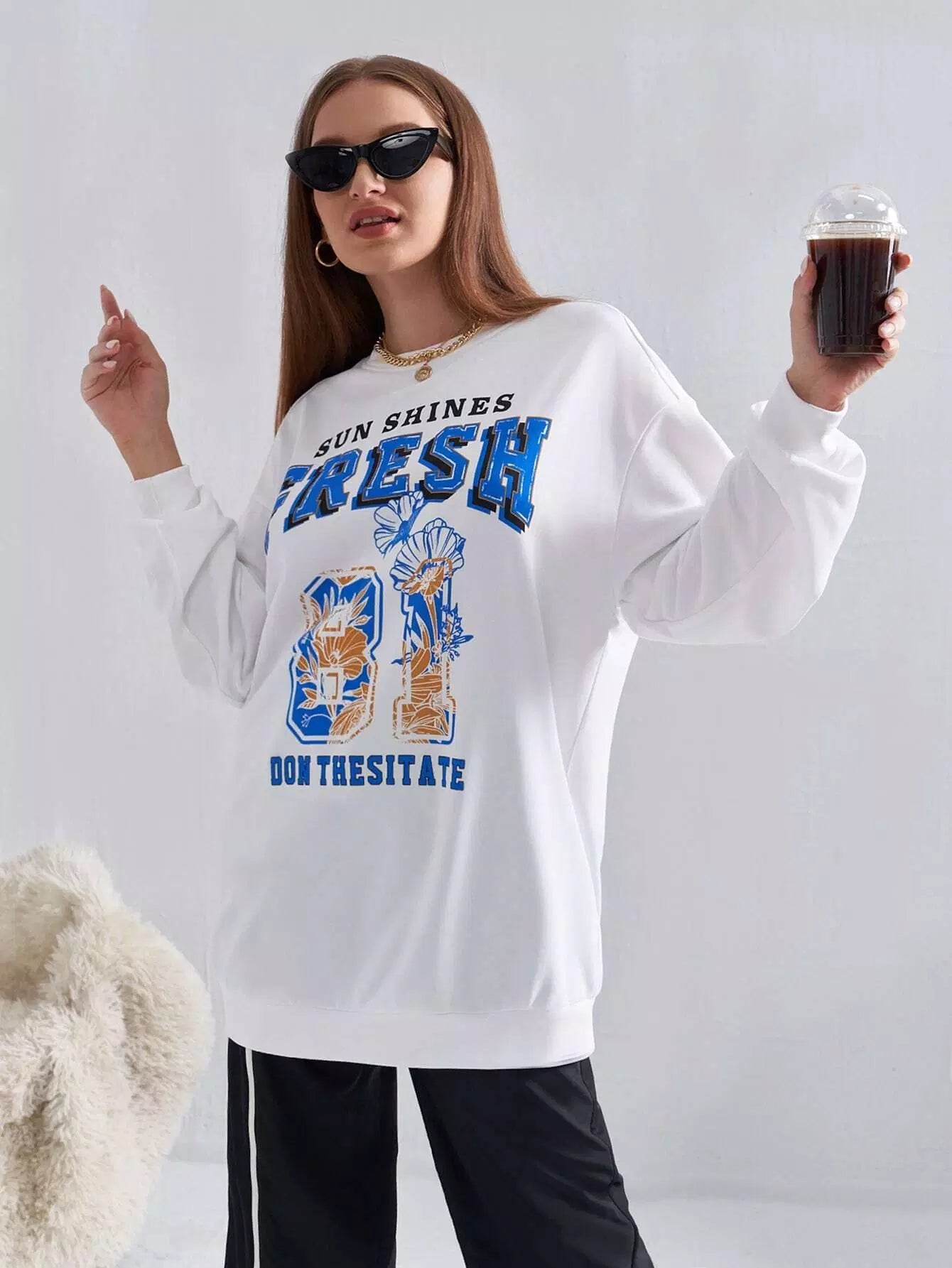 سويت شيرت ذو أكتاف منسدلة برسومات على شكل حرف