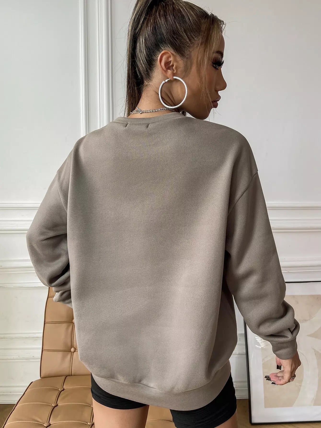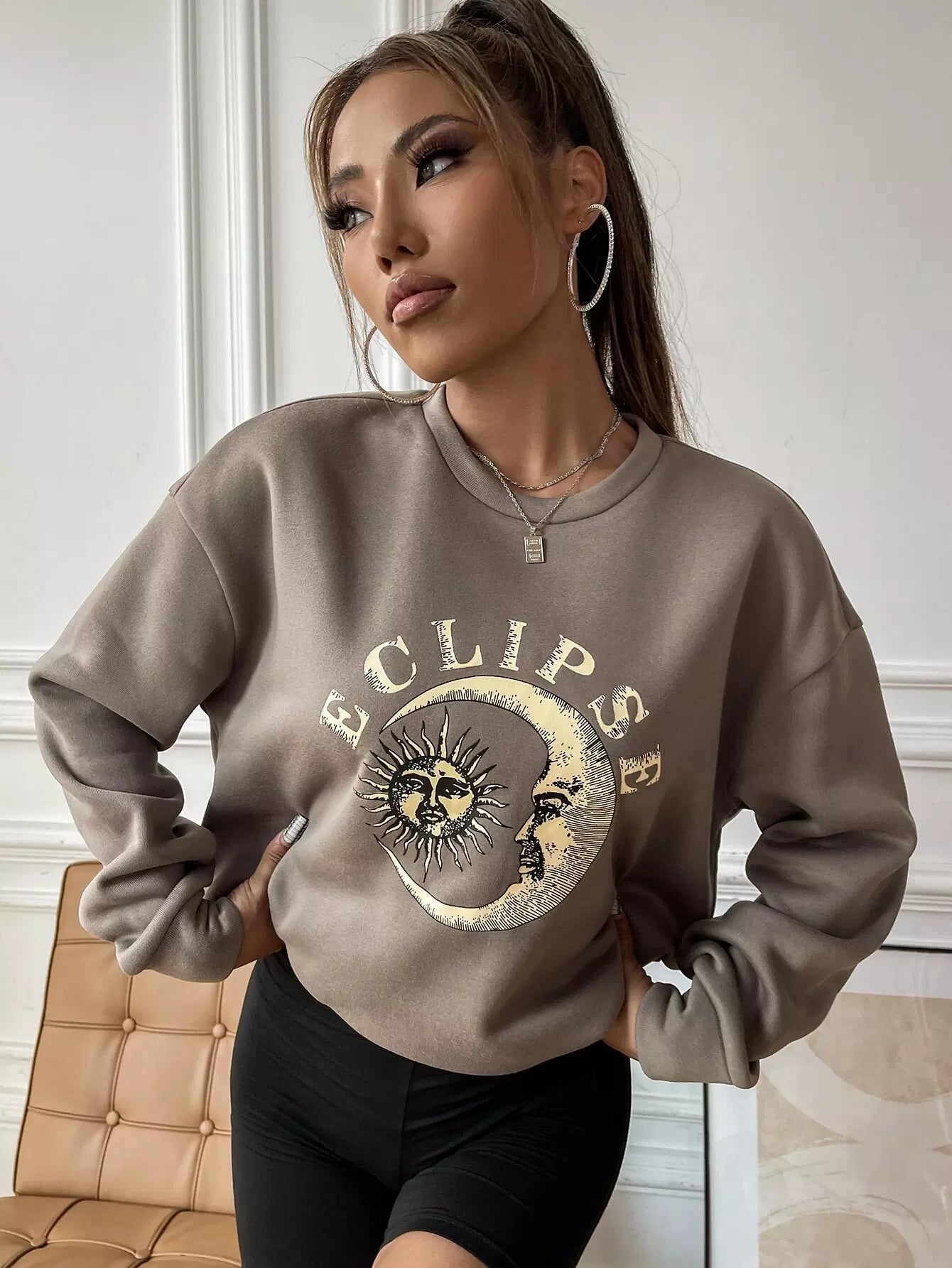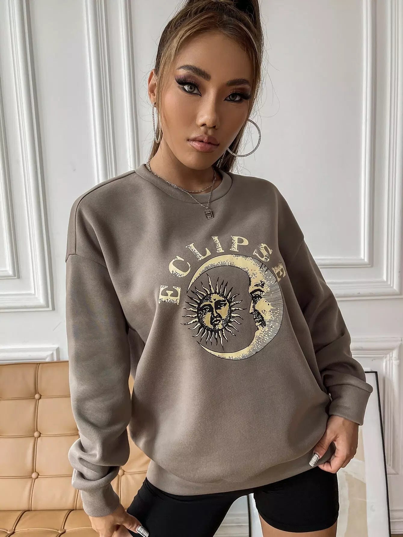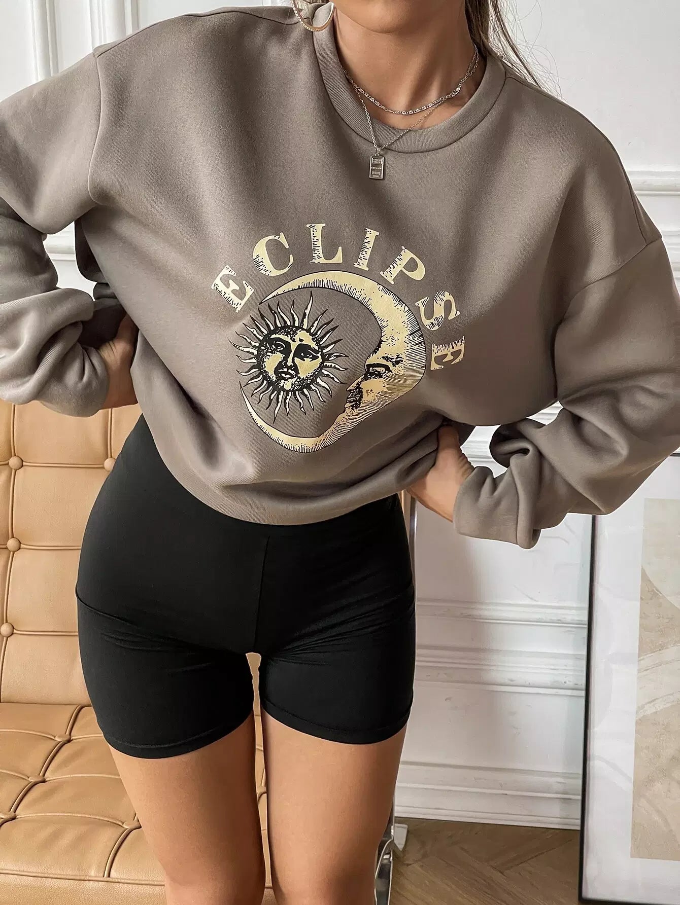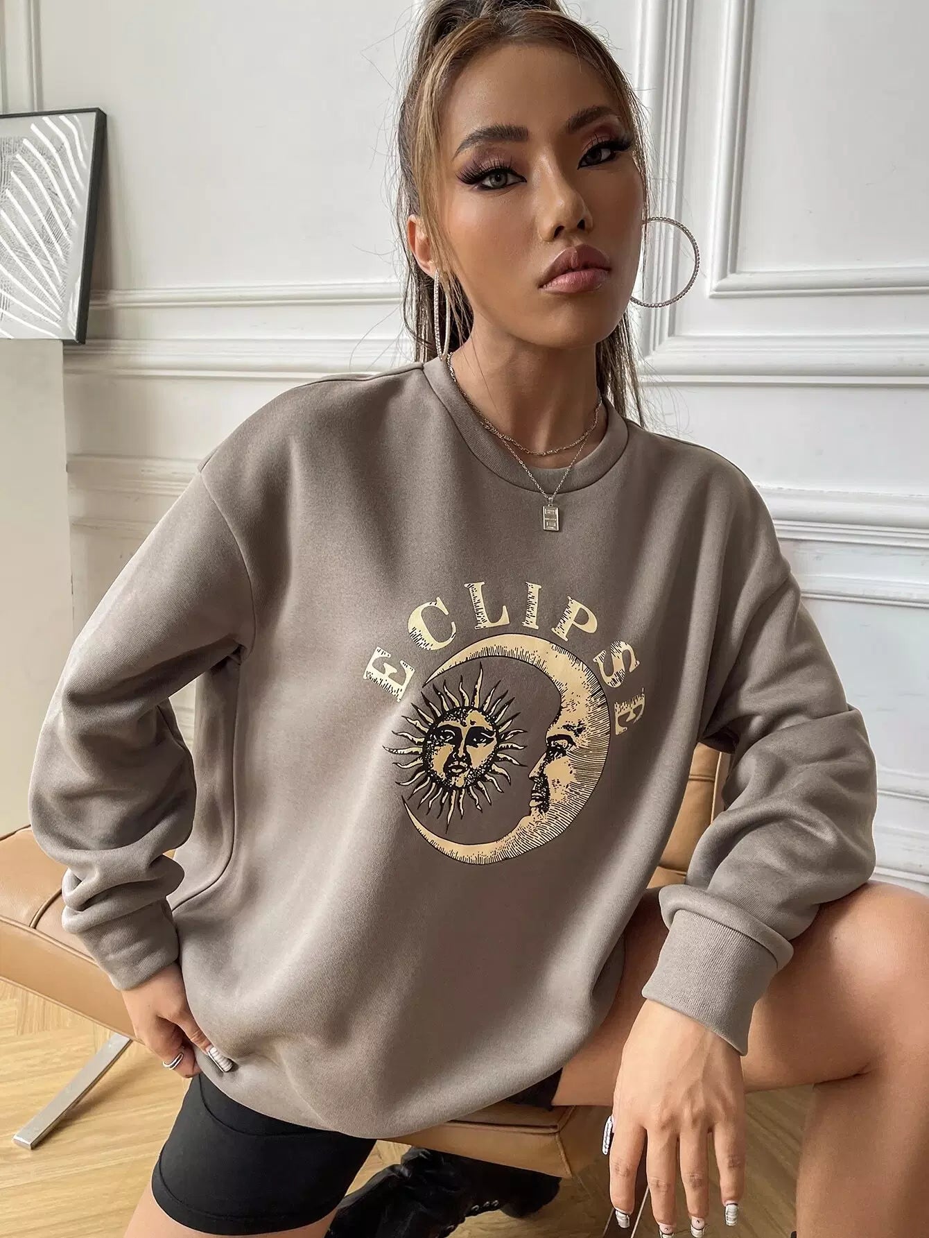 سويت شيرت ذو أكتاف منسدلة برسومات على شكل حرف