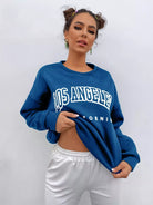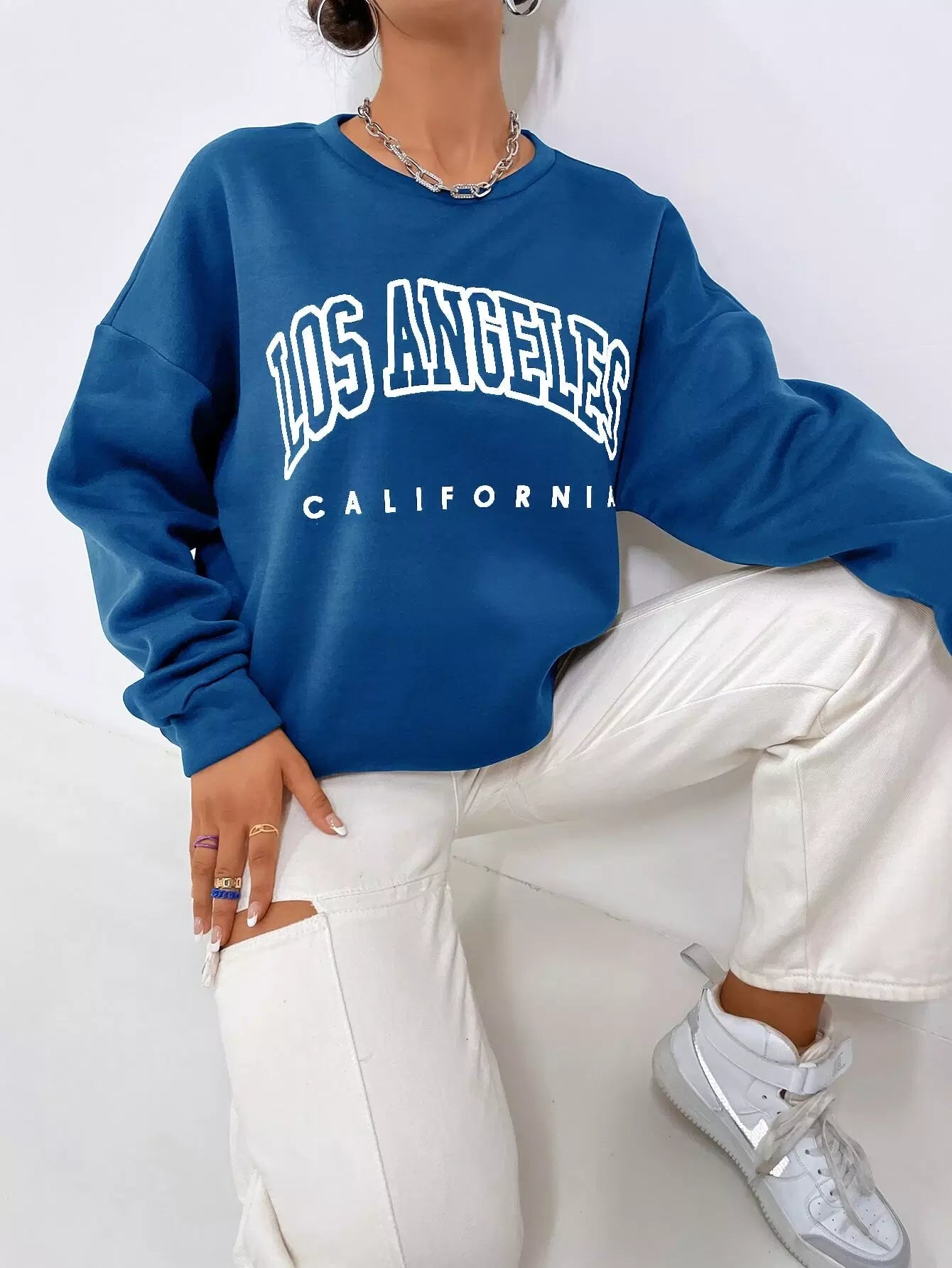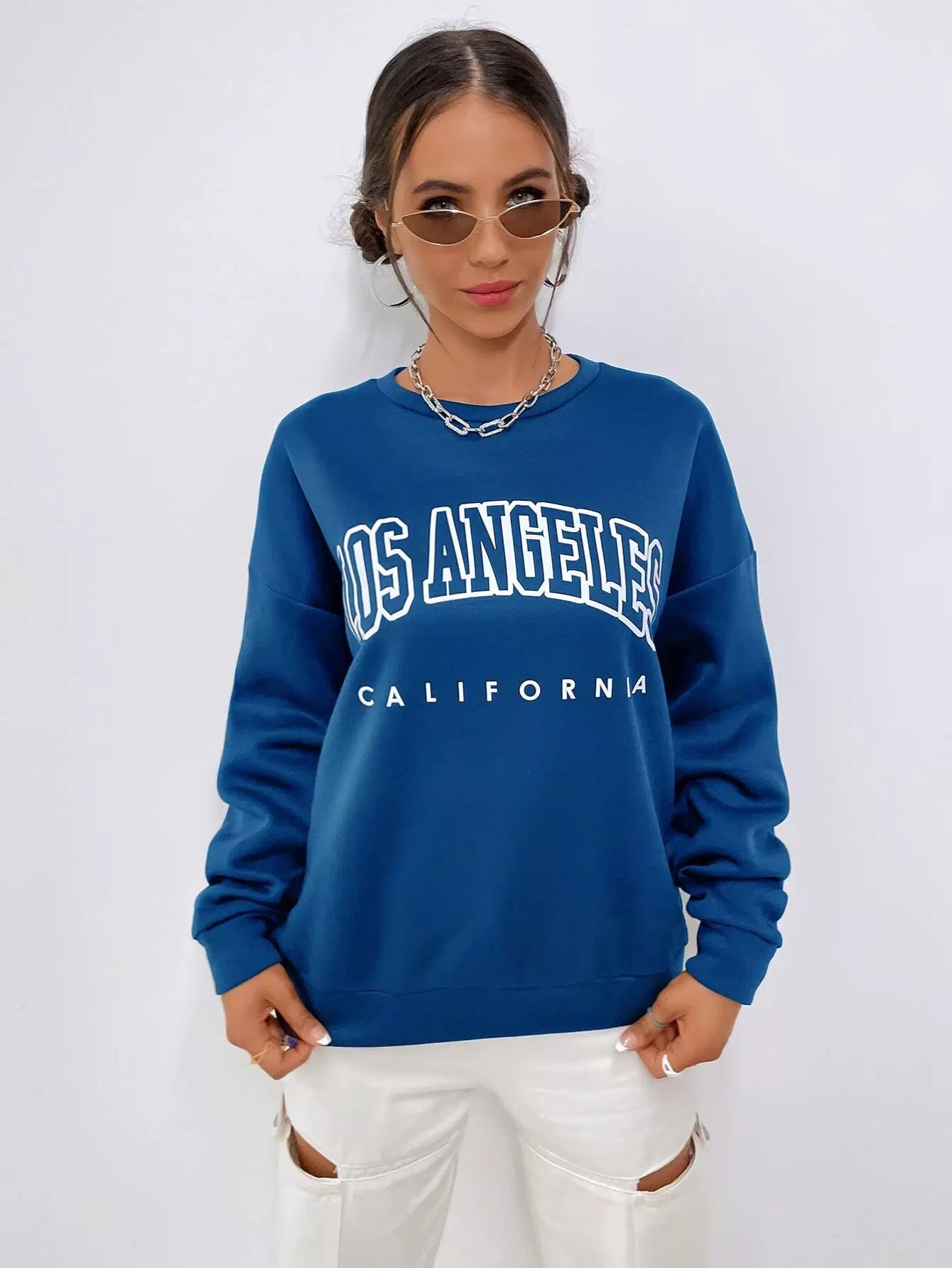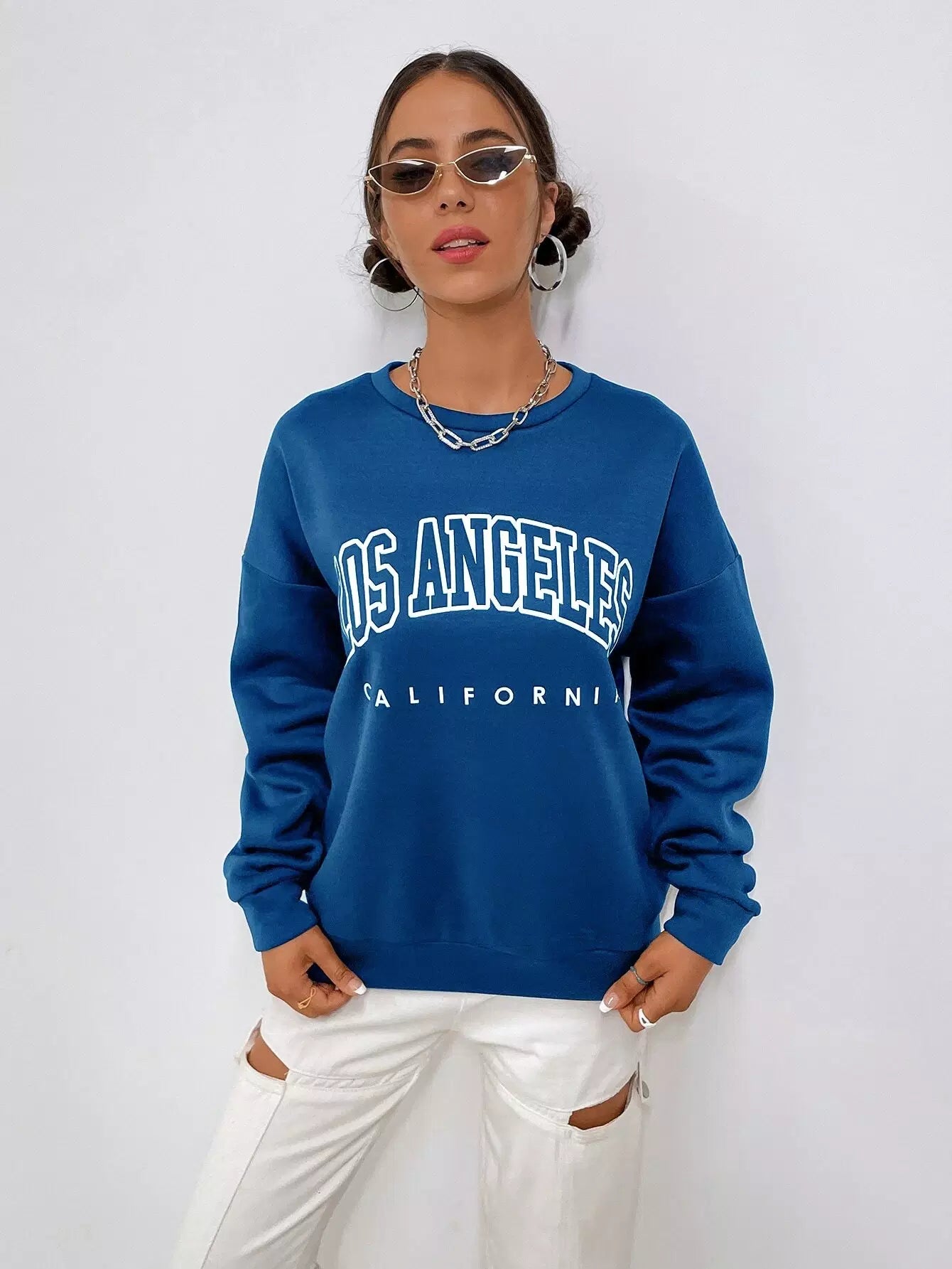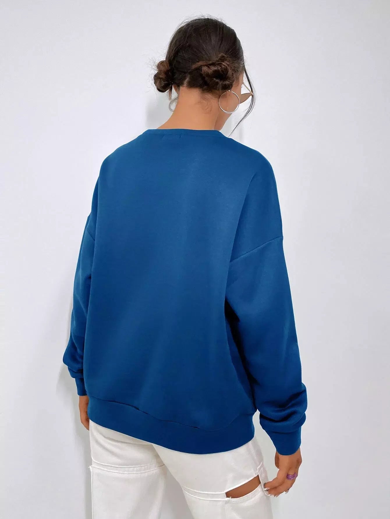 سويت شيرت ذو أكتاف منسدلة برسومات على شكل حرف