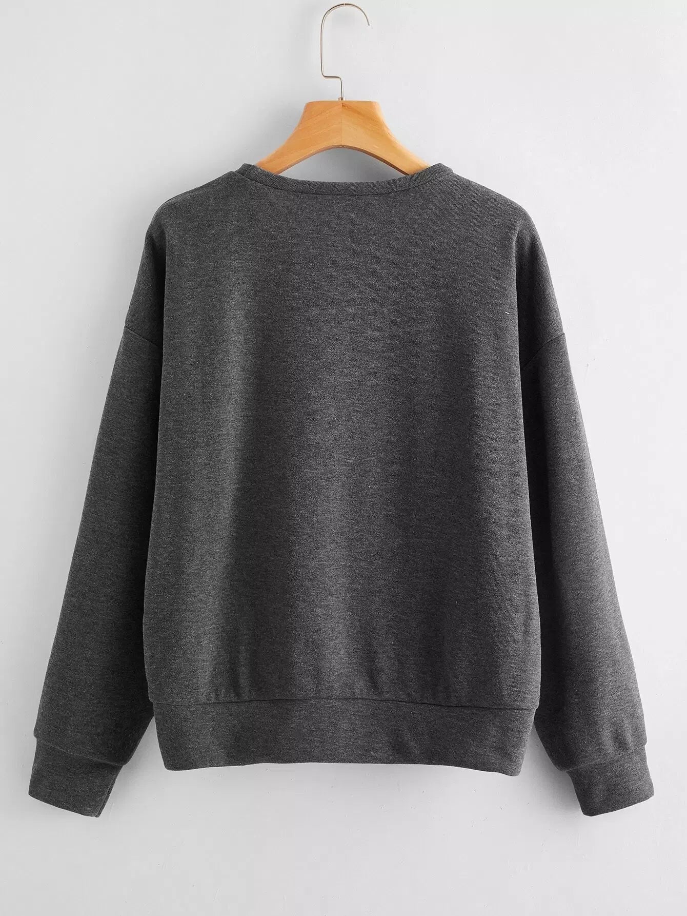 سويت شيرت ذو أكتاف منسدلة برسومات على شكل حرف