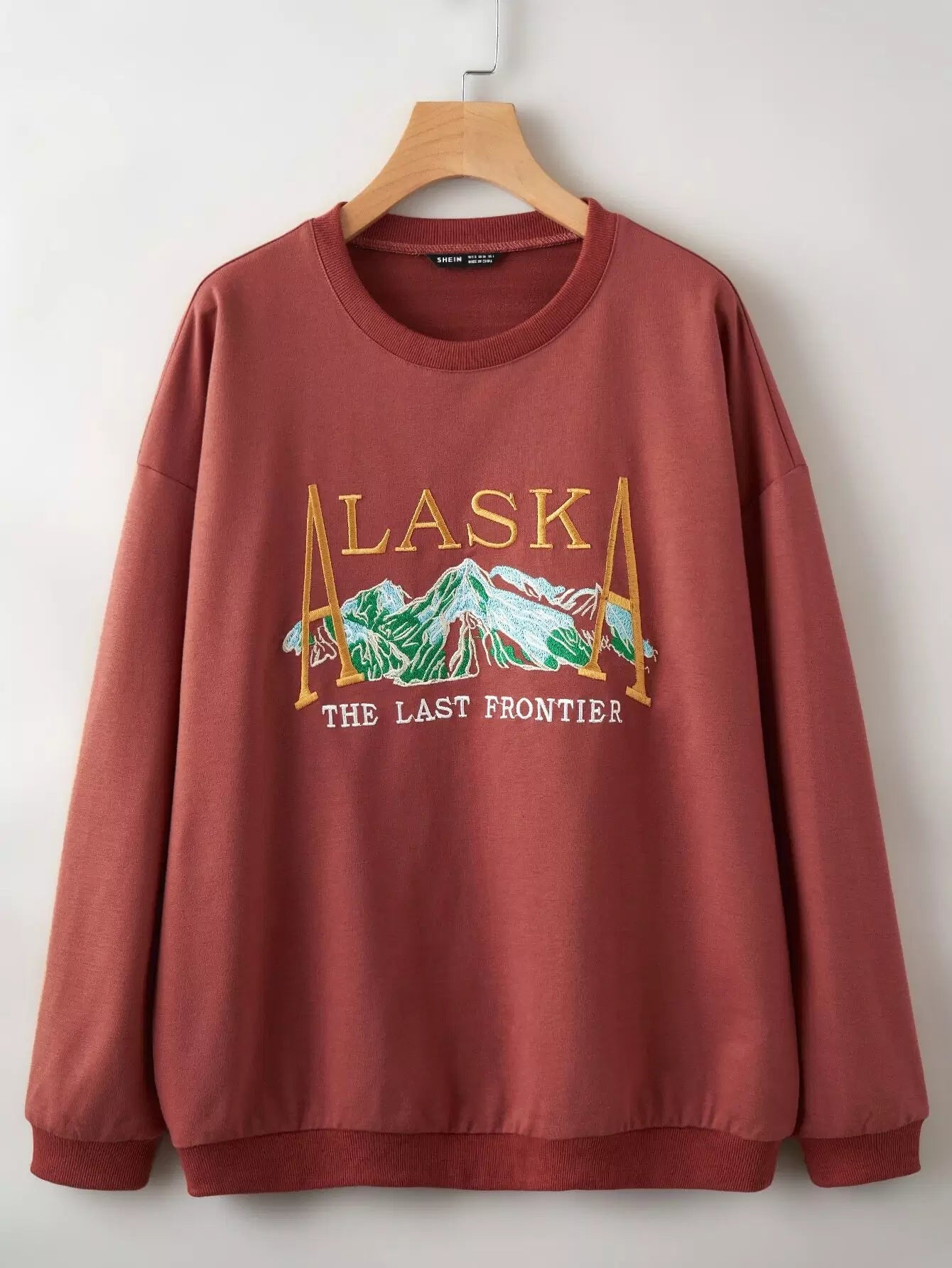 للنساء - سويت شيرت مطرز بأكتاف منسدلة وأحرف ورسومات