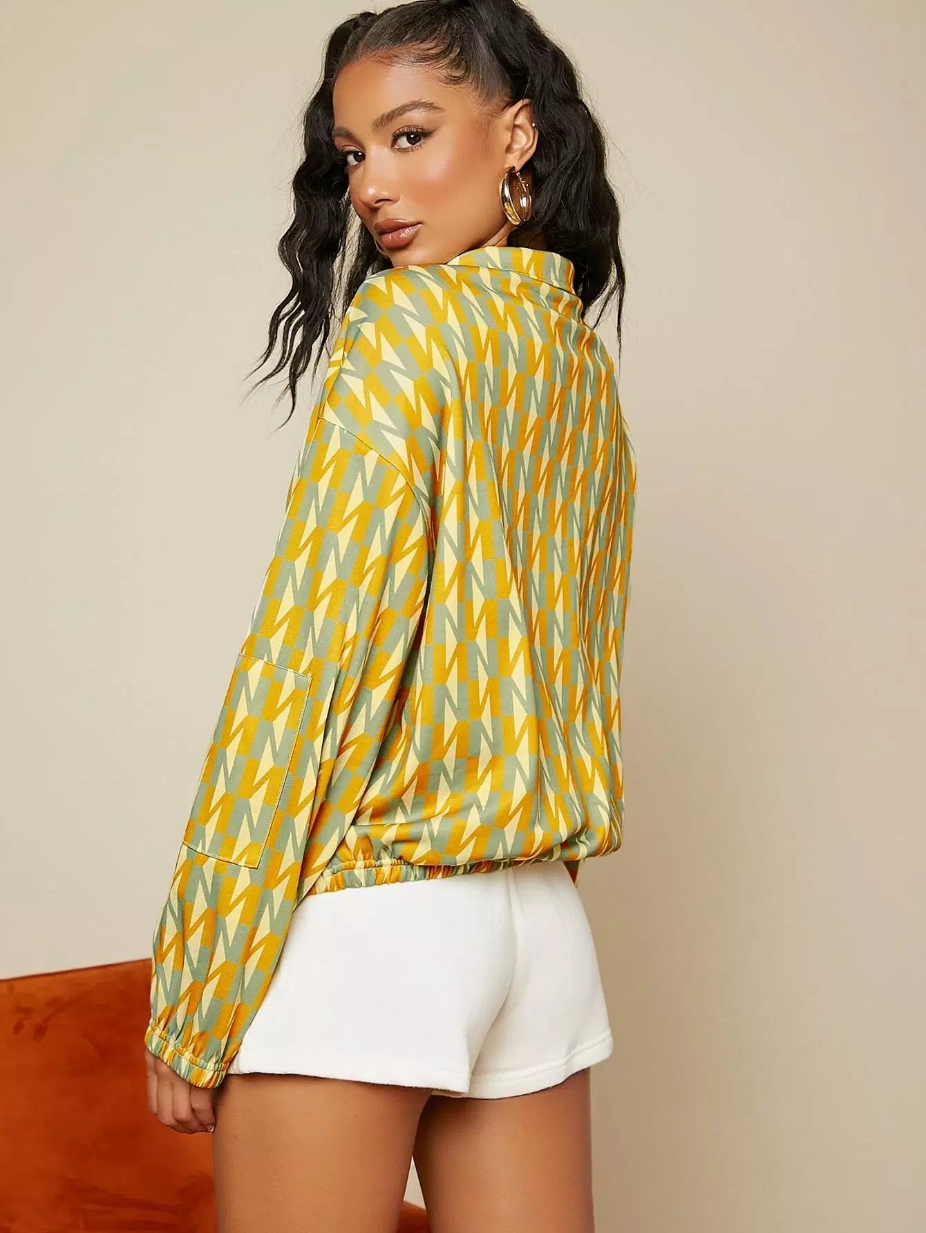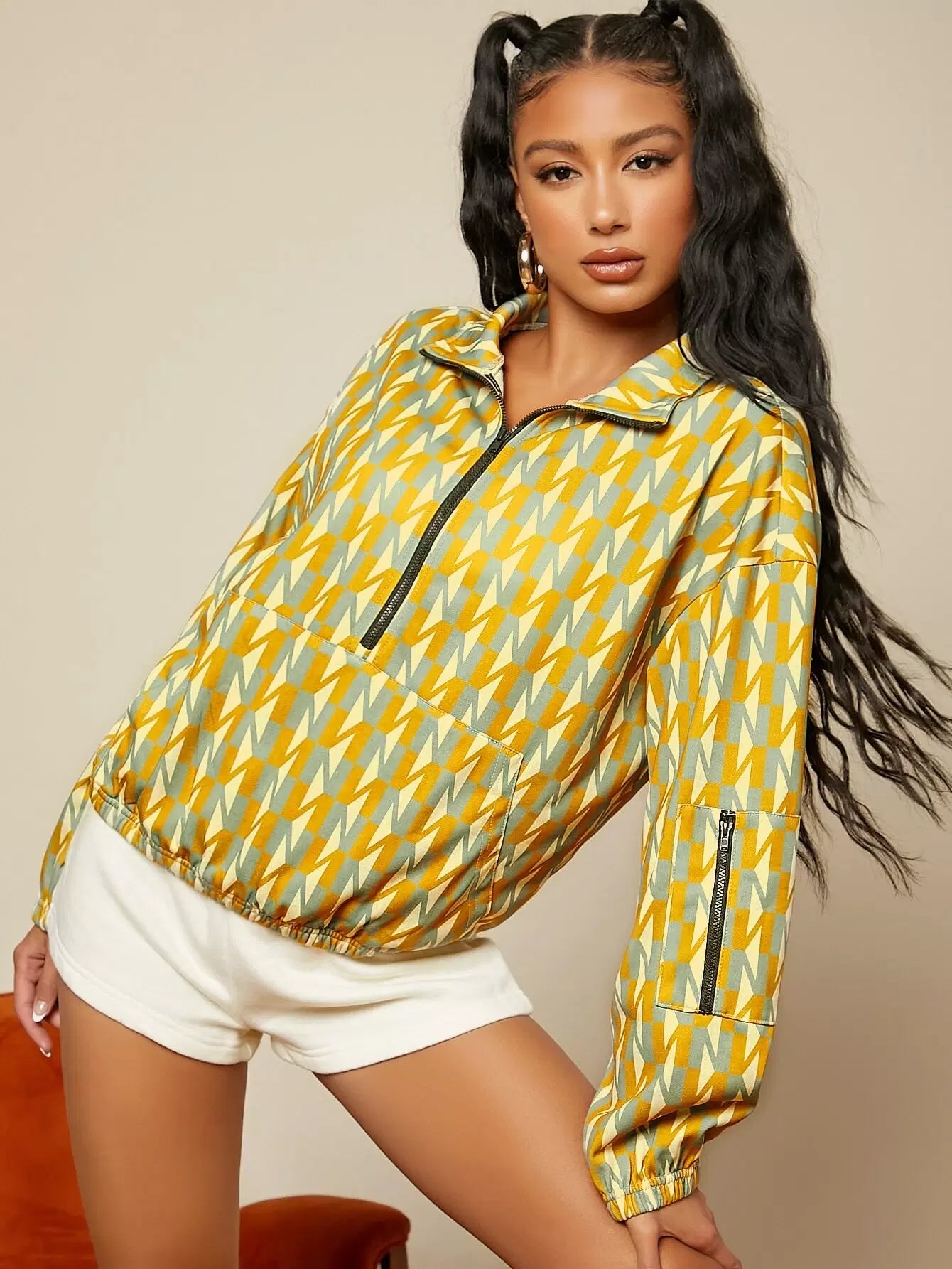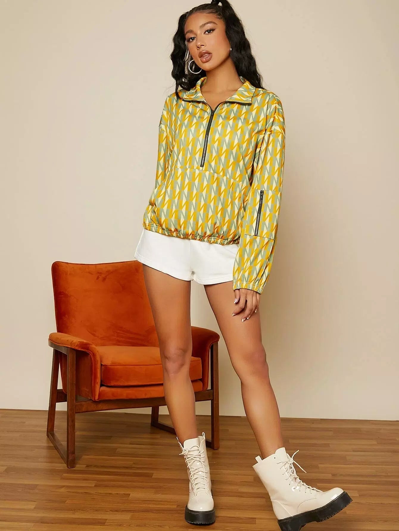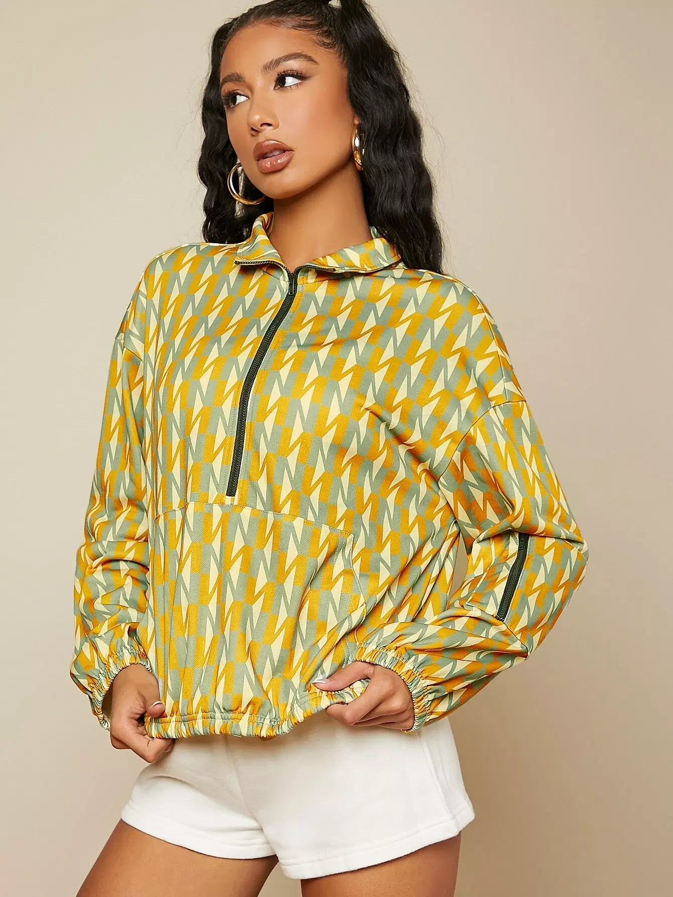 سويت شيرت بنصف رسمة حرفية بسحاب منسدل على الكتف