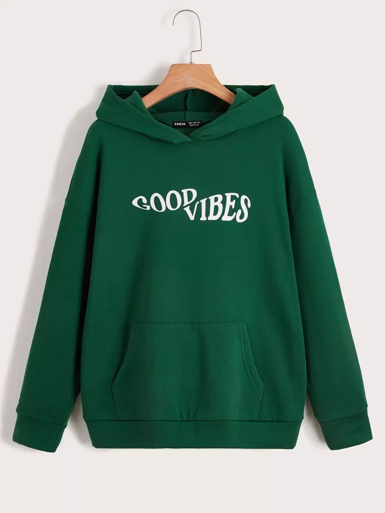 هودي بقبعة بجيب كنغر برسومات حروف الكنغر