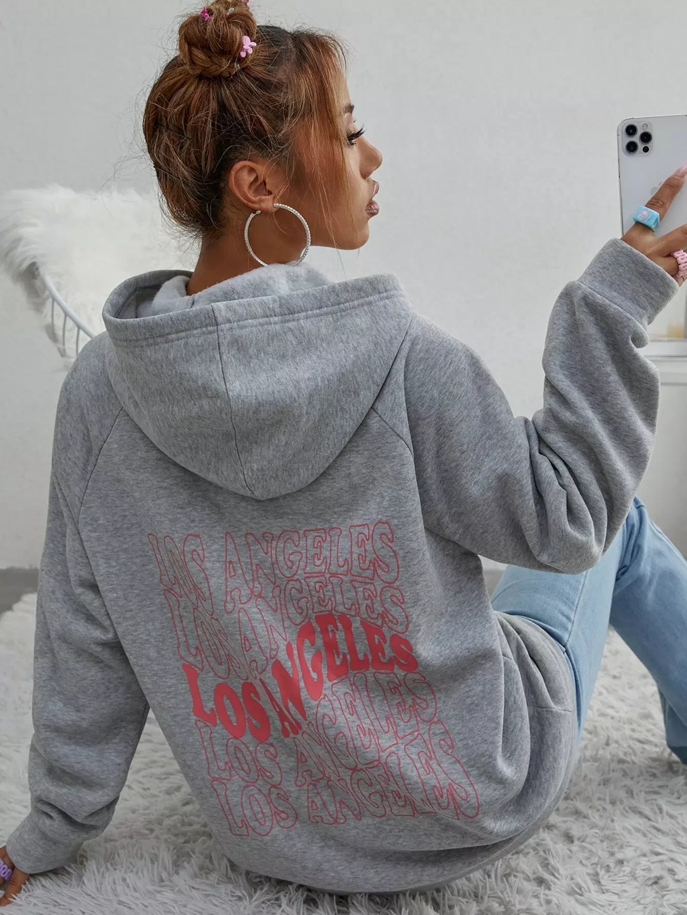 هودي حراري بأكمام راجلان بأحرف ورسومات