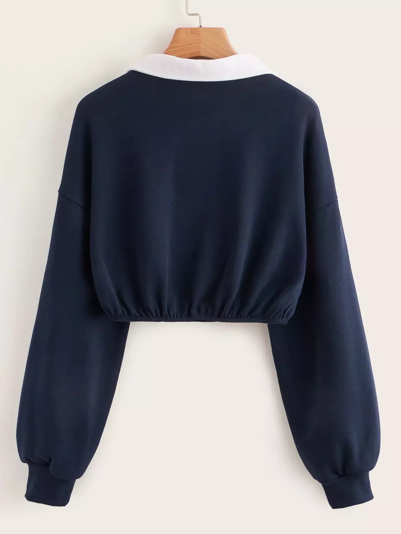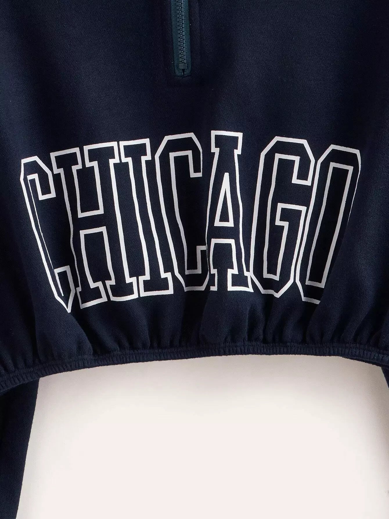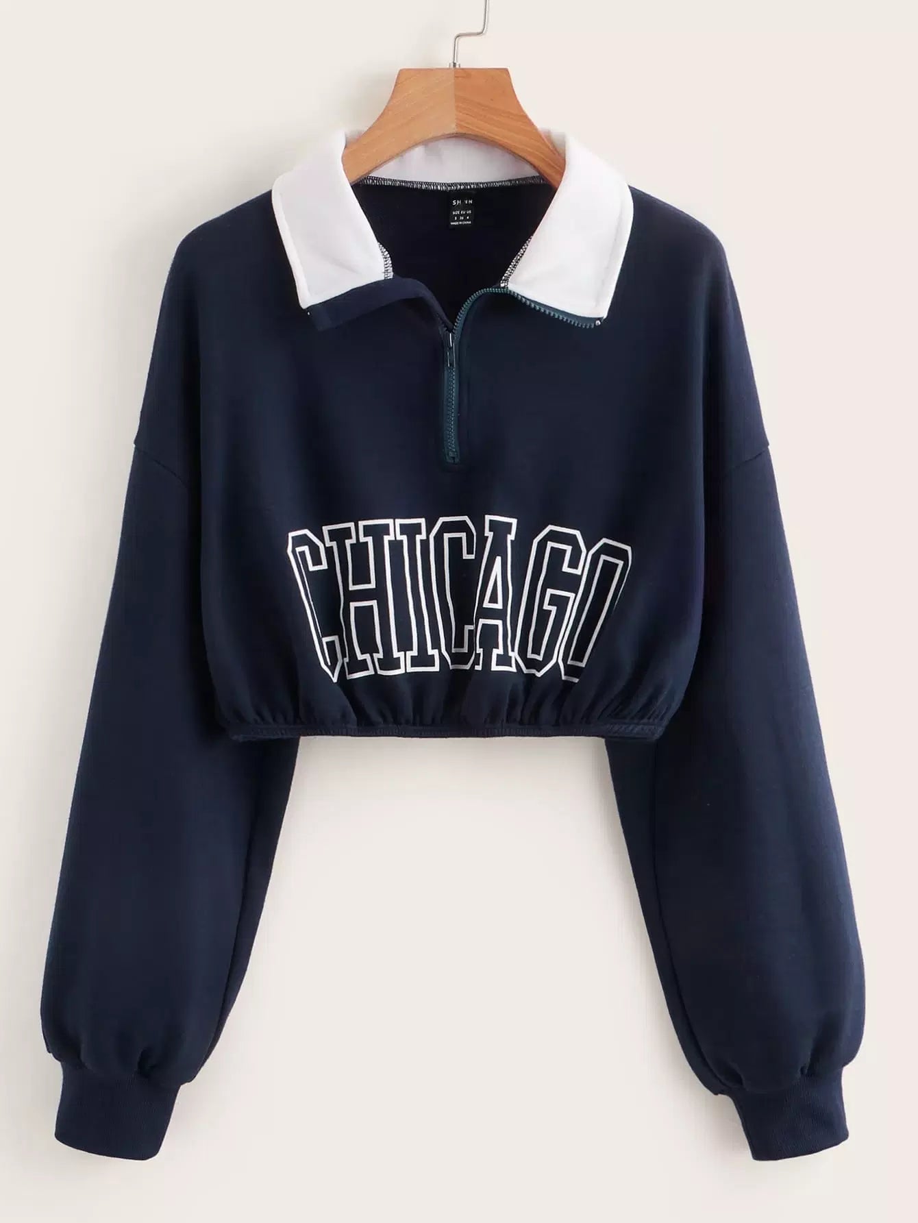 سويت شيرت برسومات حرفية بسحّاب أمامي قصير بسحّاب
