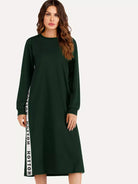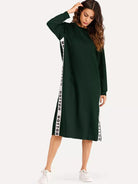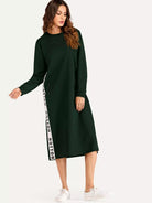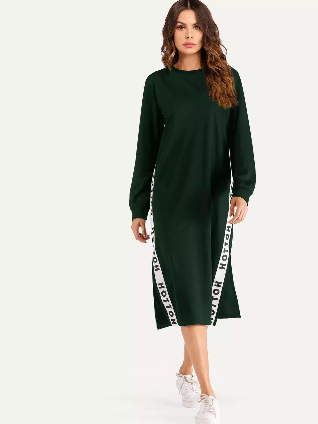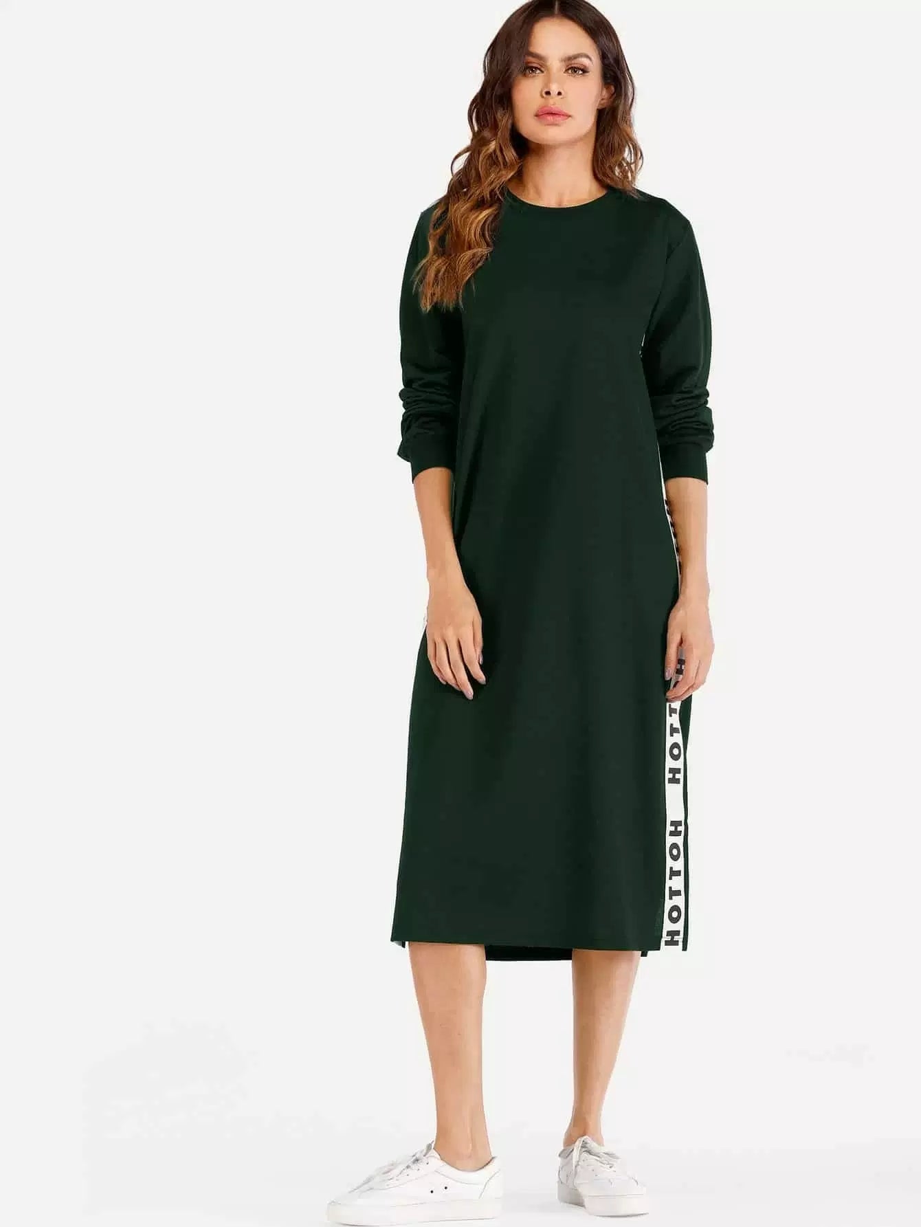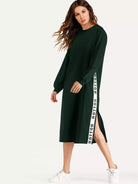 فستان سويت شيرت بفتحة جانبية وشريط حروف