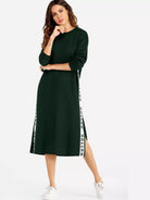 للنساء - فستان من النوع الثقيل بفتحة جانبية وشريط على شكل حرف Letter