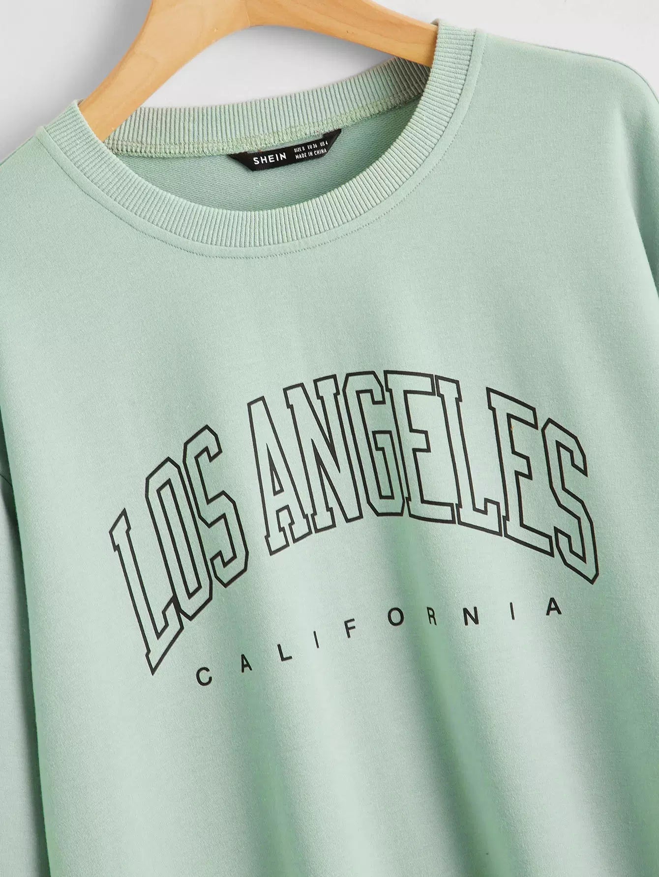كنزة صوفية بأكمام طويلة جرافيك لوس أنجلوس