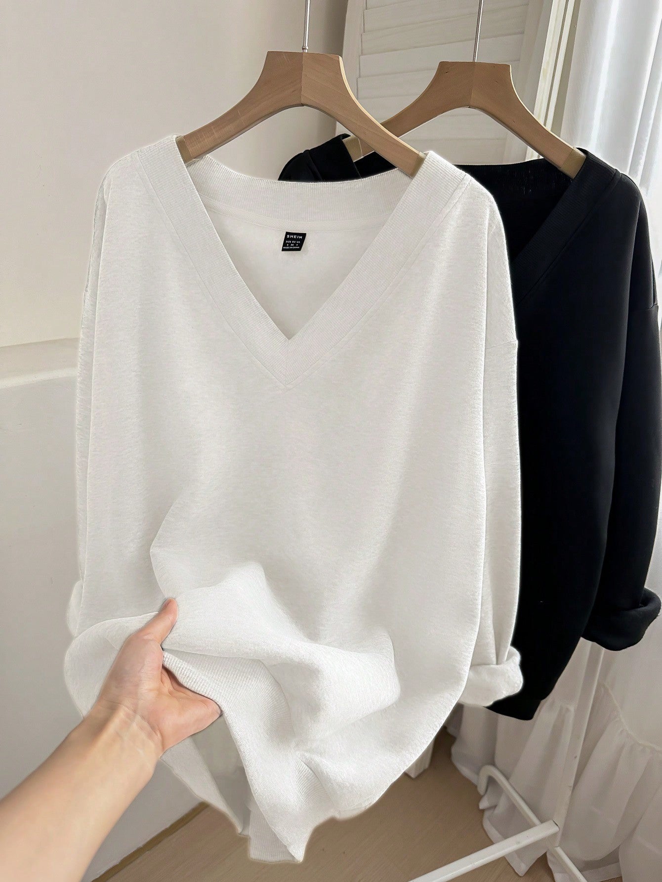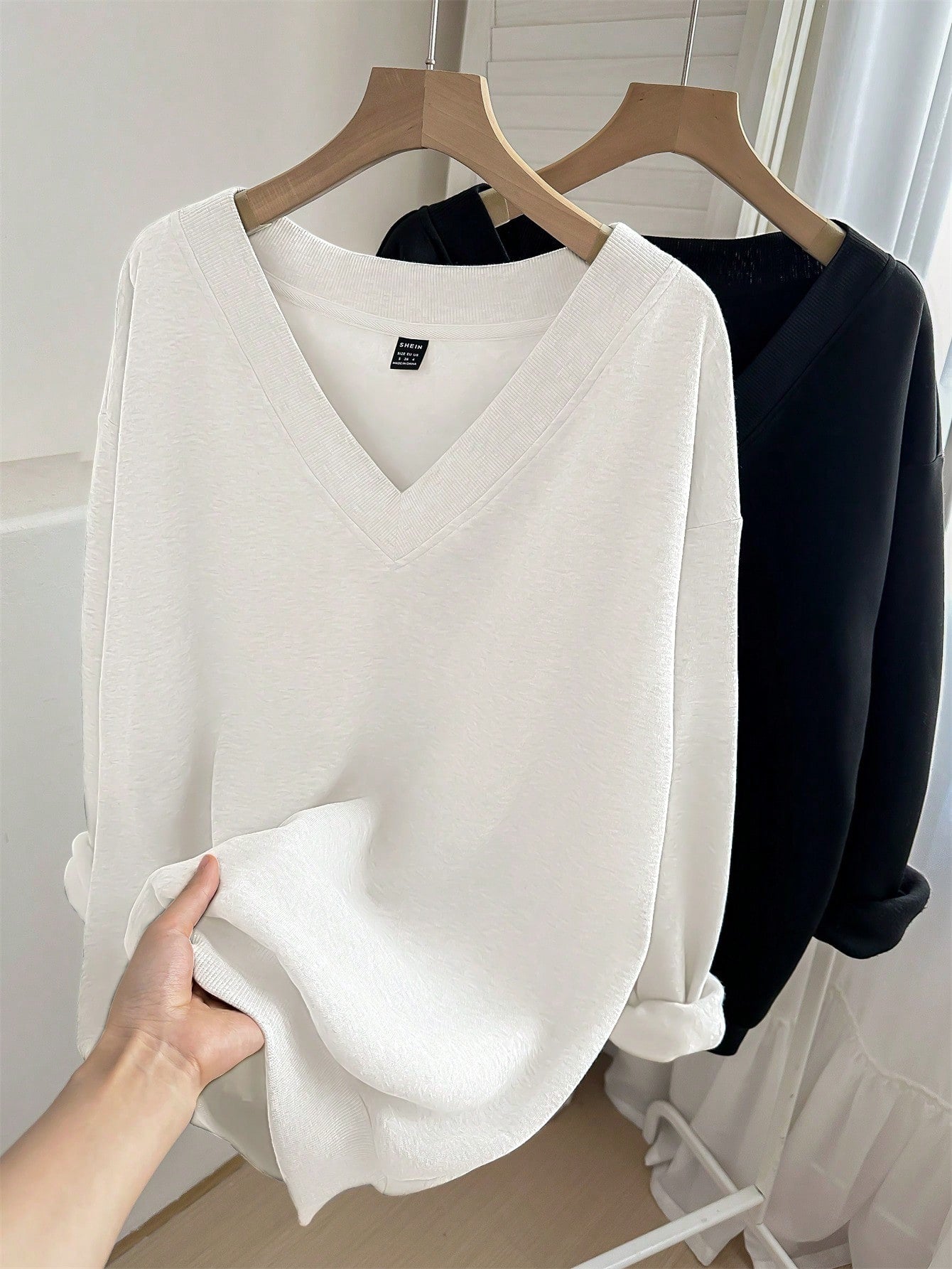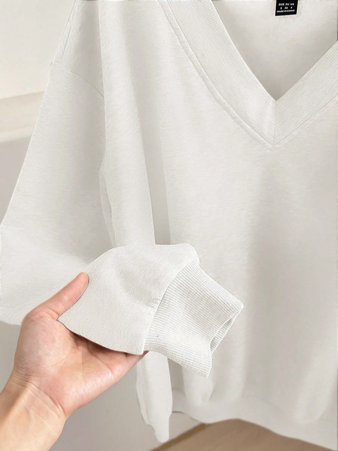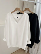 طقم LUNE مكون من قطعتين من البلوزات الصوفية النسائية ذات الرقبة على شكل حرف V، بتصميم كاجوال سادة.