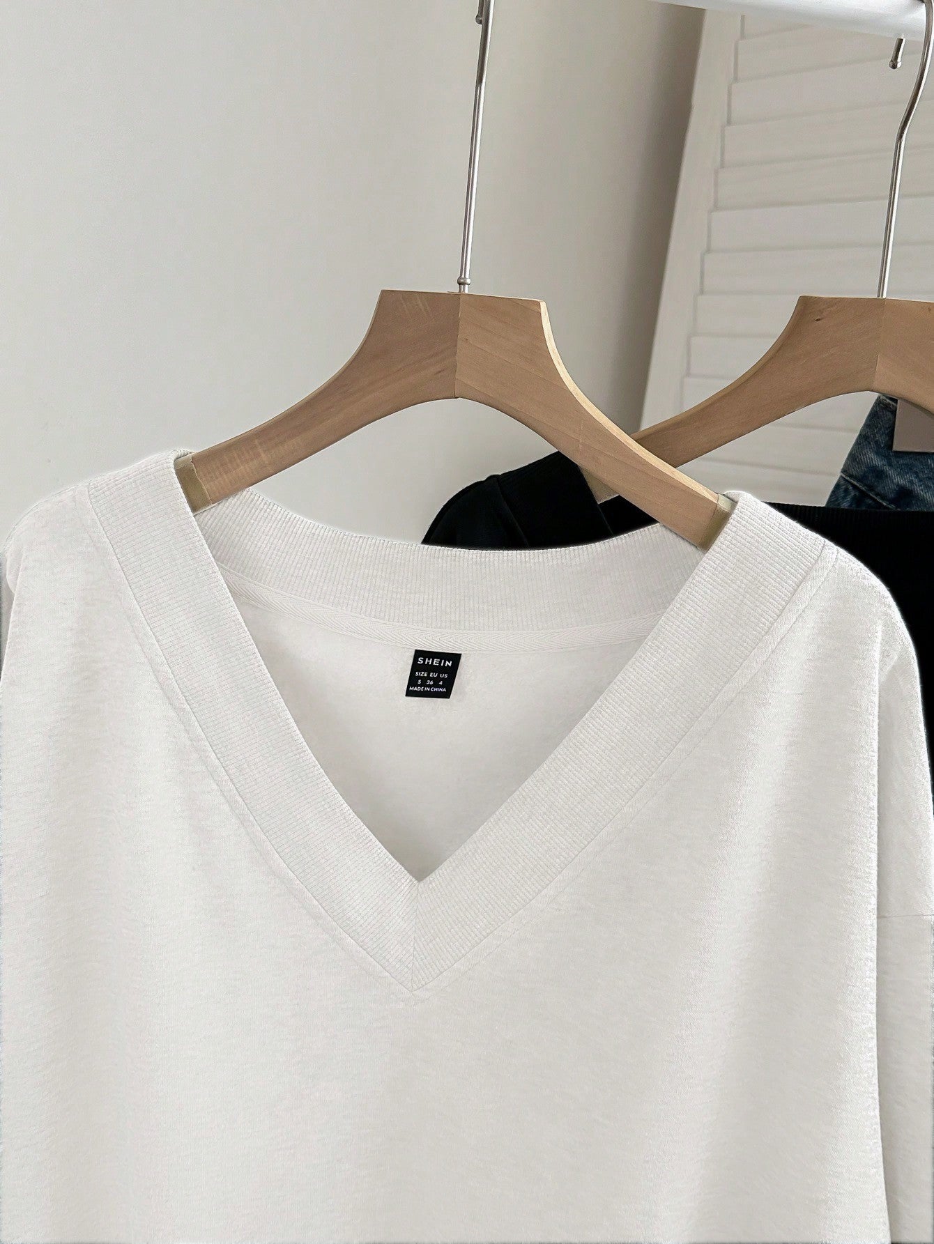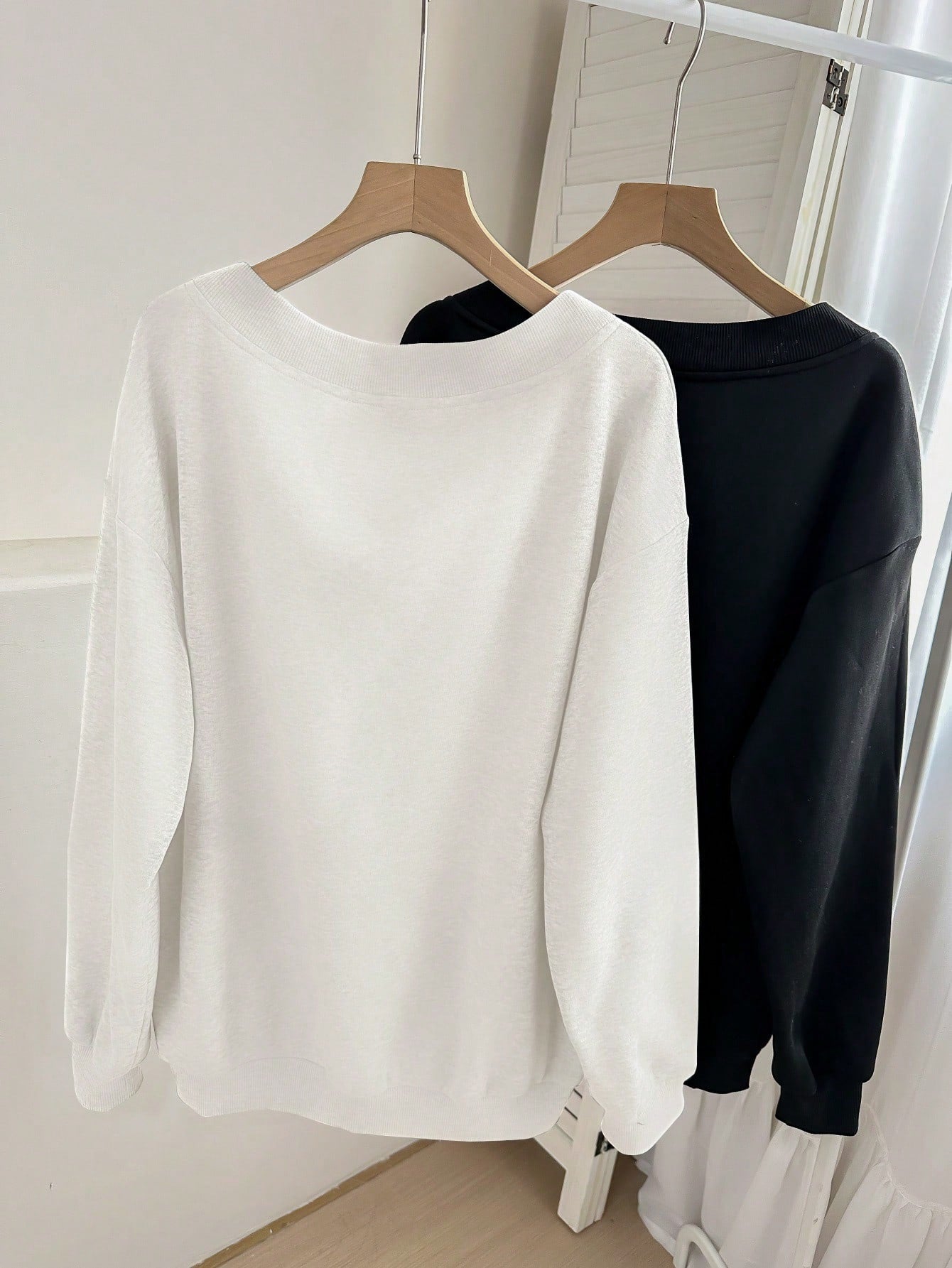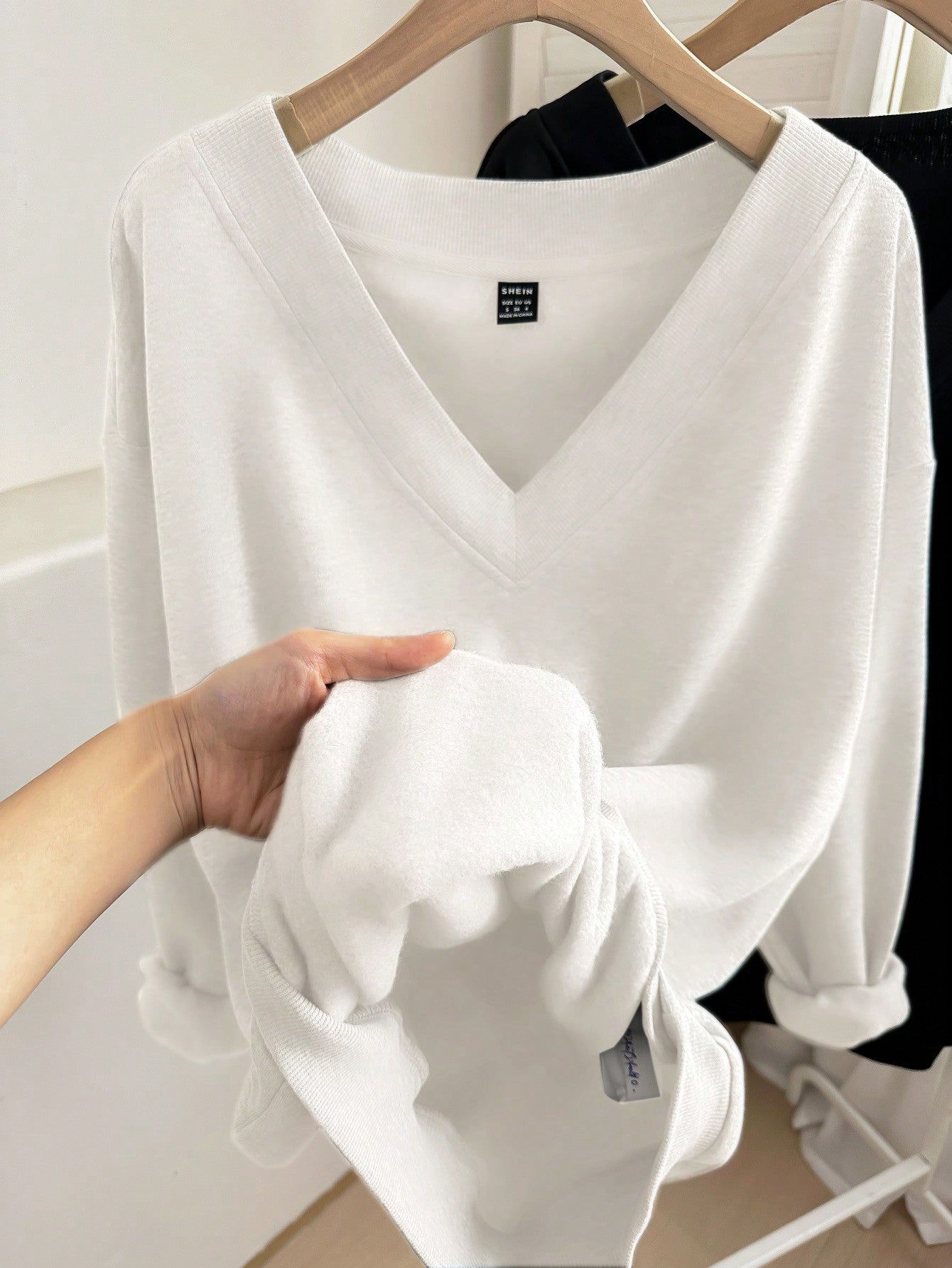 طقم LUNE مكون من قطعتين من البلوزات الصوفية النسائية ذات الرقبة على شكل حرف V، بتصميم كاجوال سادة.