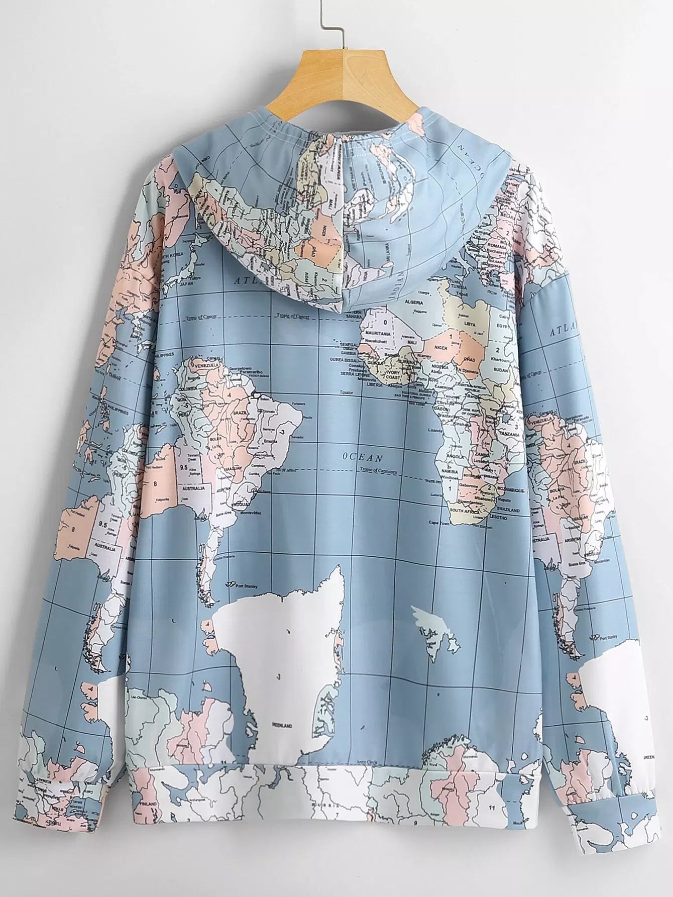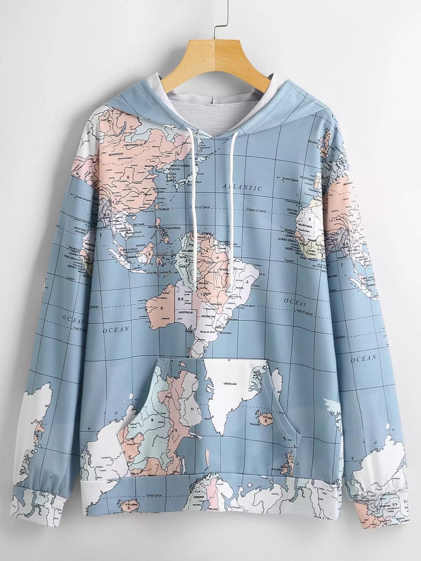 هودي كنغر مطبوع عليه خريطة مطبوعة بجيب كنغر