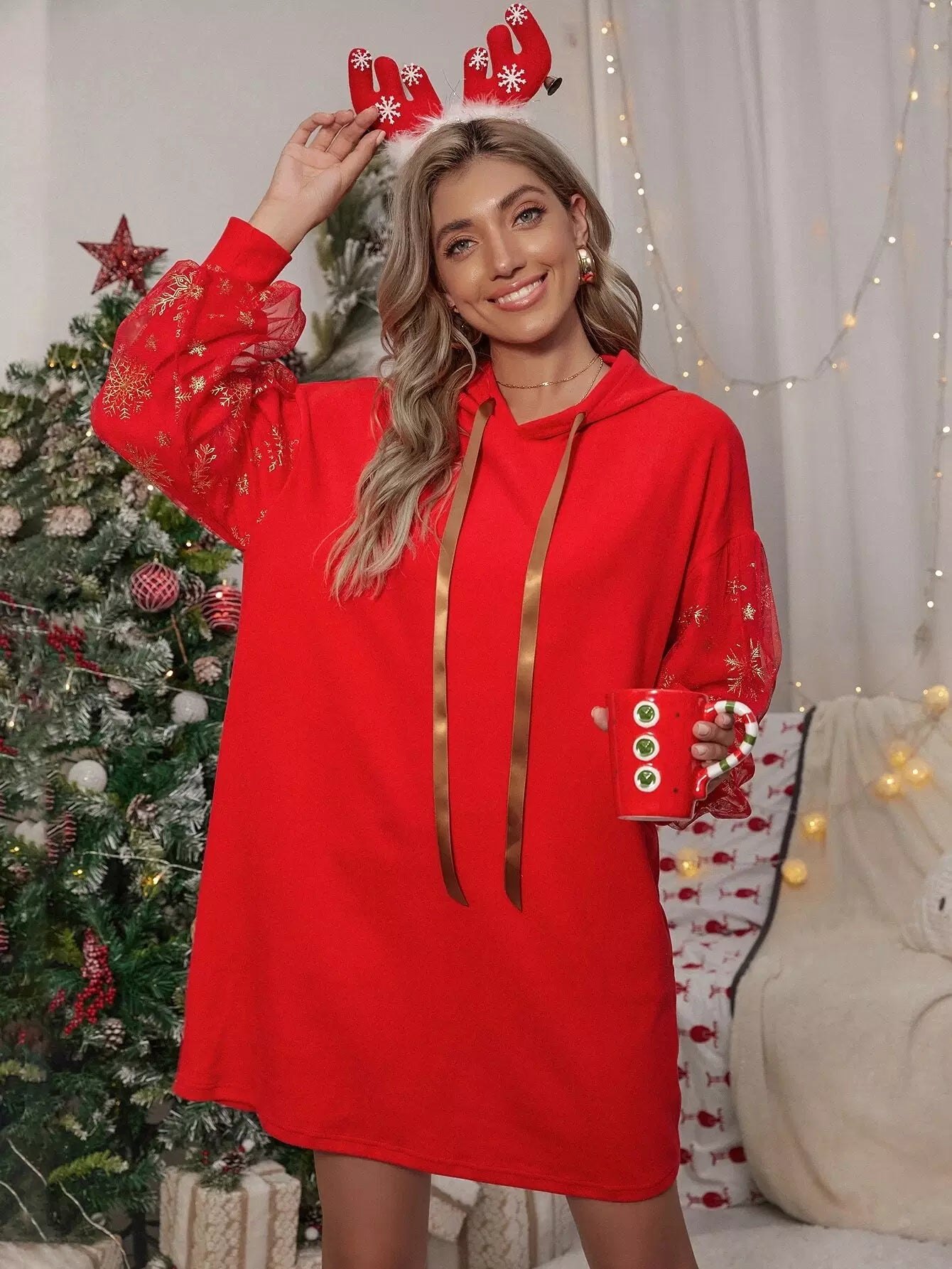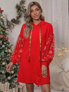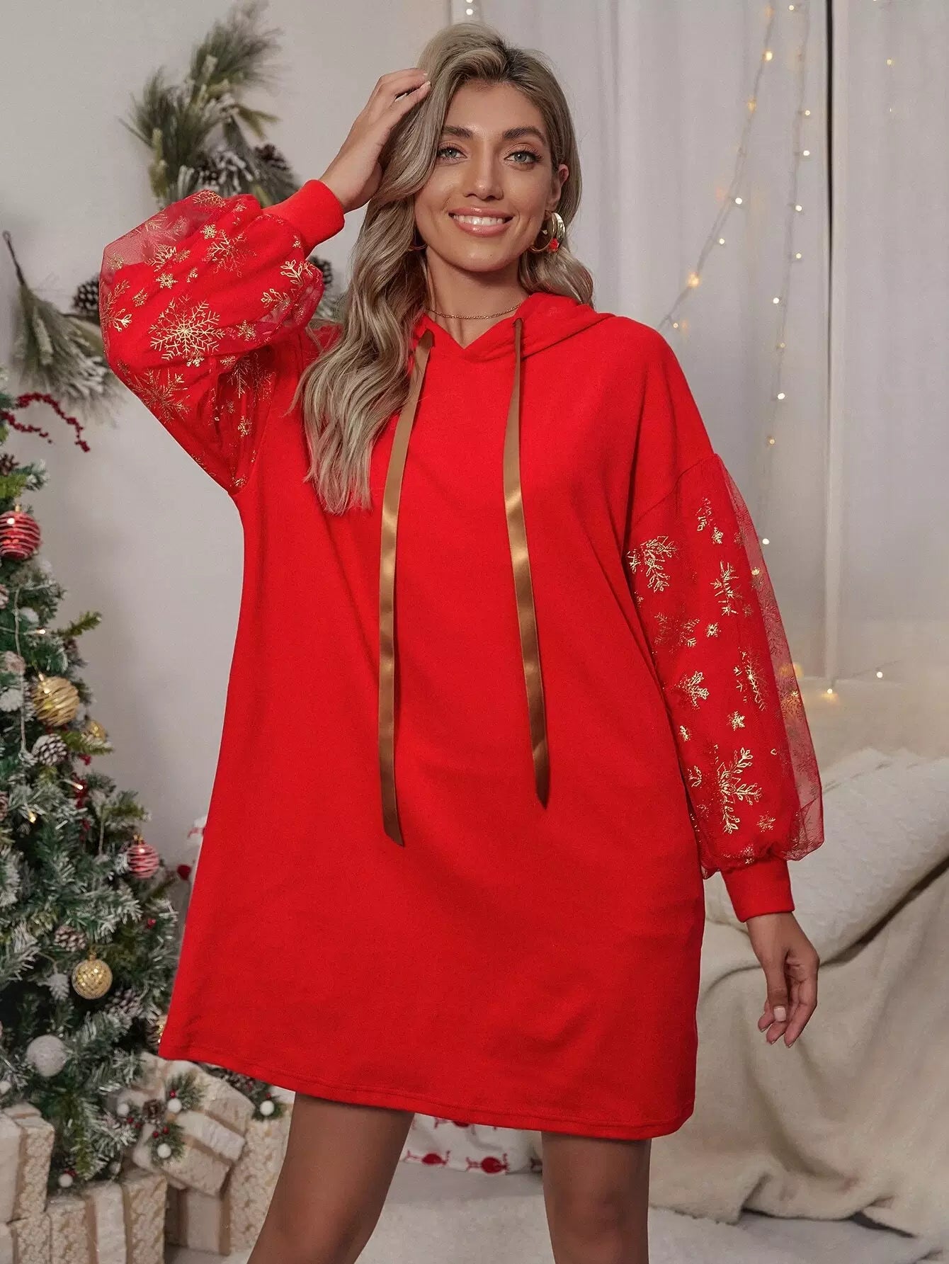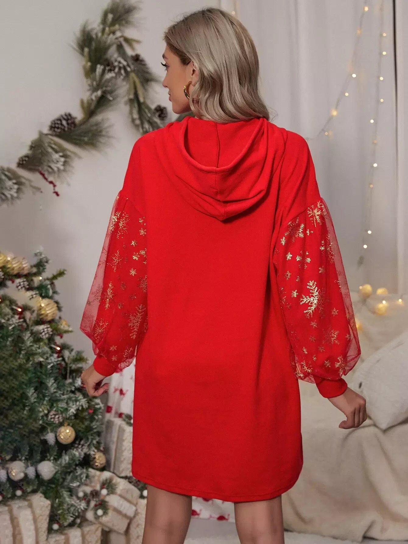 فستان ذو هودي بأكمام شبكية بأربطة بأكمام شبكية