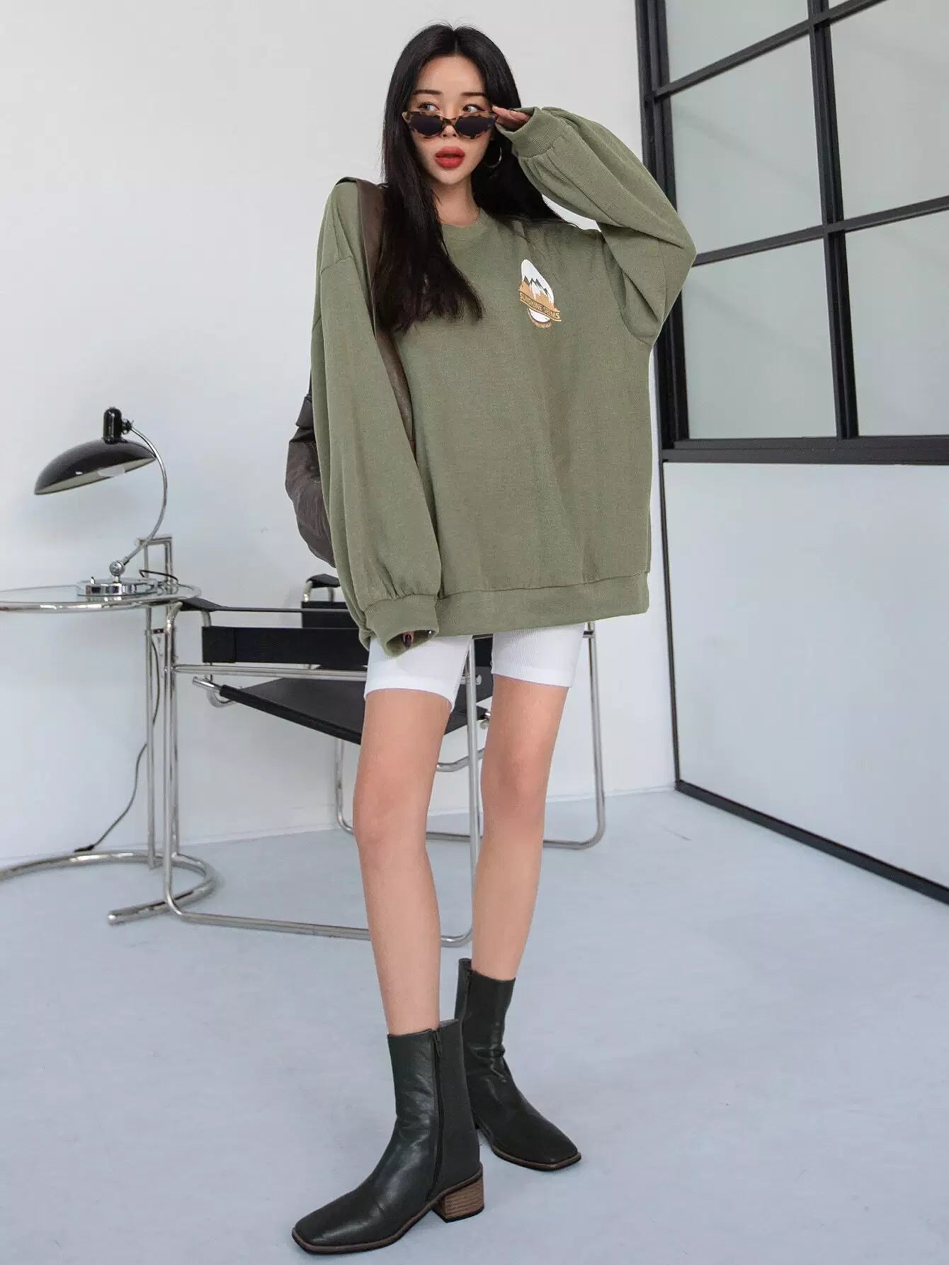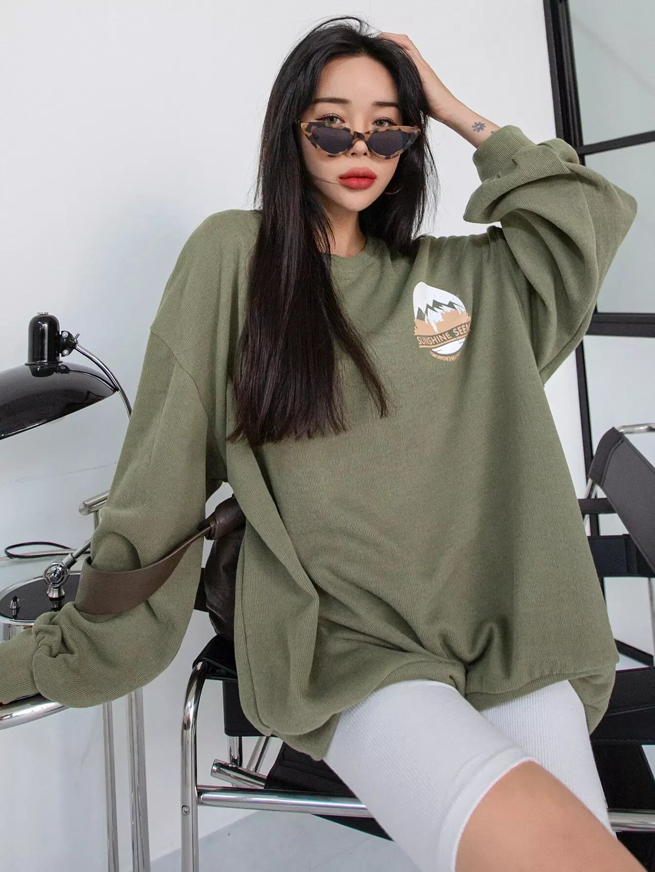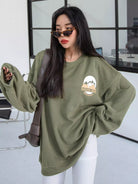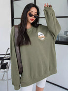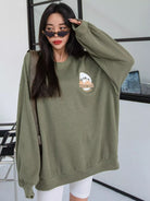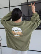 سويت شيرت منسدل الكتف برسومات جبلية ورسومات حروف منسدلة على الكتف