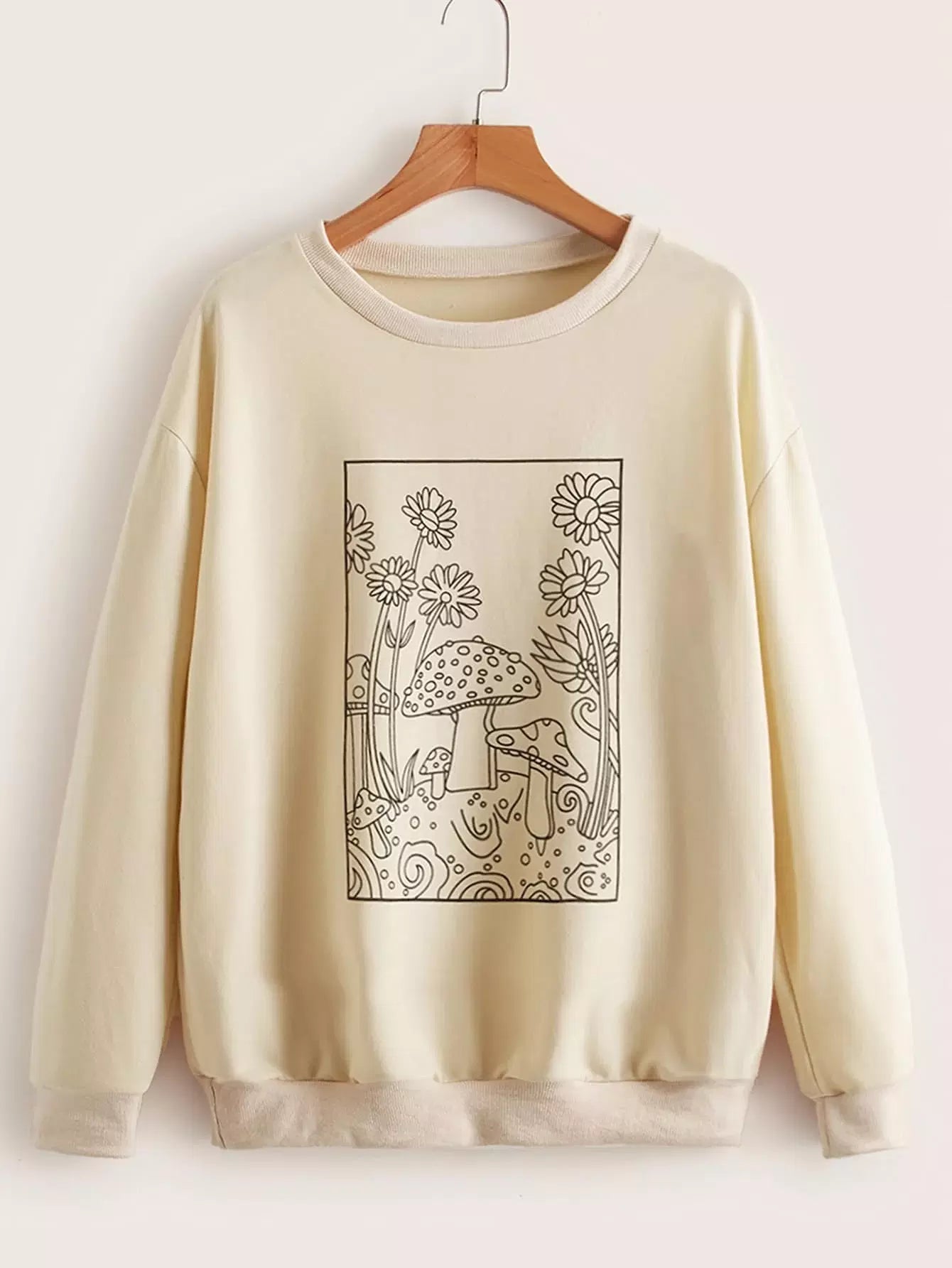 سويت شيرت برسومات الفطر والزهور