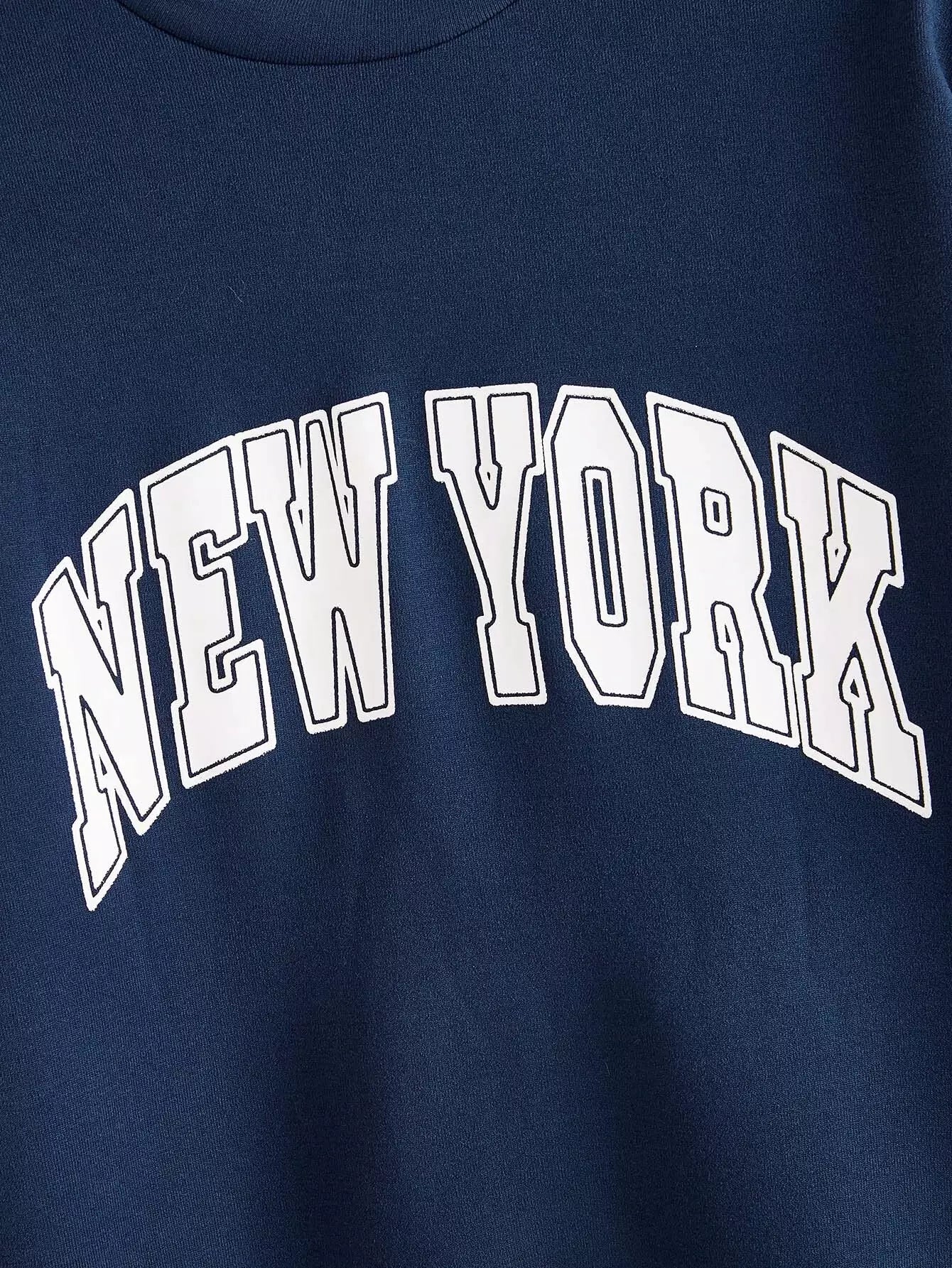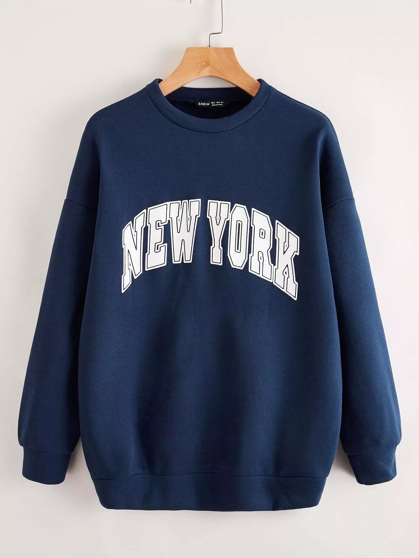 كنزة صوفية منسدلة الكتفين برسومات نيويورك