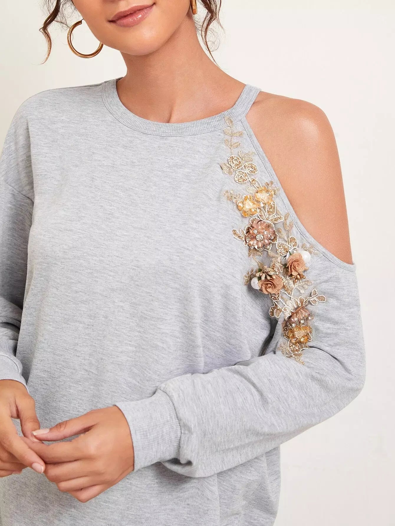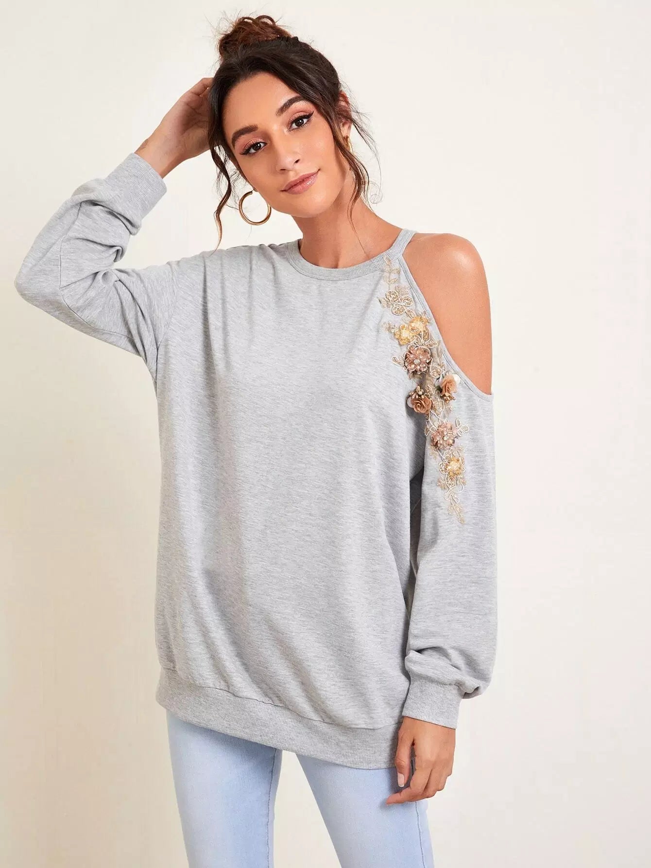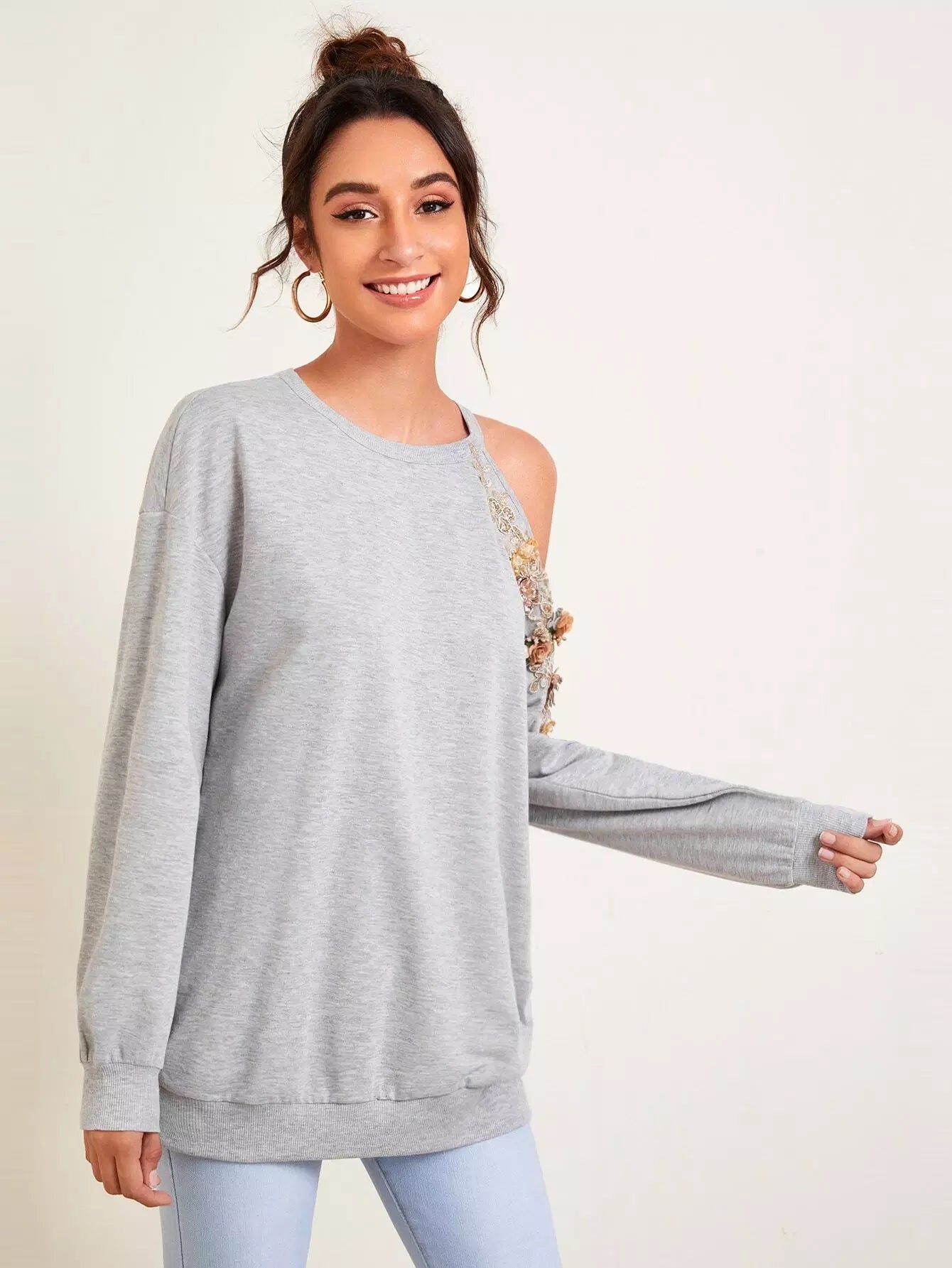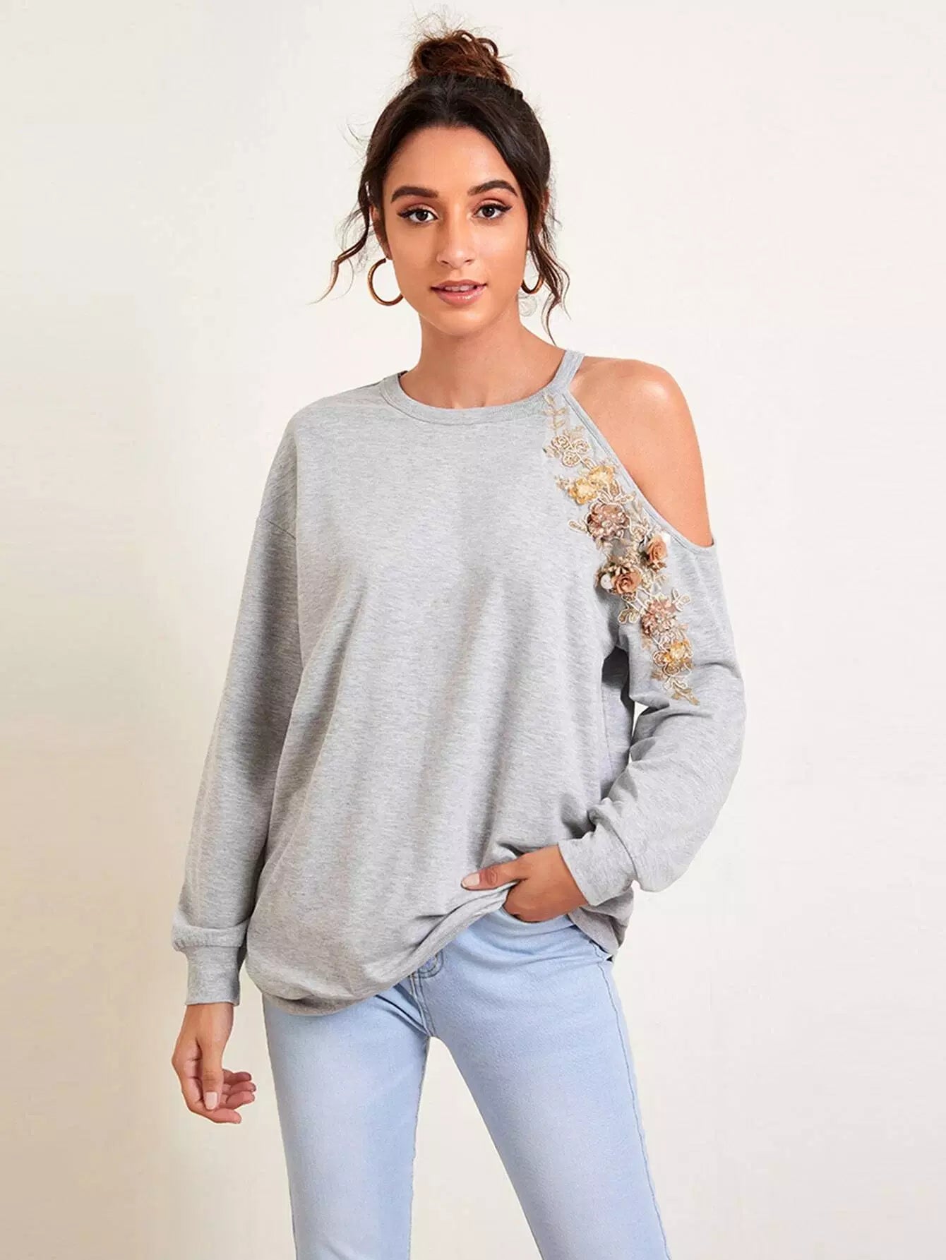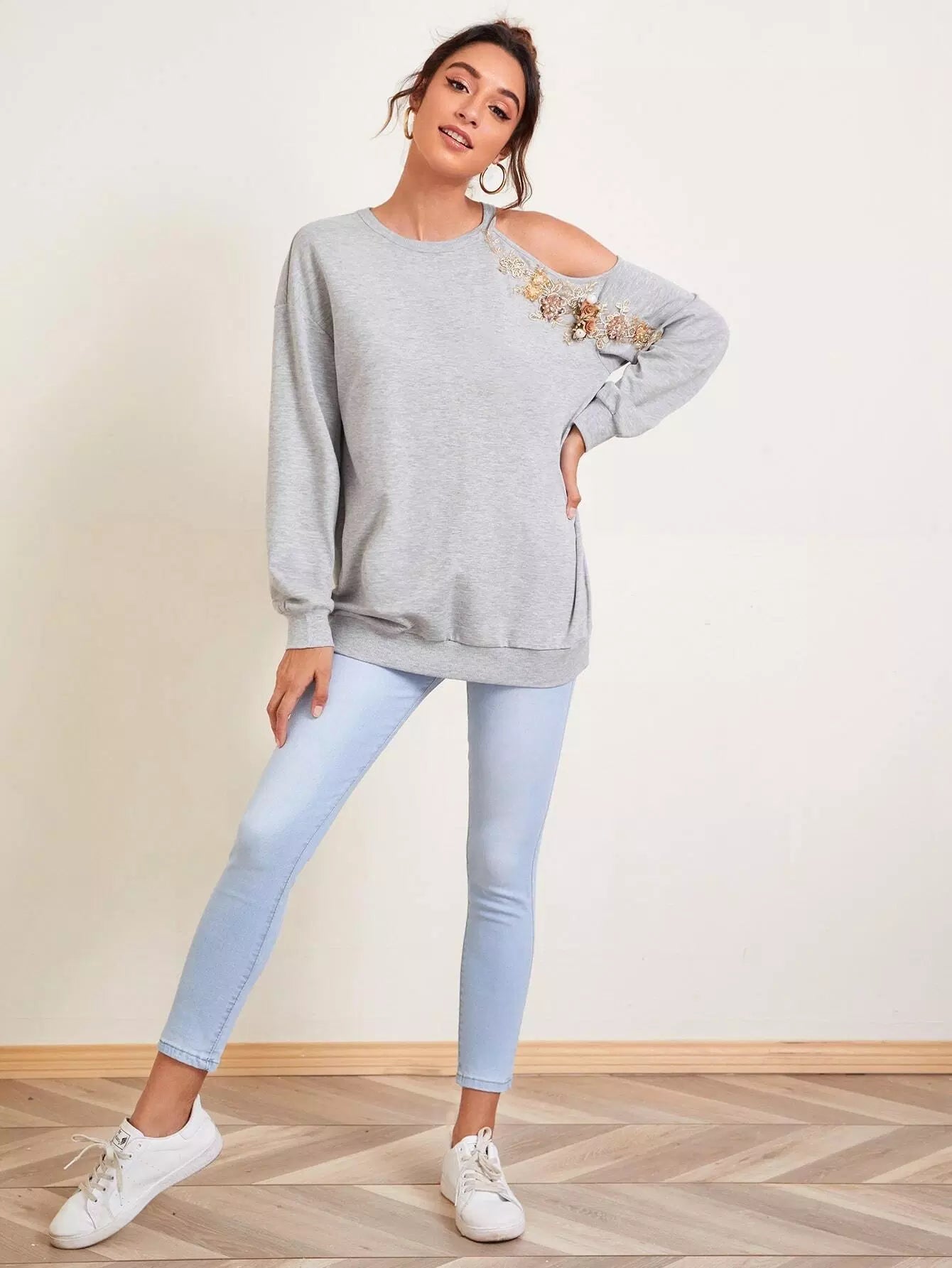 كنزة صوفية ذات أكتاف باردة مزينة بتفاصيل باردة