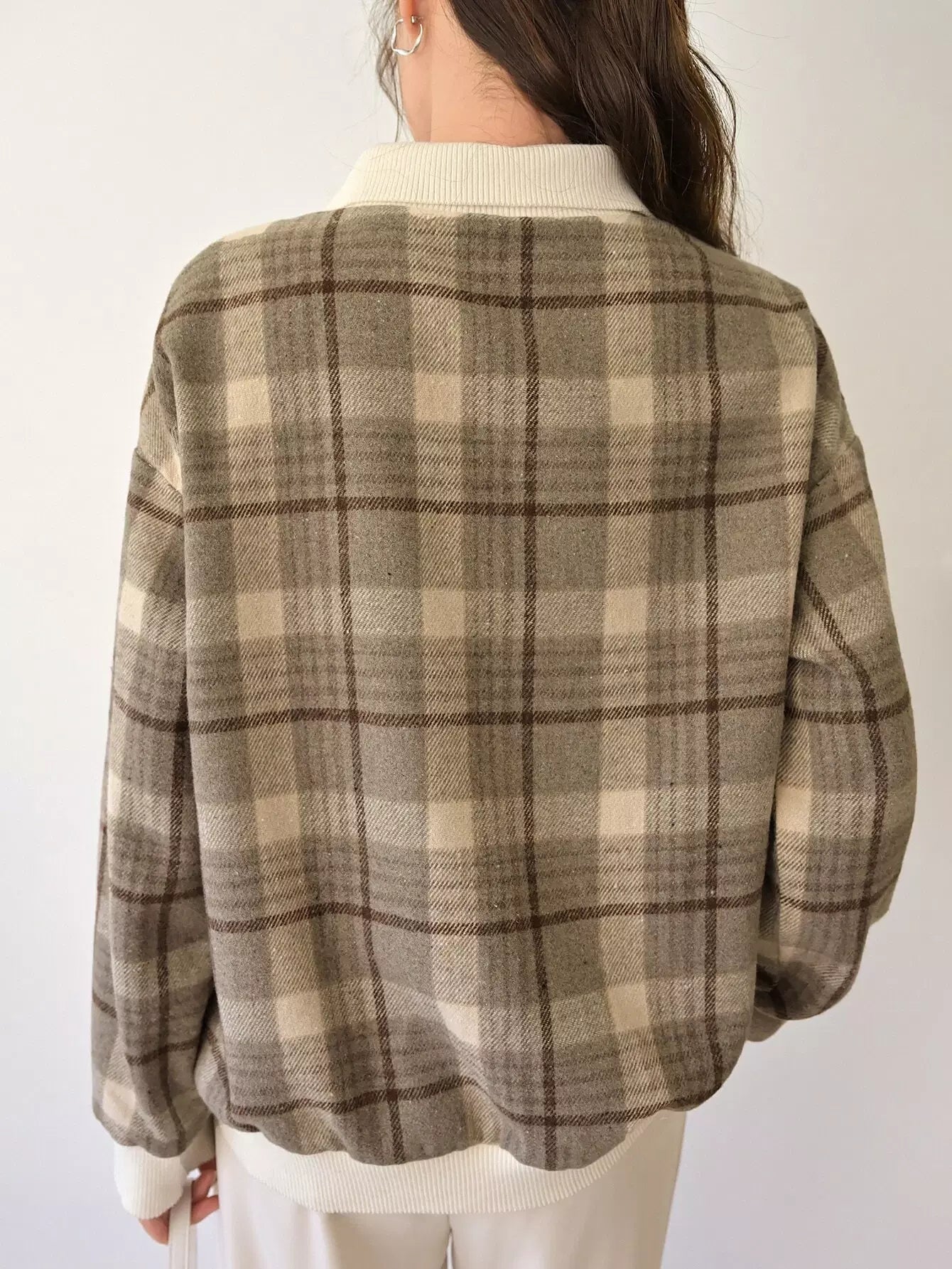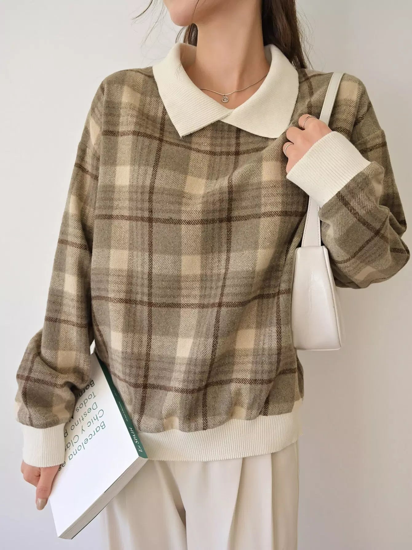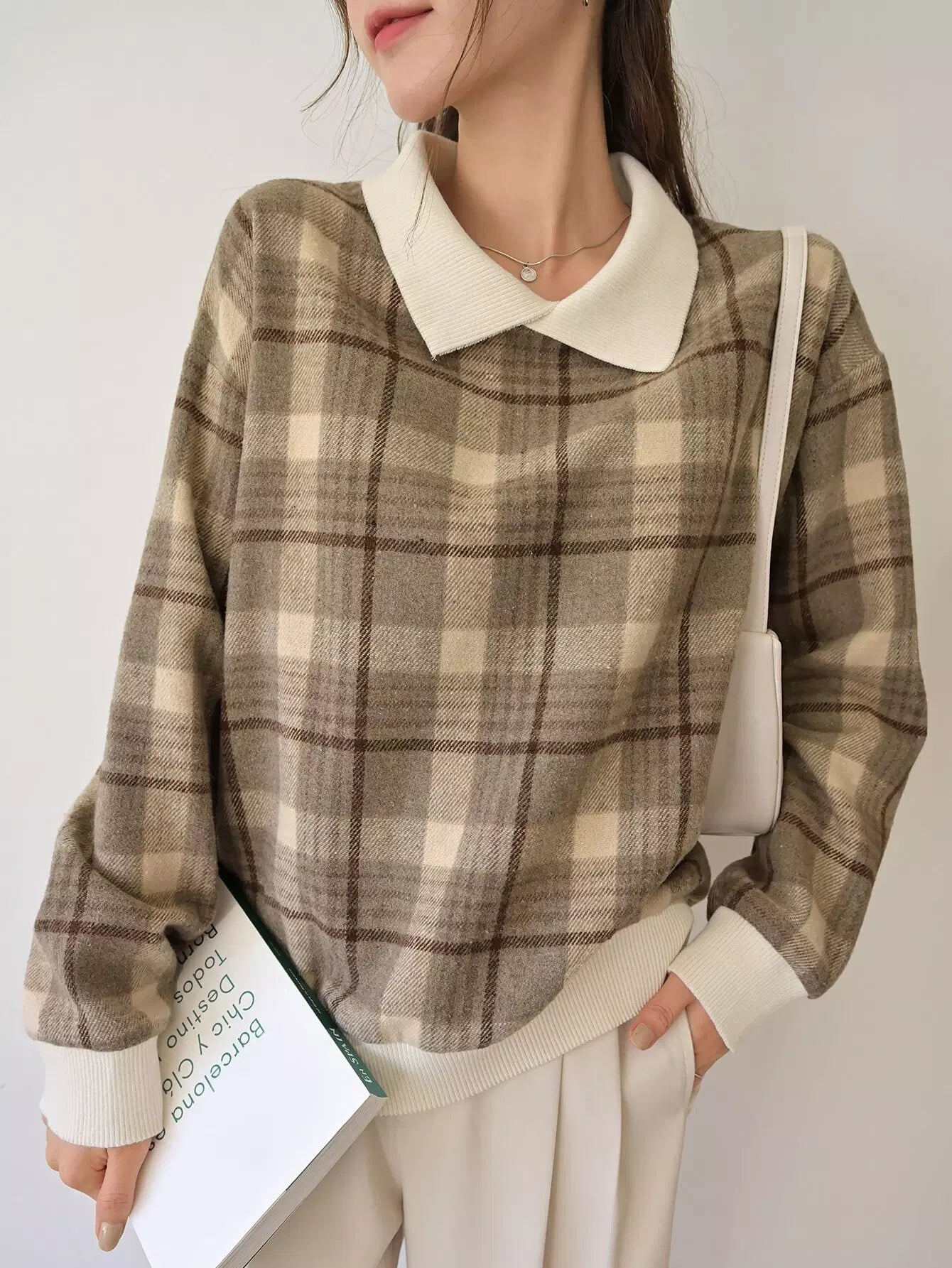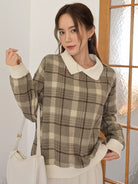 بلوفر منقوش بنقشة مربعات متباينة اللون مع أكتاف منسدلة
