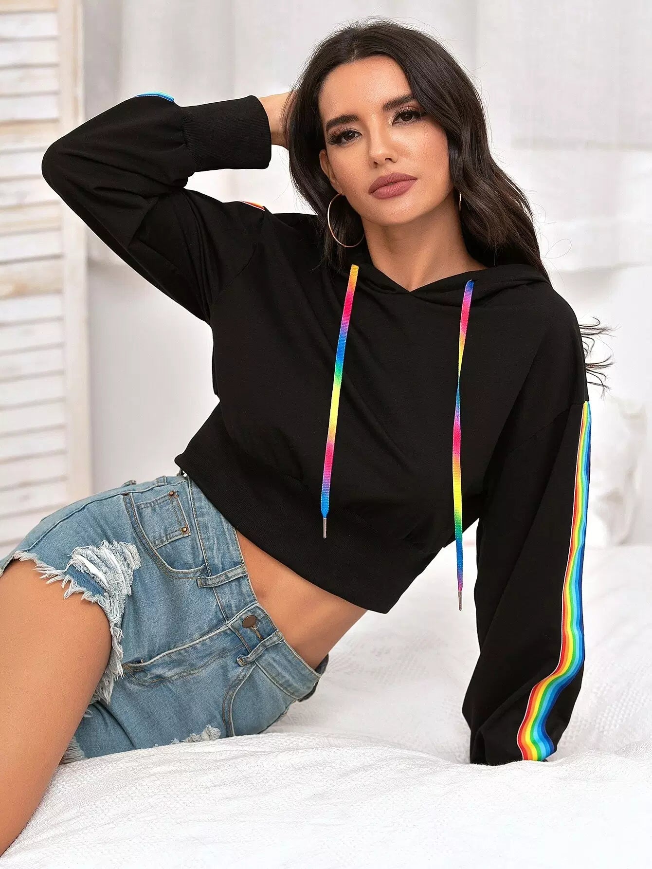 هودي مخطط بألوان قوس قزح مخطط برباط برباط من قوس قزح