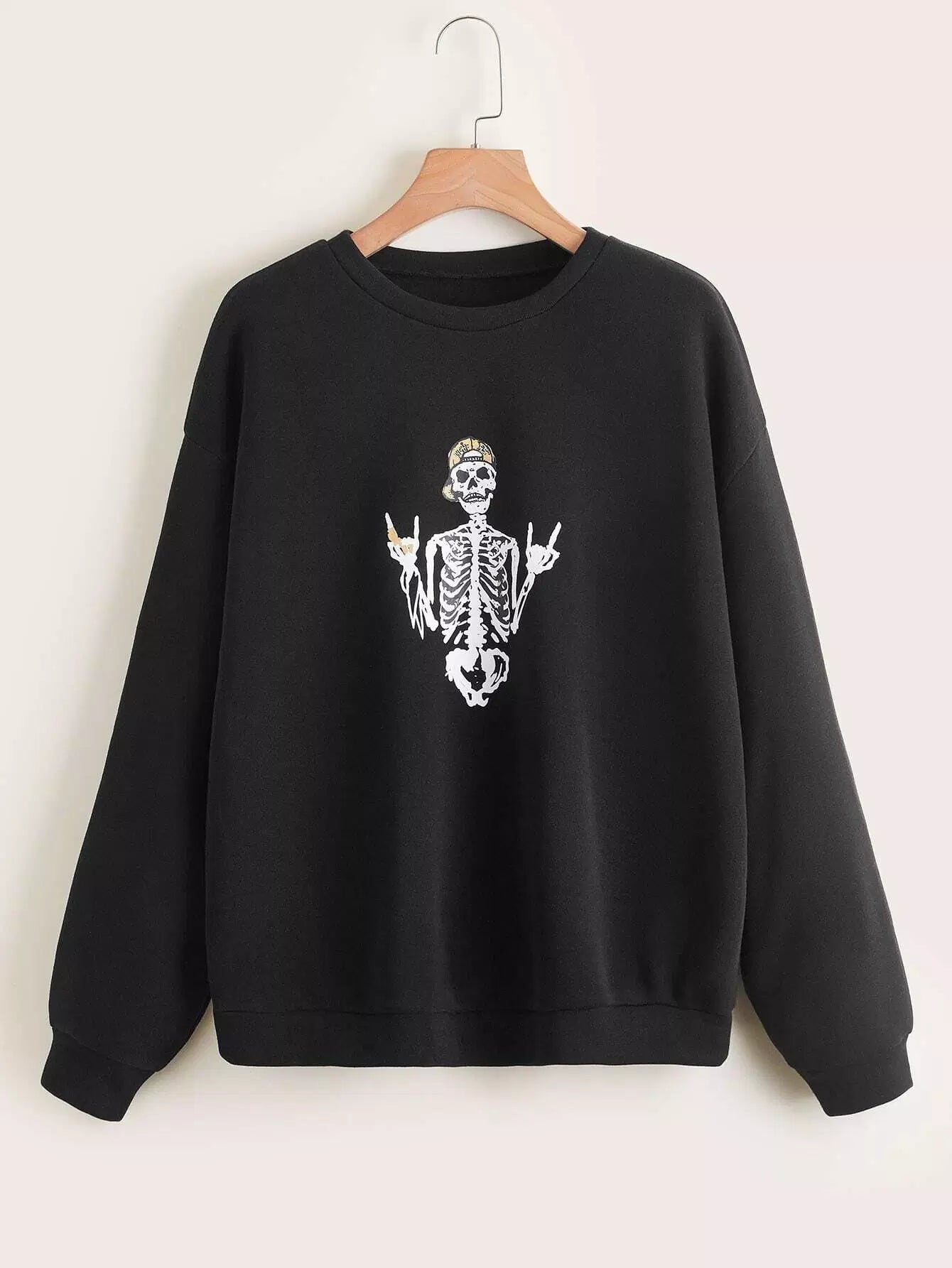 للنساء - سويت شيرت بطبعة هيكل عظمي وأكتاف منسدلة